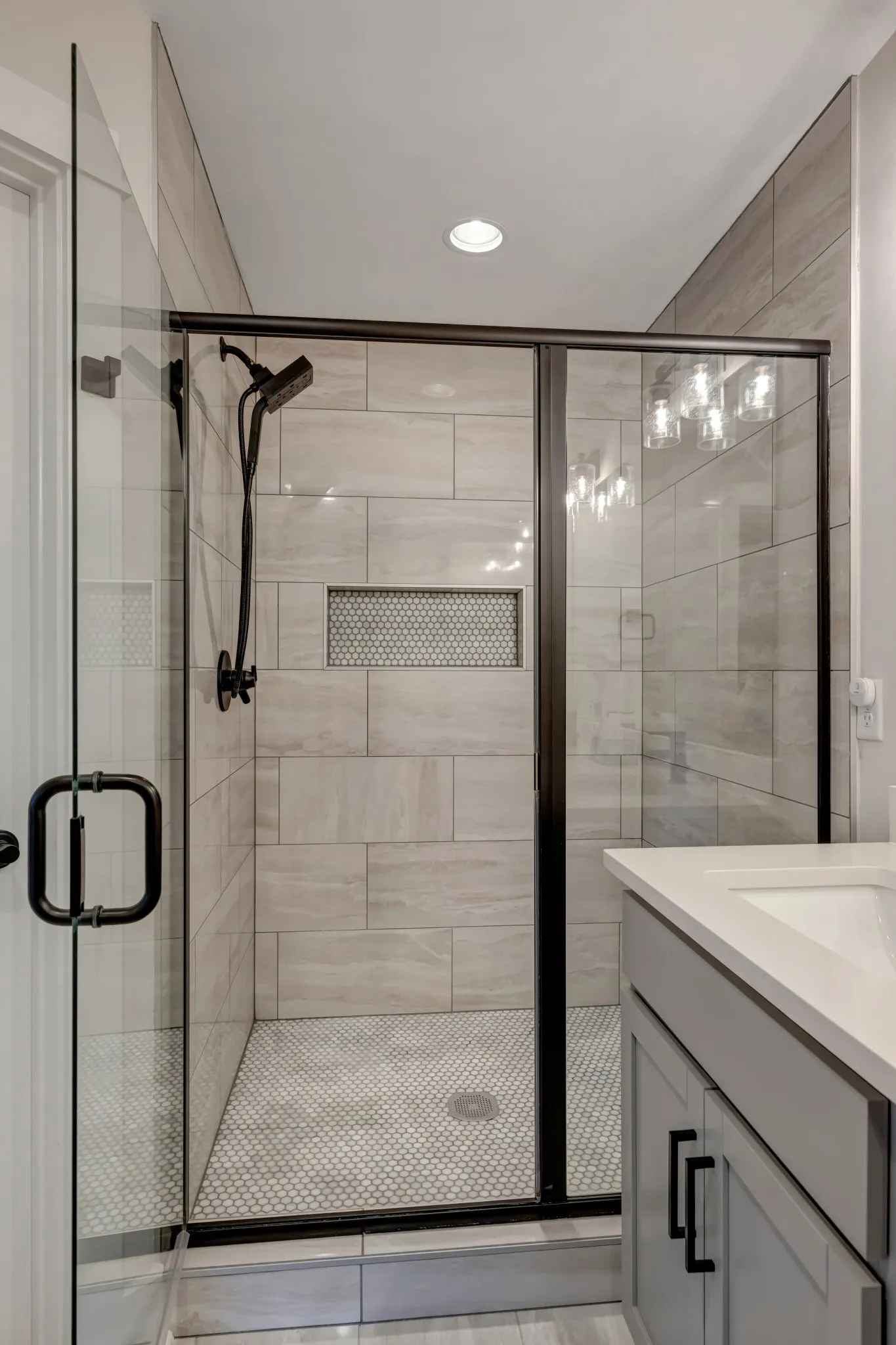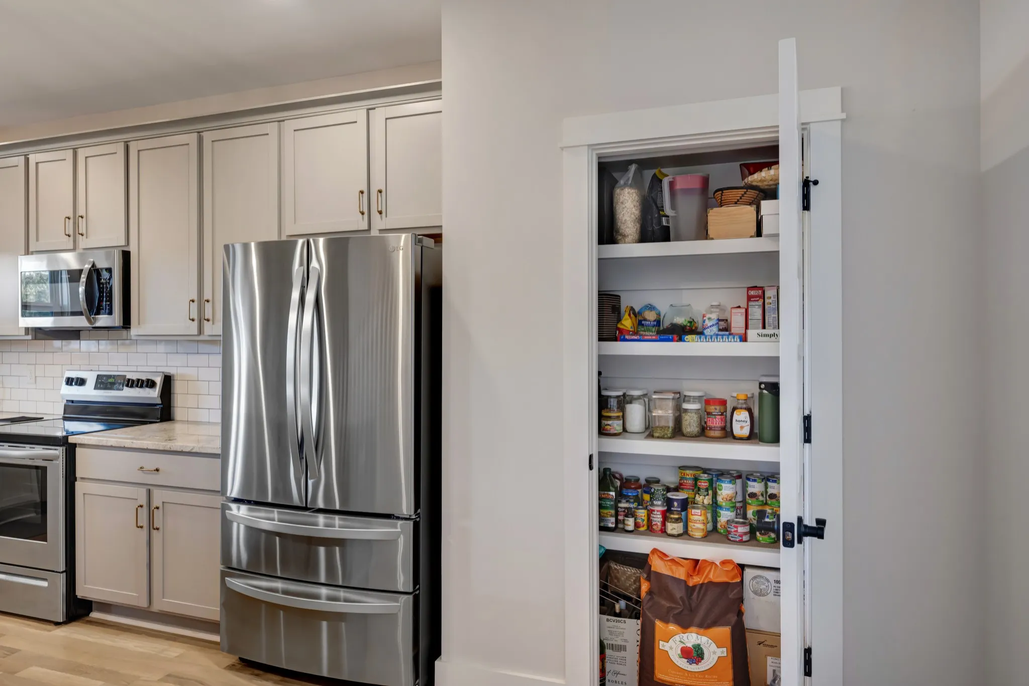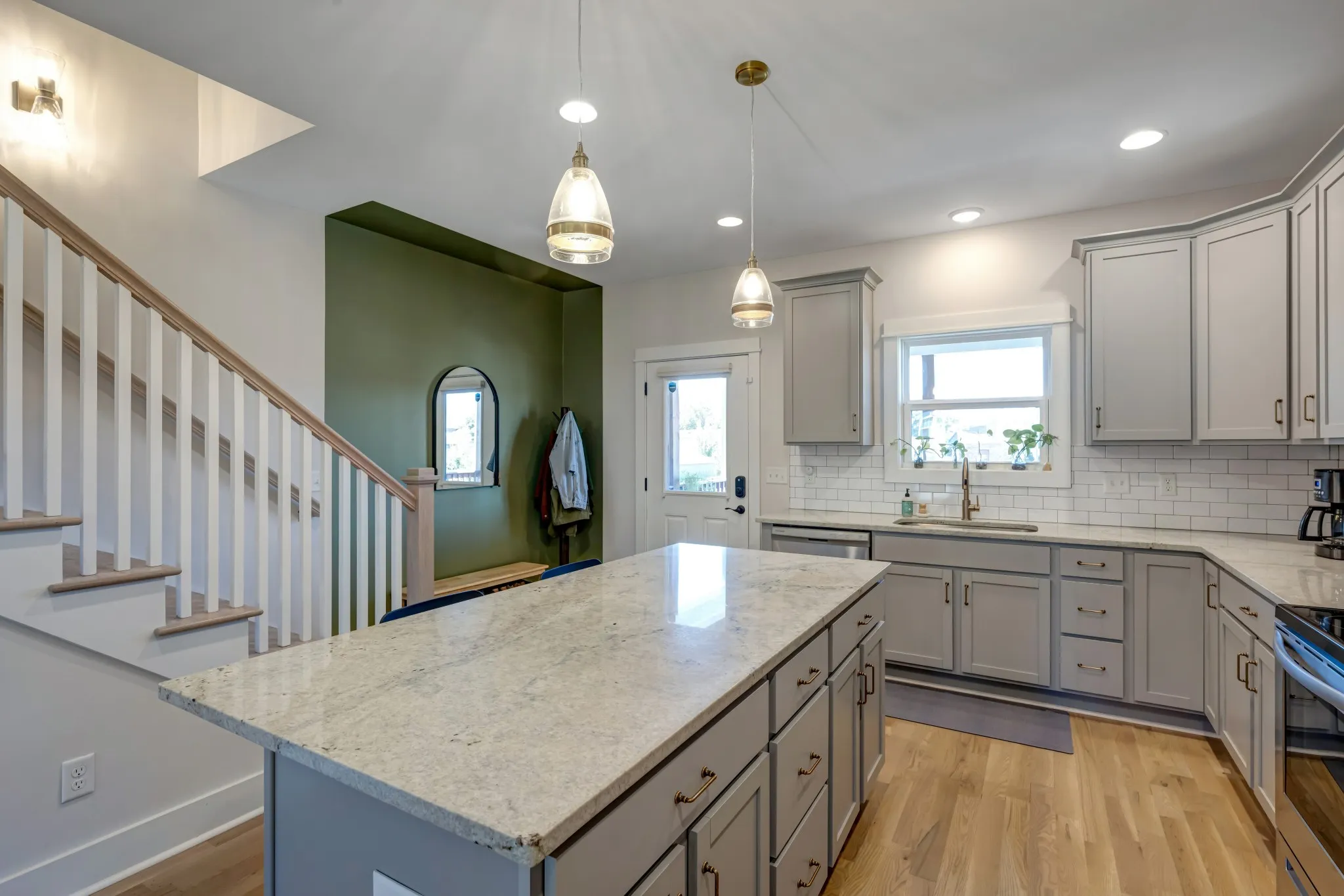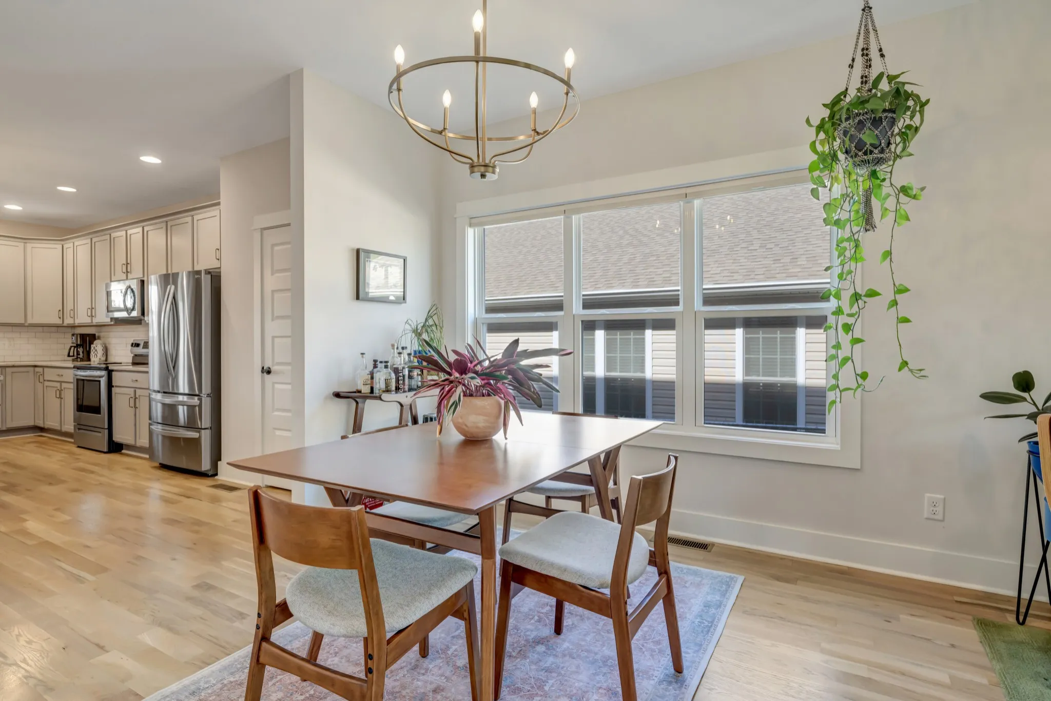 Newly built home in 2021 with an open floor plan and abundant light, custom interior design blinds, beautiful hardwood floors, craftsman tile work, ample storage, energy-efficient features, fenced-in backyard with lush green grass, and outdoor living space.