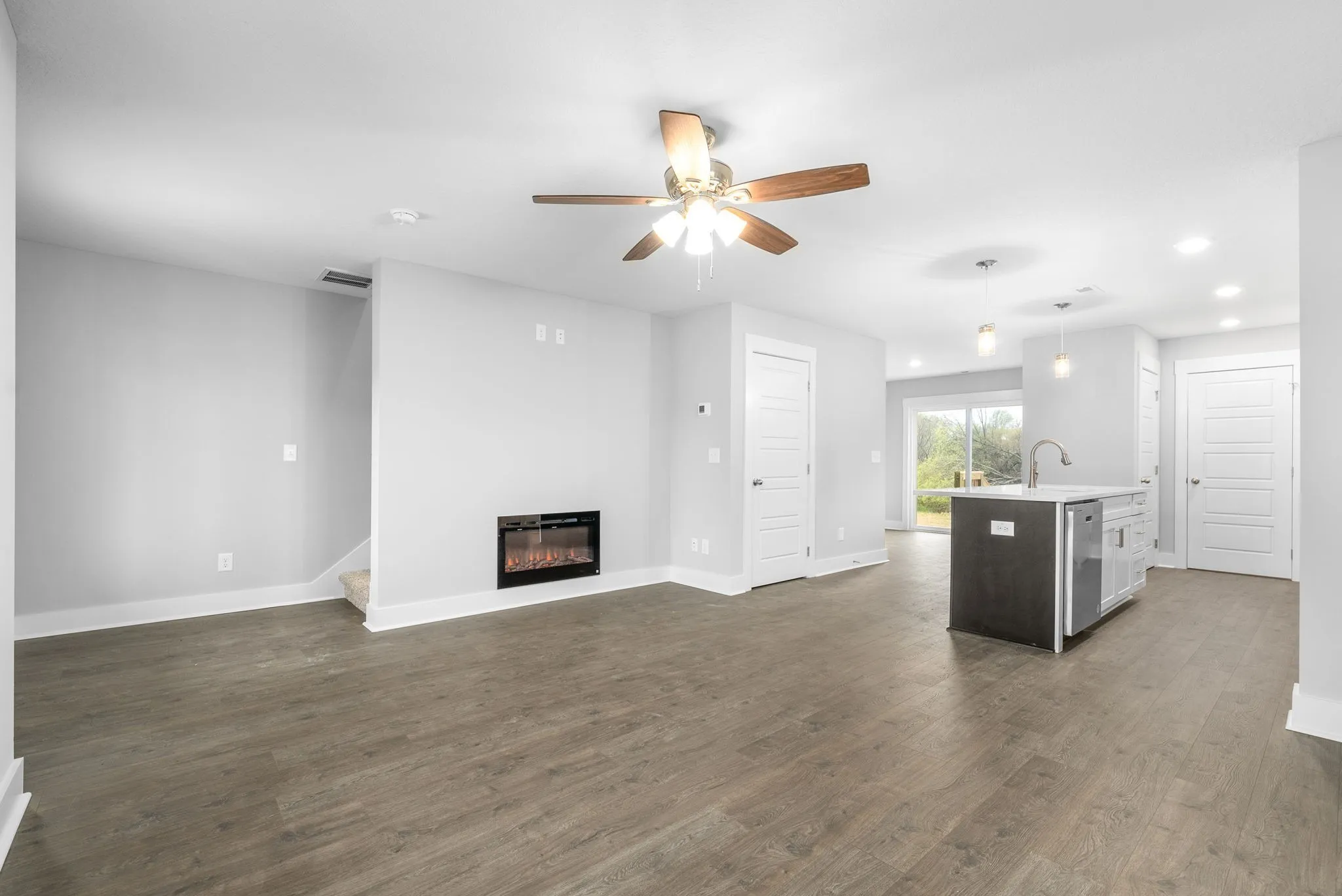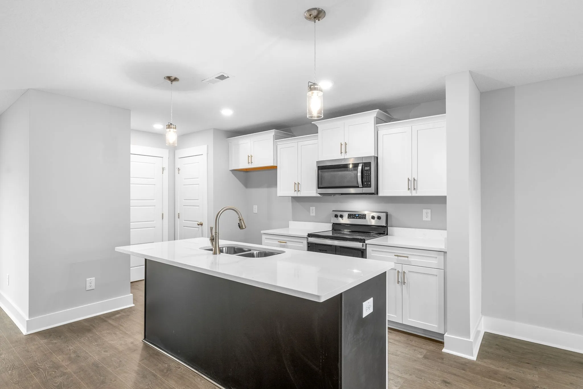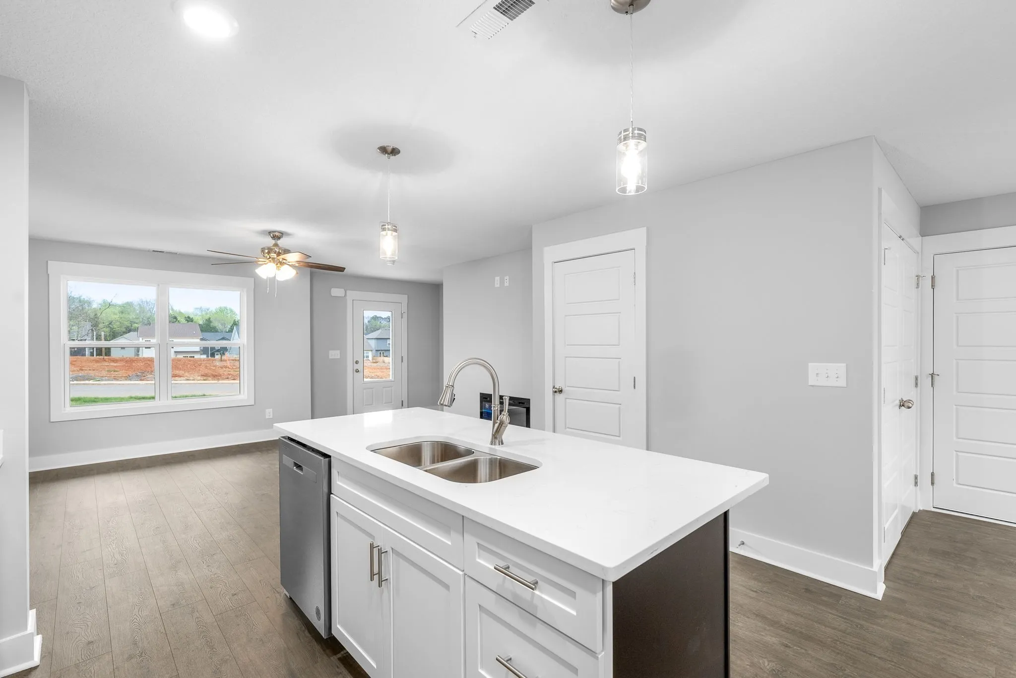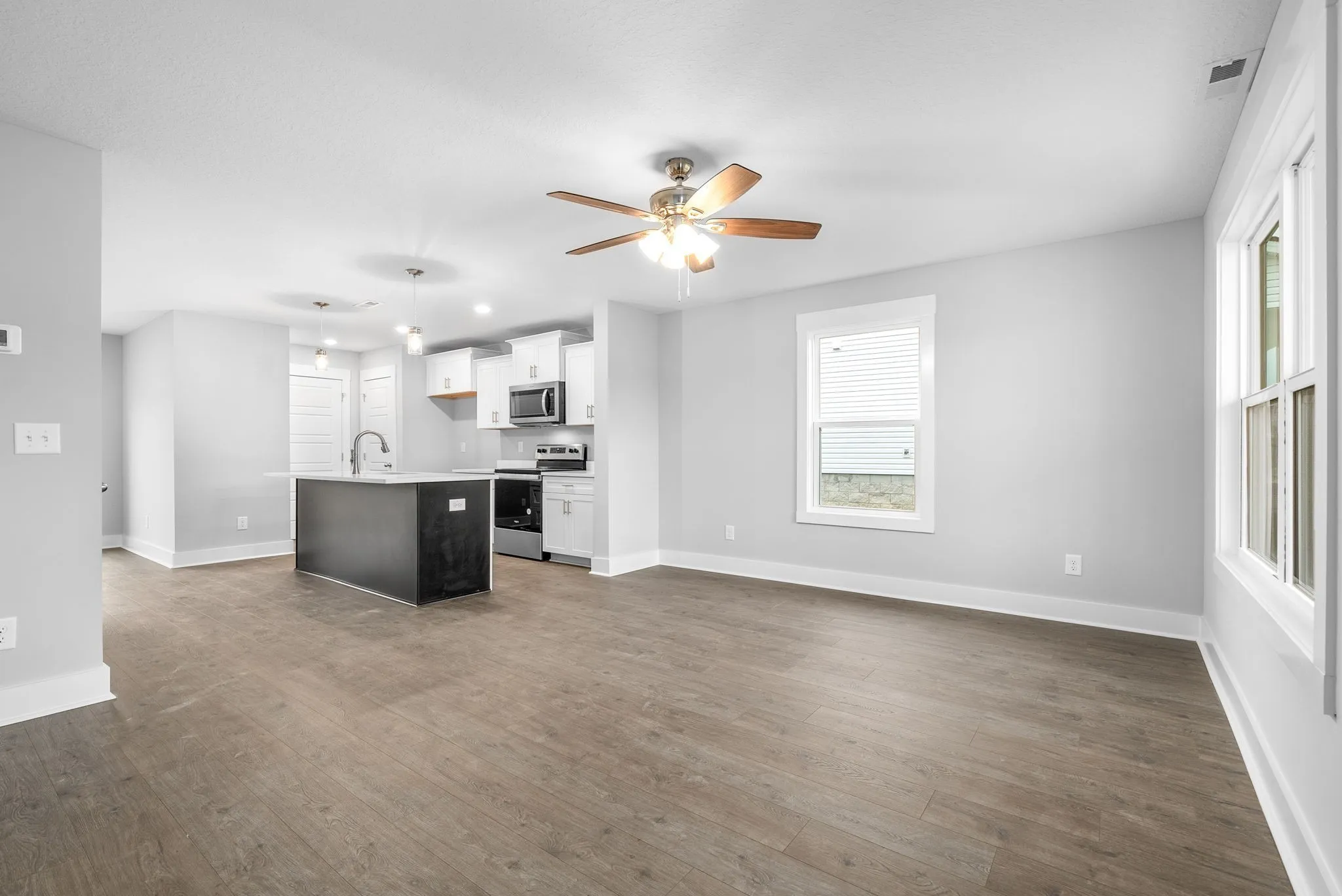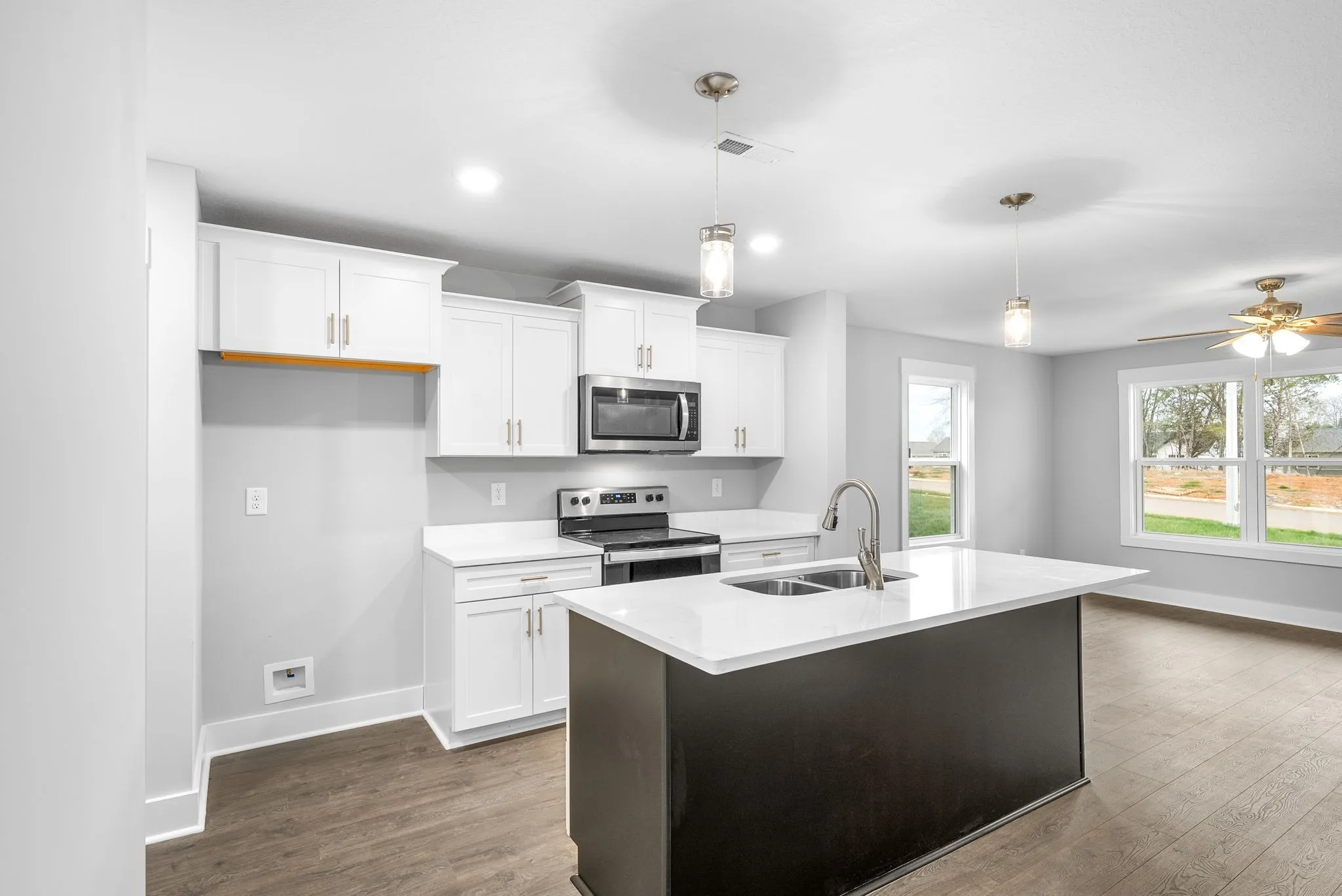 3 Beds, 2.5 Baths, Granite/Quartz Countertops, Laminate in main areas, Tile in Baths/Laundry, Open Layout.