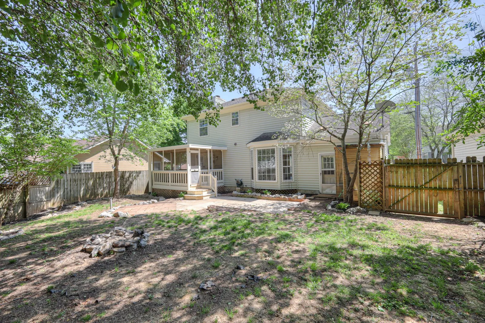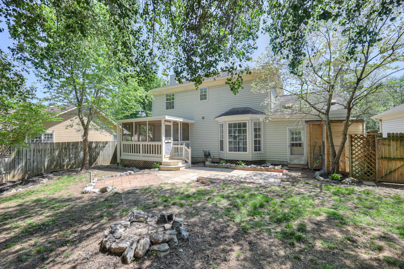 Colonial-style home in the heart of Hendersonville! Check out this charmer with three bedrooms, two and a half baths, and a one-car garage, offering both comfort and convenience to local shopping and restaurants. Dedicated dining room right off of kitchen with additional eat-in space overlooking the fenced-in backyard. Screened-in back porch steps down to the perfect patio for grilling. Home is on a cul-de-sac street right around the corner from the community pool. Only minutes from Vietnam Veterans Boulevard.