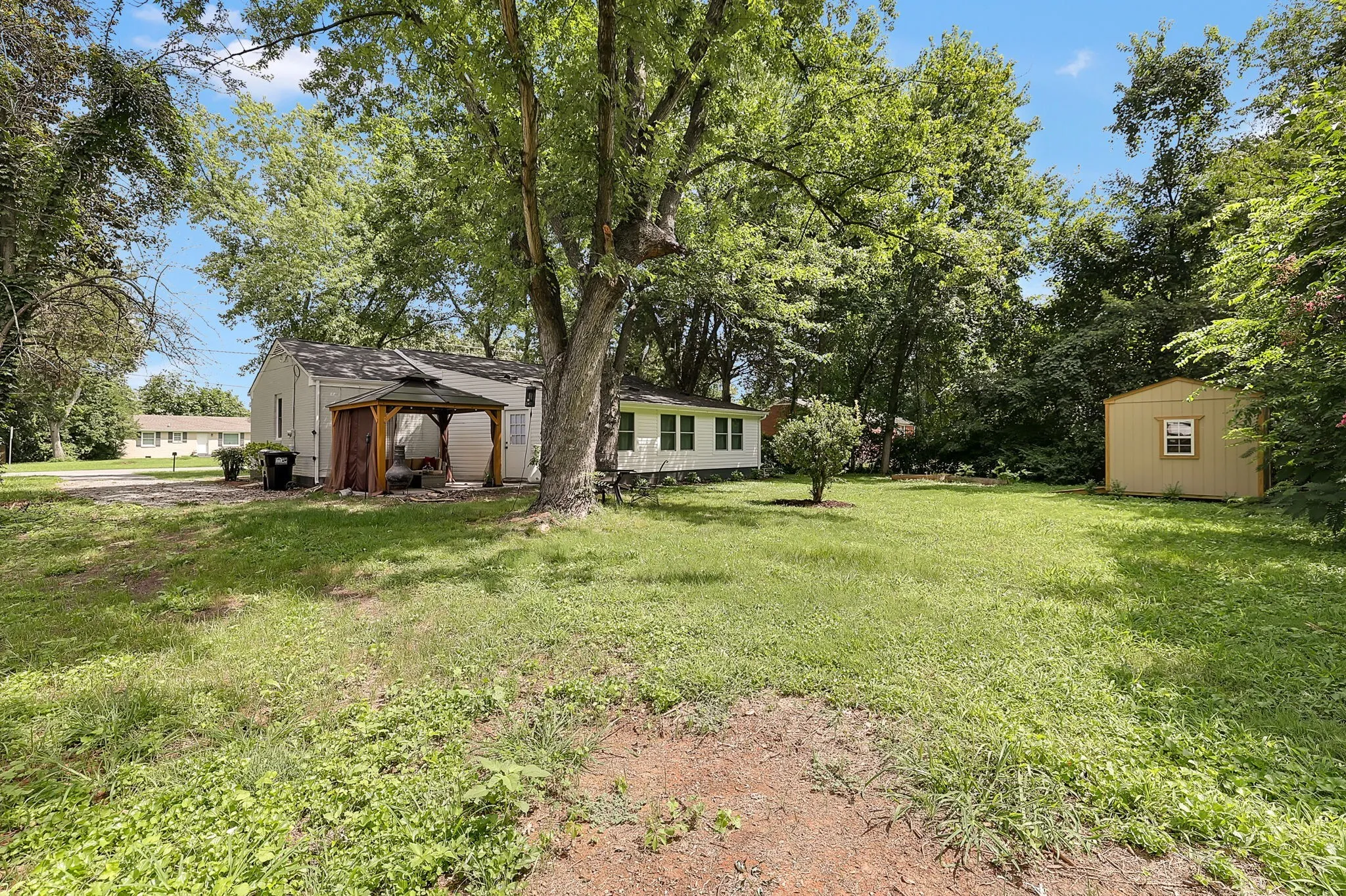 Adorable, newly renovated home in desirable Murfreesboro! Just 4 minutes from MTSU and 7 minutes to the charming Murfreesboro square! The open concept allows for entertaining or easy enjoyment. Newer roof, water heater, and electrical all upgraded for you! Kitchen and bathrooms have been completely renovated. Beautiful, finished hardwood floors. A designated dining area off the kitchen also leads to a huge bonus room with an electric fireplace and 7 big windows allowing amazing natural light and views of the peaceful yard. The large backyard offers a gazebo for outdoor enjoyment, large trees for shade and a shed for extra storage. Great curb appeal and long driveway that can fit numerous vehicles. NO HOA!