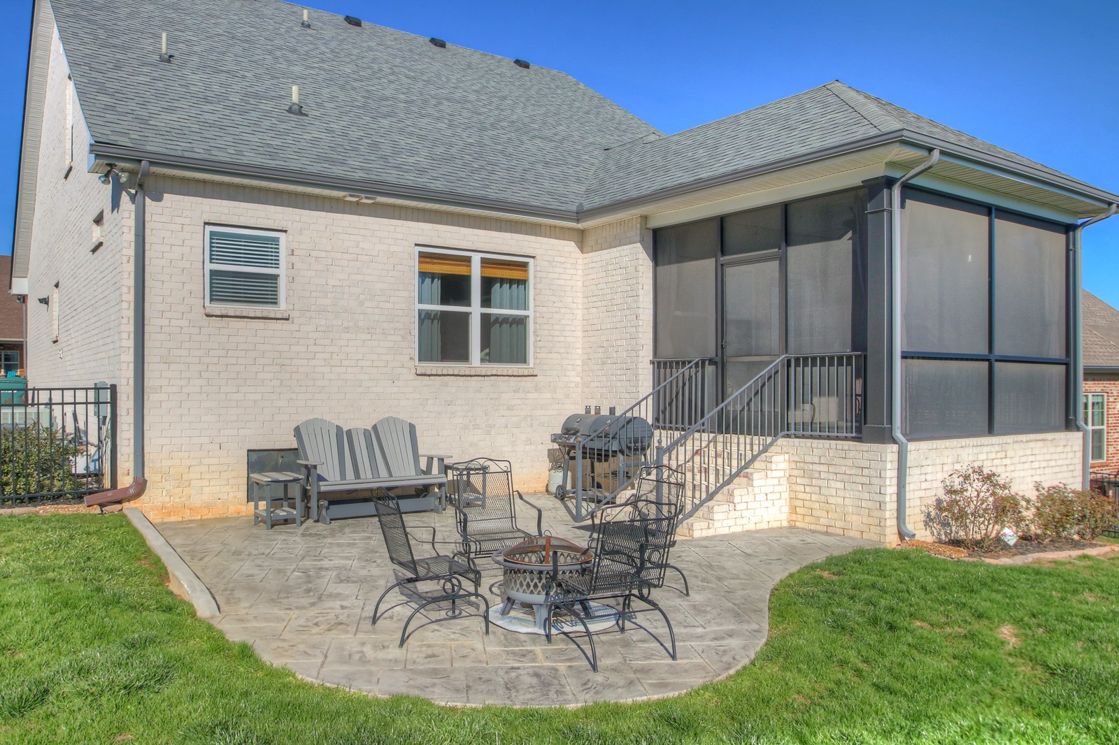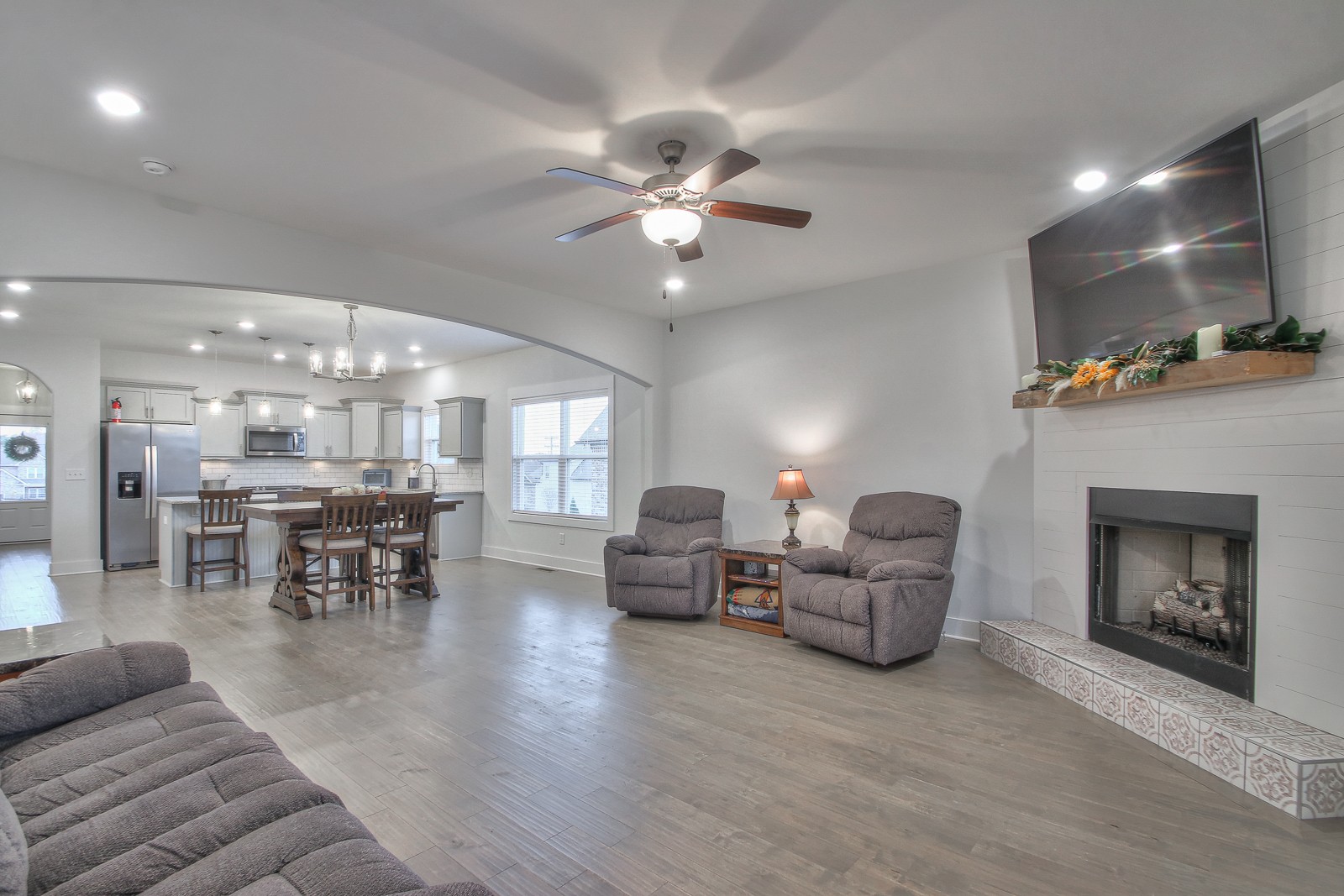 Better than new construction! This meticulously maintained home, built in 2020, has all the upgrades you want. This home is protected by a 2-10 Home Warranty available for purchase at closing. If not purchased at closing, the warranty expires the date of closing. The home features hardwood floors and elegant tile. The kitchen is a highlight, with a spacious counter-height island and a gas stove.. The home features an on-demand water heater and a cozy gas fireplace. An extra-wide driveway ensures easy garage ingress and egress. The garage itself offers ample overhead storage. Step outside to find a beautifully landscaped yard, fully fenced and complete with three gates, including a generous 10′ wide gate. The home also features a screened-in covered porch and a spacious stamped concrete patio, ideal for gatherings around a fire pit and toasting s’mores. Storage needs are met with a 12×12 shed.