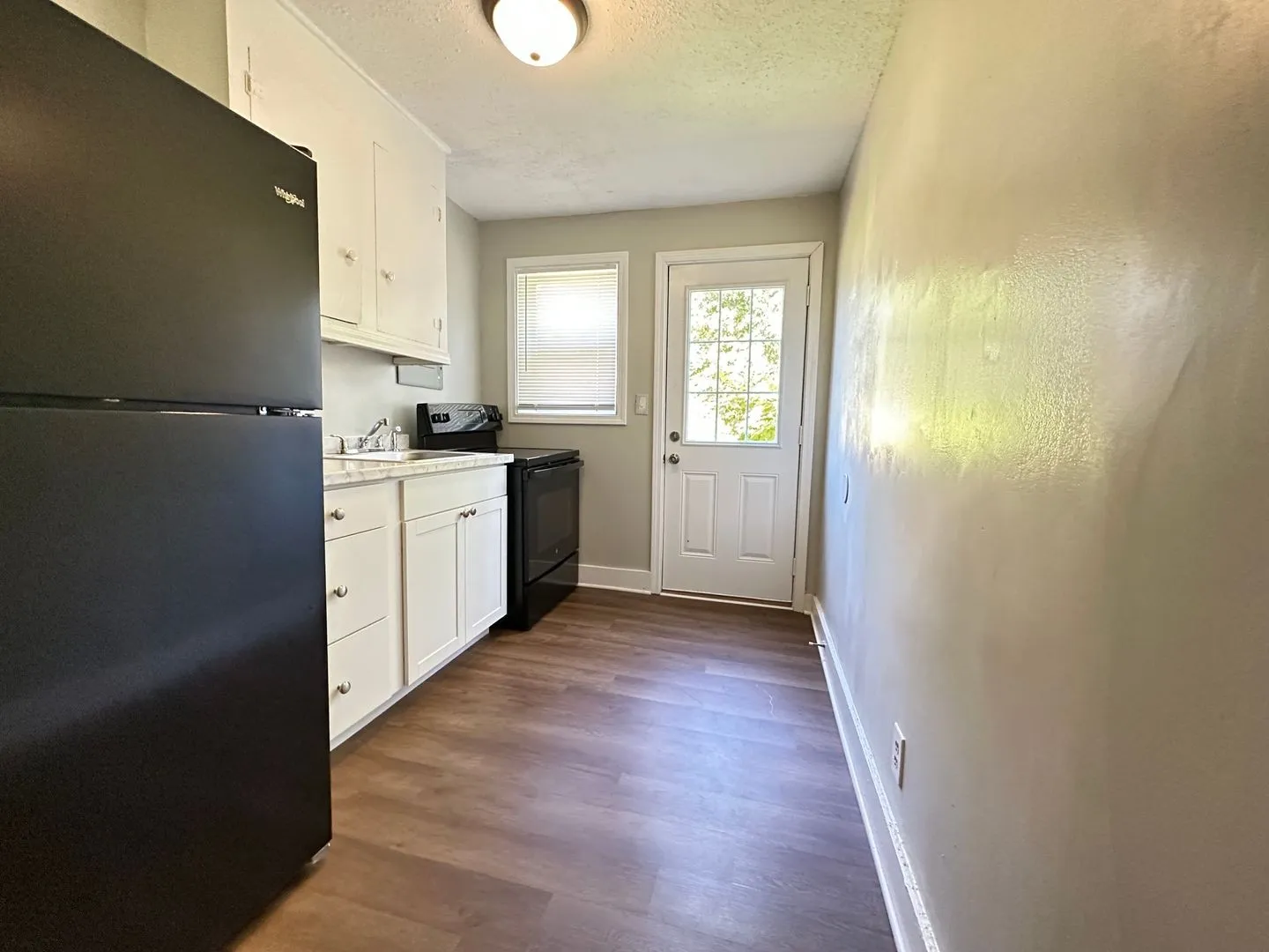 408 Plum Street is a one bedroom, one bathroom newly renovated duplex for rent just minutes from Fort Campbell Military Base, Downtown Clarksville and Austin Peay State University. There is an exterior door that leads to the lobby with one unit on the left and one unit on the right. The living room has an extra large window unit that cools the residence efficiently and the living room has beautiful LVP flooring. Through the living room is the hallway that leads to the full bathroom, kitchen and bedroom. The full bathroom has a single sink vanity and a shower/tub combo with built-in shelves. The kitchen comes equipped with a stove and fridge and has ample counter-top space! The bedroom has LVP flooring and a large window to fill the room with natural light.