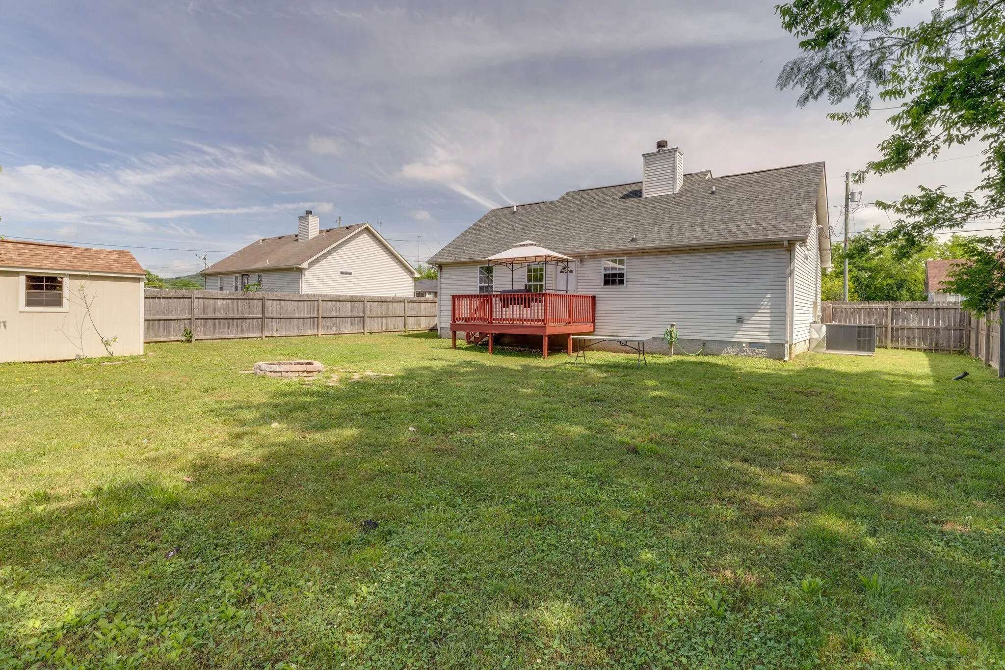 Investment Opportunity! Older photos, worth seeing with upgrades! Newer photos coming. Charming Ranch Home with an Expansive Fenced Backyard! The yard extends far beyond the fence line. Enjoy a back deck and a cozy covered front fporch. The formal, open iving room boasts a welcoming fireplace. The master suite features a delightful bay window. The split bedroom layout is great for privacy and all appliacnes stay!!!