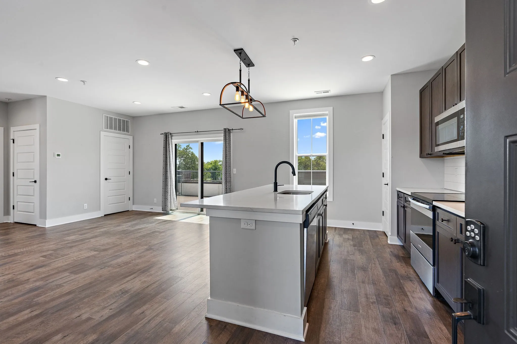Experience living in East Nashville in a boutique style top-floor flat condo at The Edison, one of East Nashville’s best condo buildings with a fantastic, private south-facing 200 sf balcony patio just off the living room with gorgeous sunset views.This wonderfully designed fourth-story one bedroom condo with a modern open floor plan, SS appliances, LVP flooring throughout, custom wood accents, and in-unit washer and dryer. With easy access to the condo from the elevator or the stairs, the building also features dedicated parking and a common area perfect for working from home all for super reasonable monthly HOA. Building also offers a dental office and yoga studio on the first floor and is just around the corner from Elegy Coffee, Nicoletto’s, Living Waters Brewing, Grimey’s Record Shop, Mickey’s Tavern, Tiger Bar, Mala Vida, The Fox Bar & Cocktail Club, and more, and walkable to the Margaret Maddox. YMCA. Everything you need to enjoy the city life, less than 10 minutes to downtown!