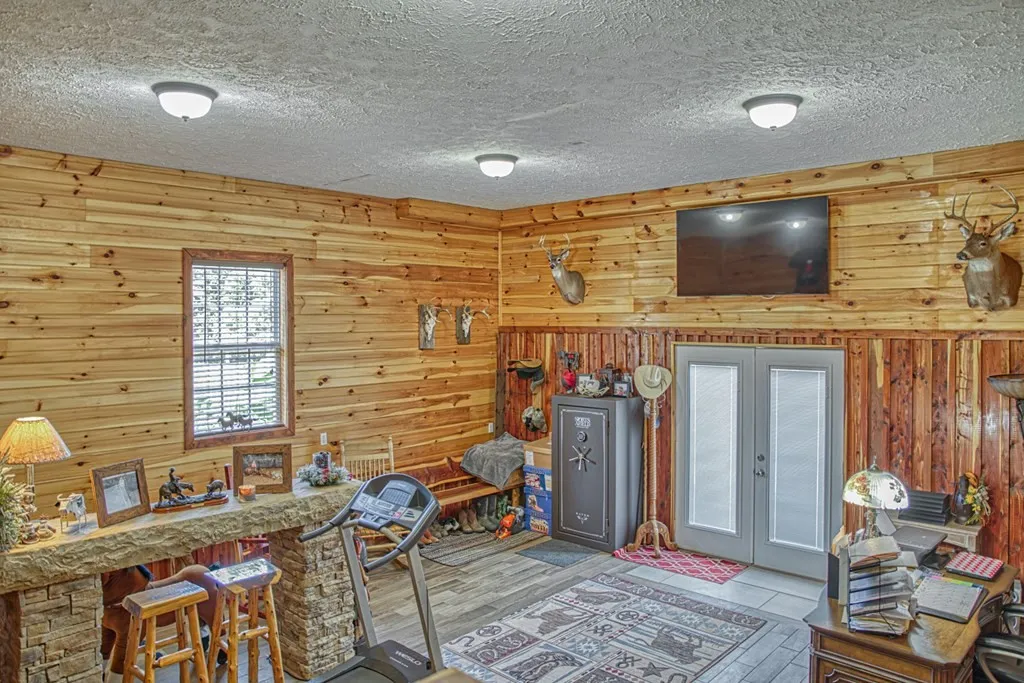 56 acres with this pristine, upscale home sitting well off the road PLUS a 27,000 sq. ft. steel beam construction building. Currently used and a horse show and training barn but could lend itself to many uses. Home has 4 bedrooms, 2 & 1/2 baths, den and bonus room. Curve staircase, loads of storage room. Three car detached garage. Land is mostly open and fenced. Some wooded areas with trails, creek, spring, pond and waterfalls. There is also a darling apartment attached to the barn. Lots of extras like arena drag and auto waterers. Great location close to Cookeville, Gainesboro, several rivers and lakes. Sq. ft. posted is total sq. ft. of home. Huge mast suite on main floor