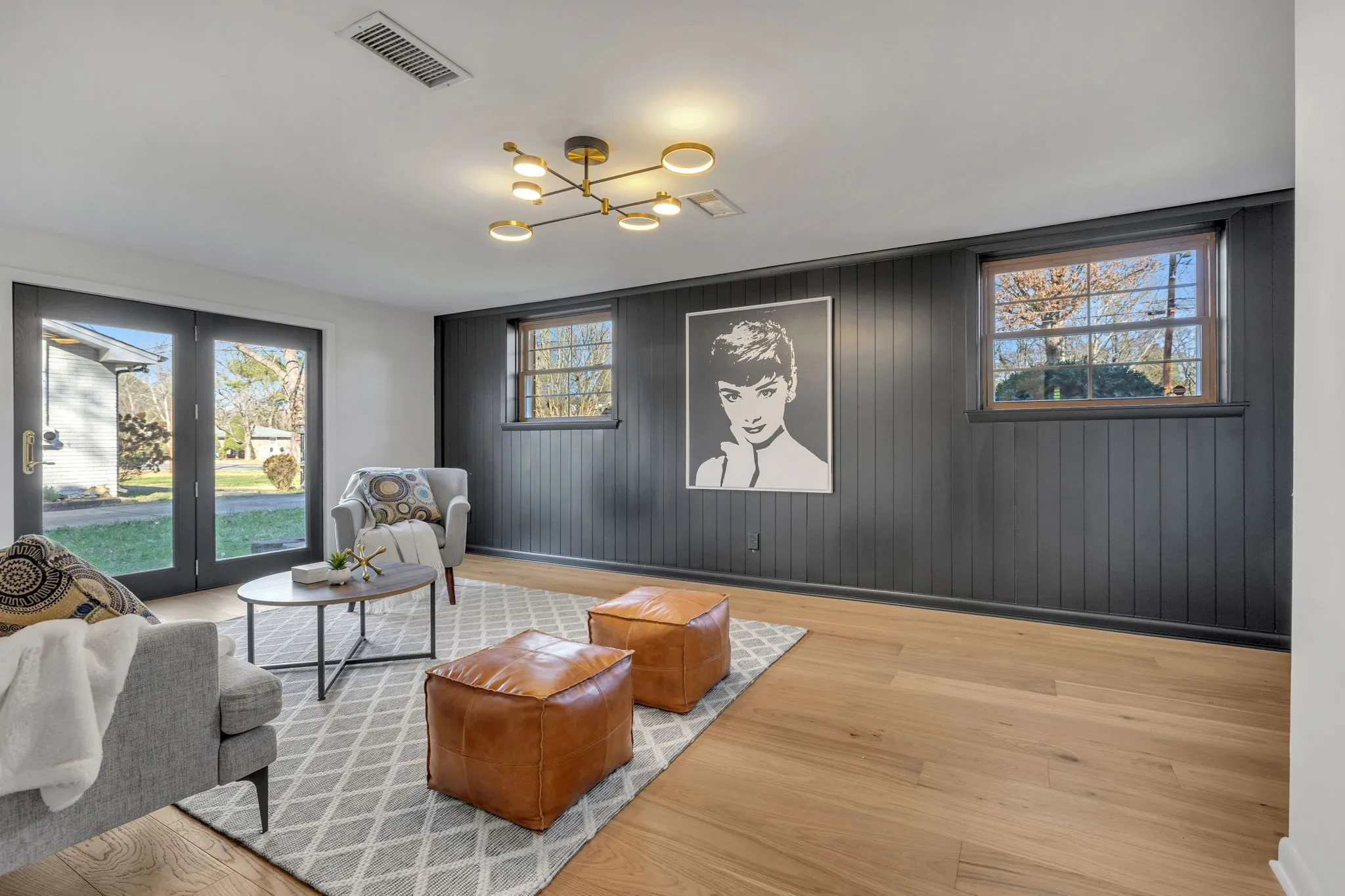 Welcome to your Mid-Century masterpiece!! This stunningly renovated 5 bdrm/ 2 bath home, nestled in the heart of Crieve Hall / Whispering Hills combines the allure of Mid-Century design with modern functionality, style and sophistication. Step into the light filled great room with oak hardwoods & modern finishes. A beautiful kitchen features quartz countertops, stainless appliances, and a chic breakfast area, perfect for culinary enthusiasts and casual gatherings alike. The upper-level hosts three large bedrooms, a double vanity bathroom meticulously updated, showcasing contemporary fixtures & finishes. Descend the stairs to discover a private retreat on the lower level—two additional bedrooms and bath provide versatile spaces for a home office, primary bedroom or game room. Step outside to the sprawling backyard & sip morning coffee on the deck or host gatherings under the stars. Professionally designed with great schools, parks, dining, and entertainment options nearby, Welcome Home!