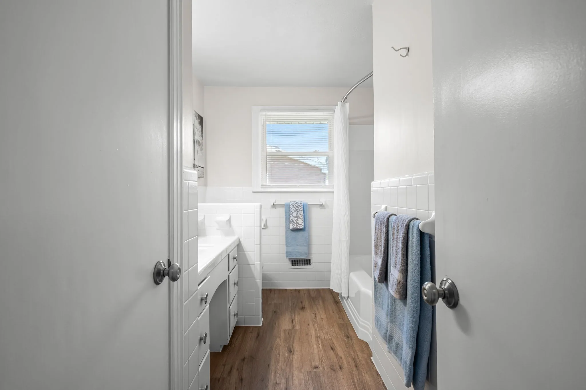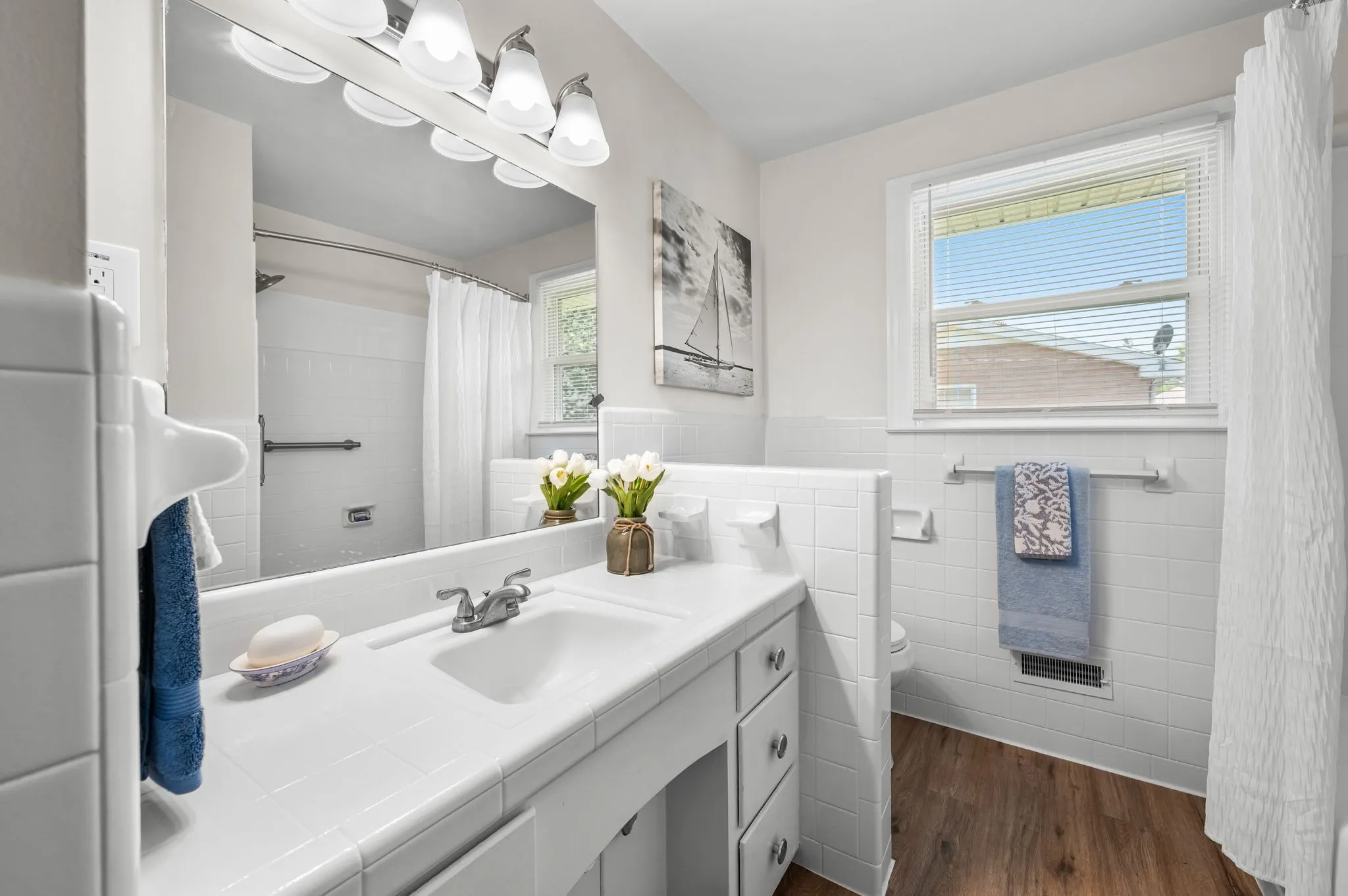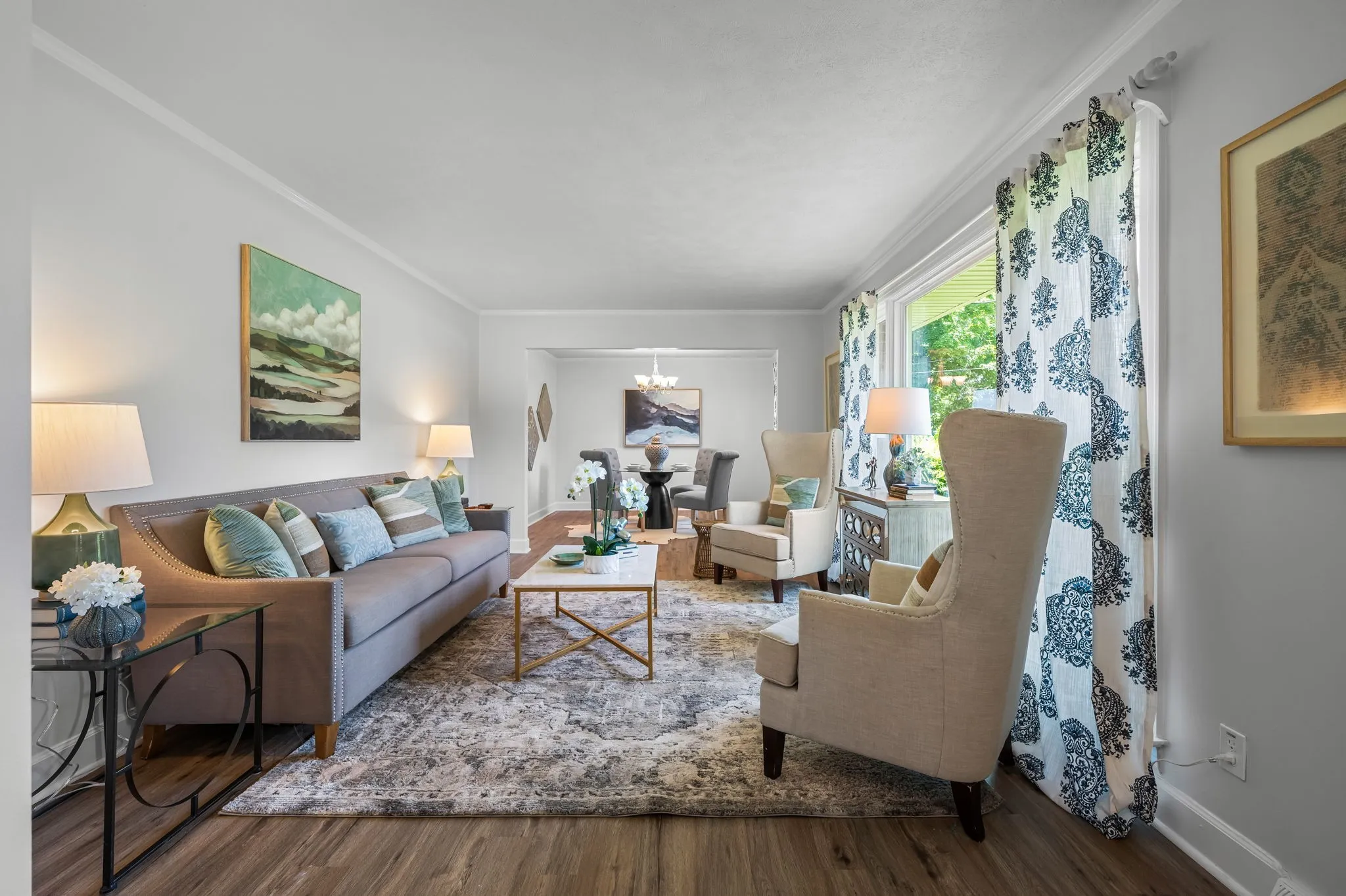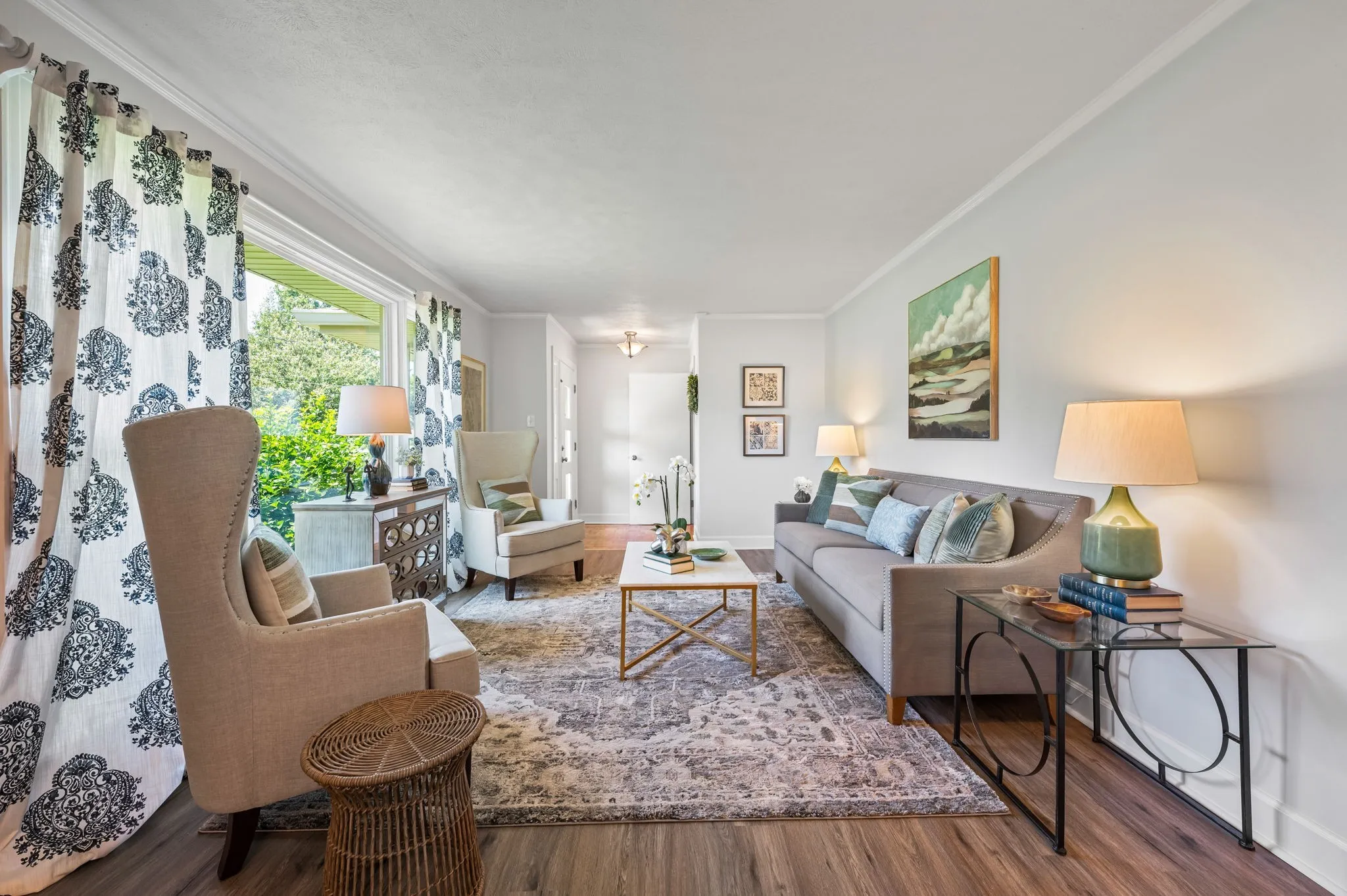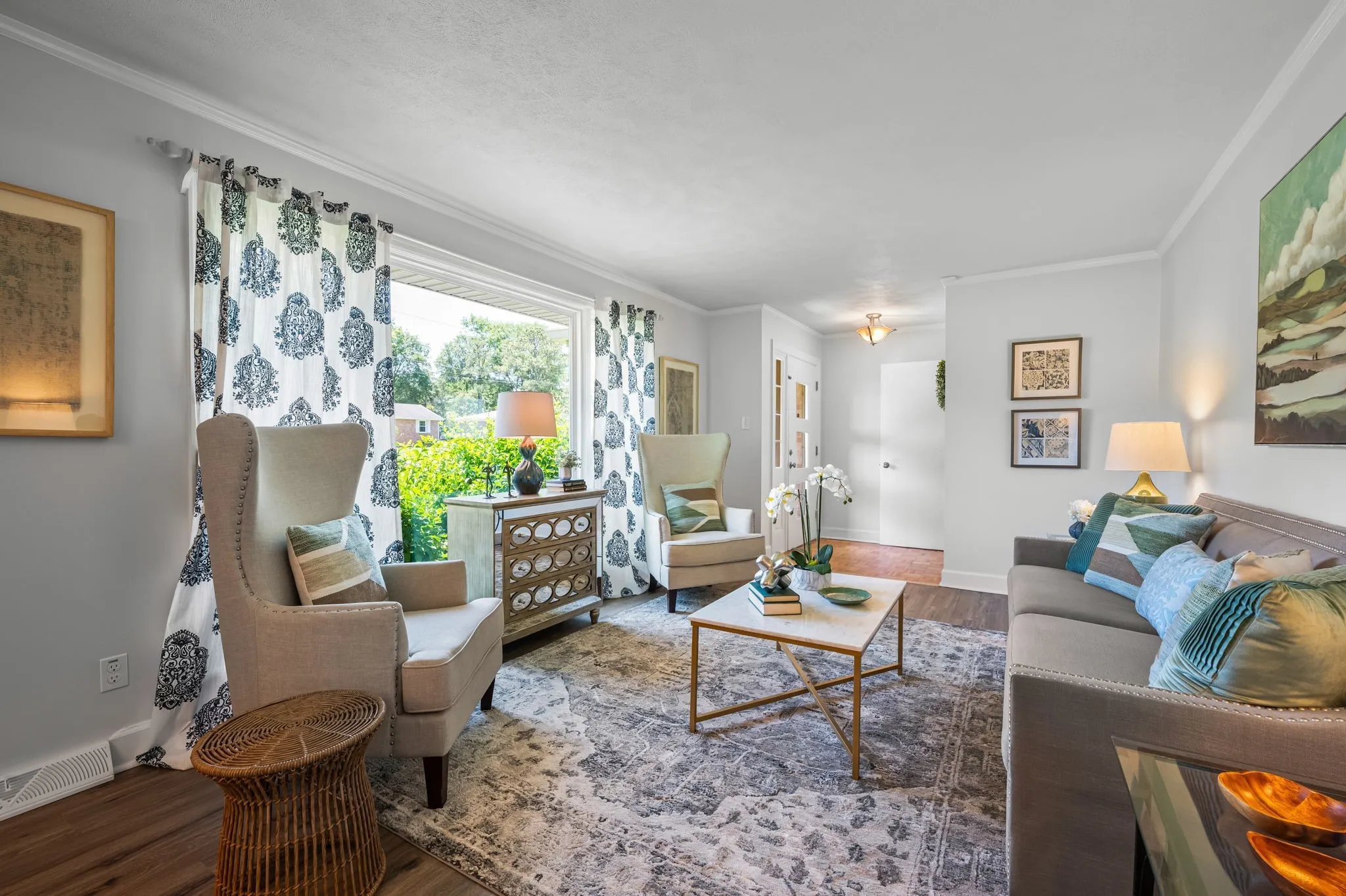 This 4-bedroom, 3-bath, 2352 sq ft brick home blends midcentury charm with modern updates. The single-level layout boasts gleaming hardwood floors, contemporary fixtures, and bright white paint throughout. A sunny front sitting room flows into the formal dining room, perfect for entertaining. The open living room and kitchen area features a cozy stone fireplace, painted wood paneling, and a breakfast bar with stainless steel appliances and ample cabinet storage. The master bedroom is a spacious retreat with a luxurious en-suite bathroom, including a double sink vanity and tiled tub/shower combo. An expansive bonus room off the kitchen can serve as a home office or second master suite, complete with a bay window and full bathroom. Outside, enjoy the large covered carport/patio for shaded parking or entertaining. The level, grassy backyard is perfect for pets or children to play. Conveniently located near shopping, schools, hospitals, and entertainment in Lebanon. Don’t miss this gem!