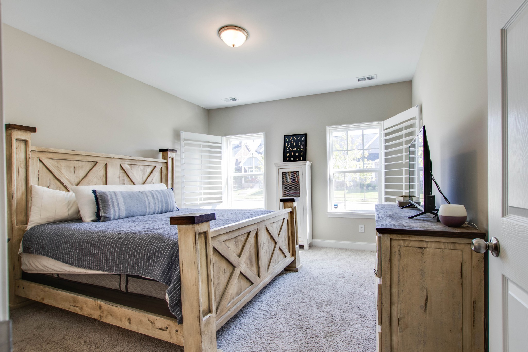 This stunning cottage is move-in ready and features 2 bedrooms and 2 bathrooms on the Main Level, along with a full bonus room/ 3rd bedroom and bathroom upstairs. The home has an open concept layout with 10 ft ceilings, hardwood flooring, tiled bathrooms, plantation shutters and more. It also has tons of storage, a 2 car garage, and a storm shelter. The neighborhood has all the amenities you need, from a pool, to a fitness center, park and even a to-be-built bocce ball court. This home has modern finishes and more upgrades than new construction. Don’t miss your chance today!