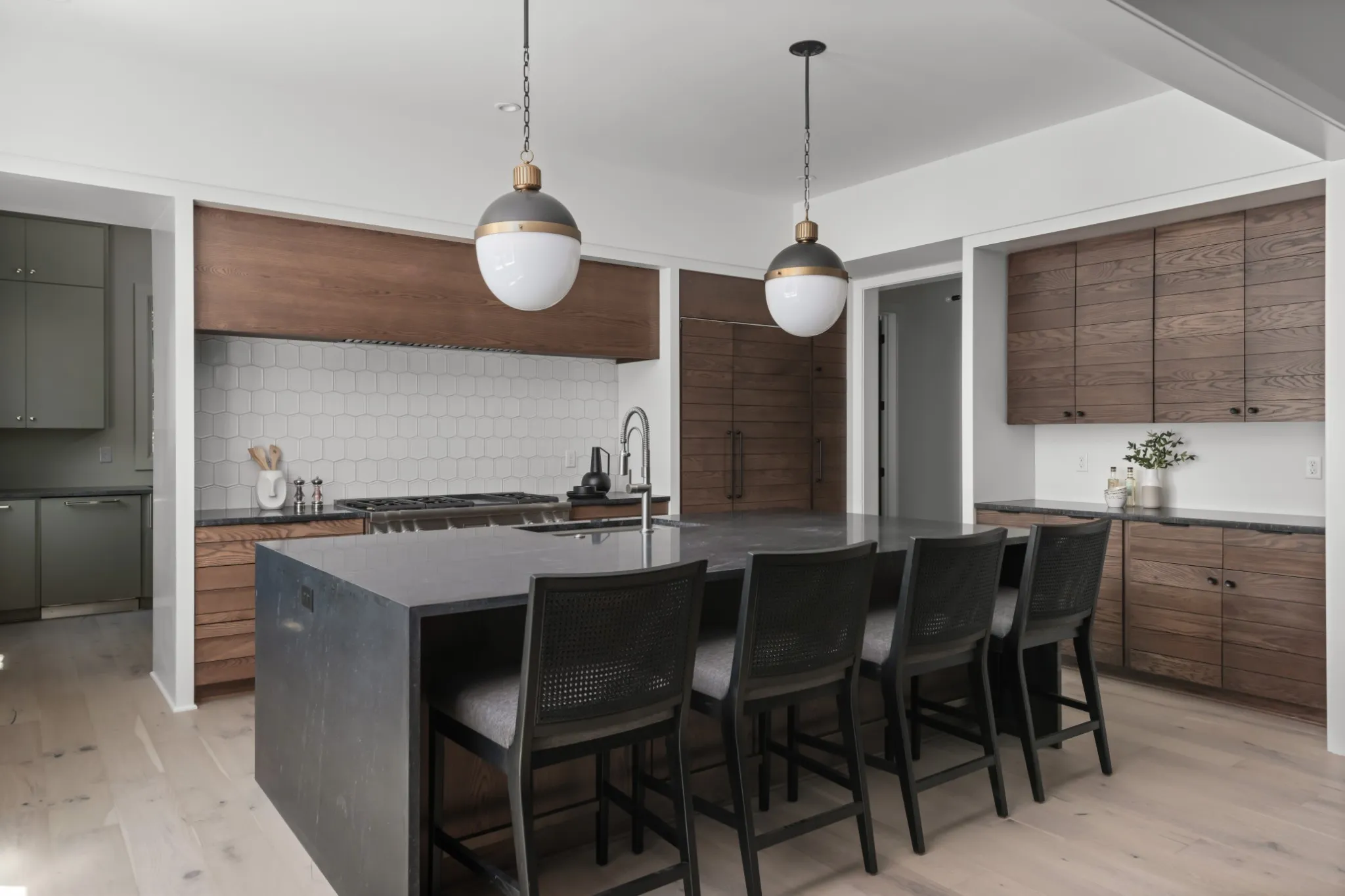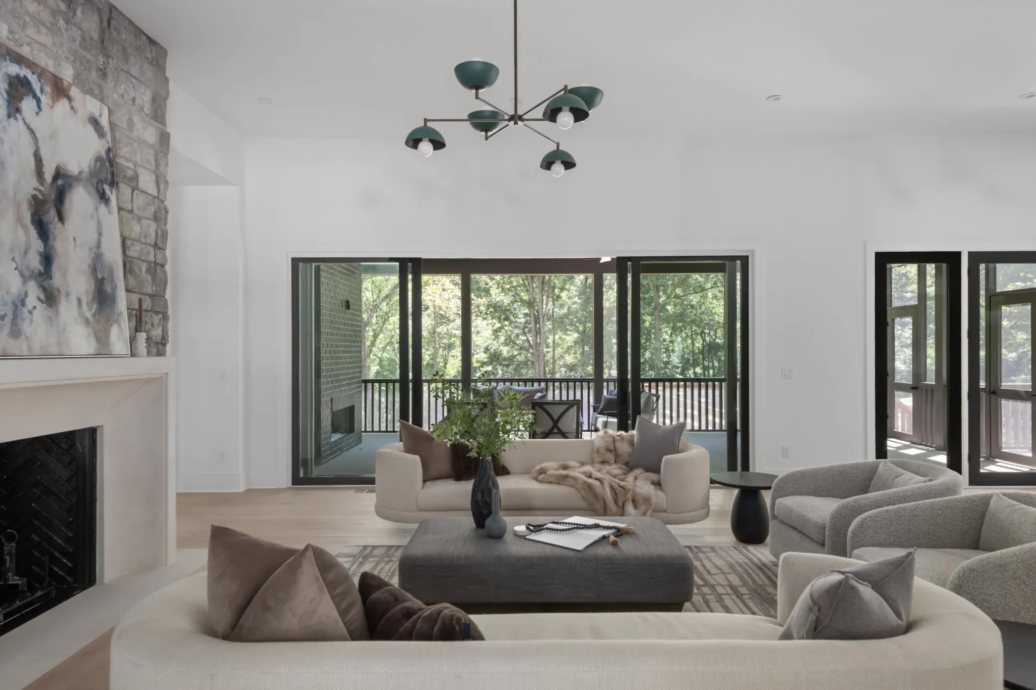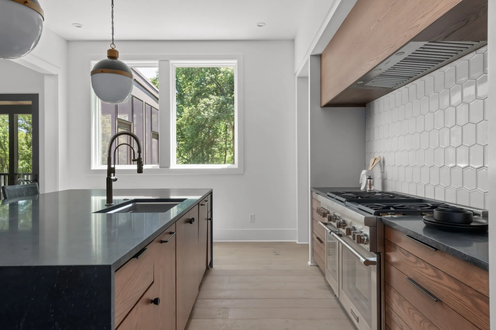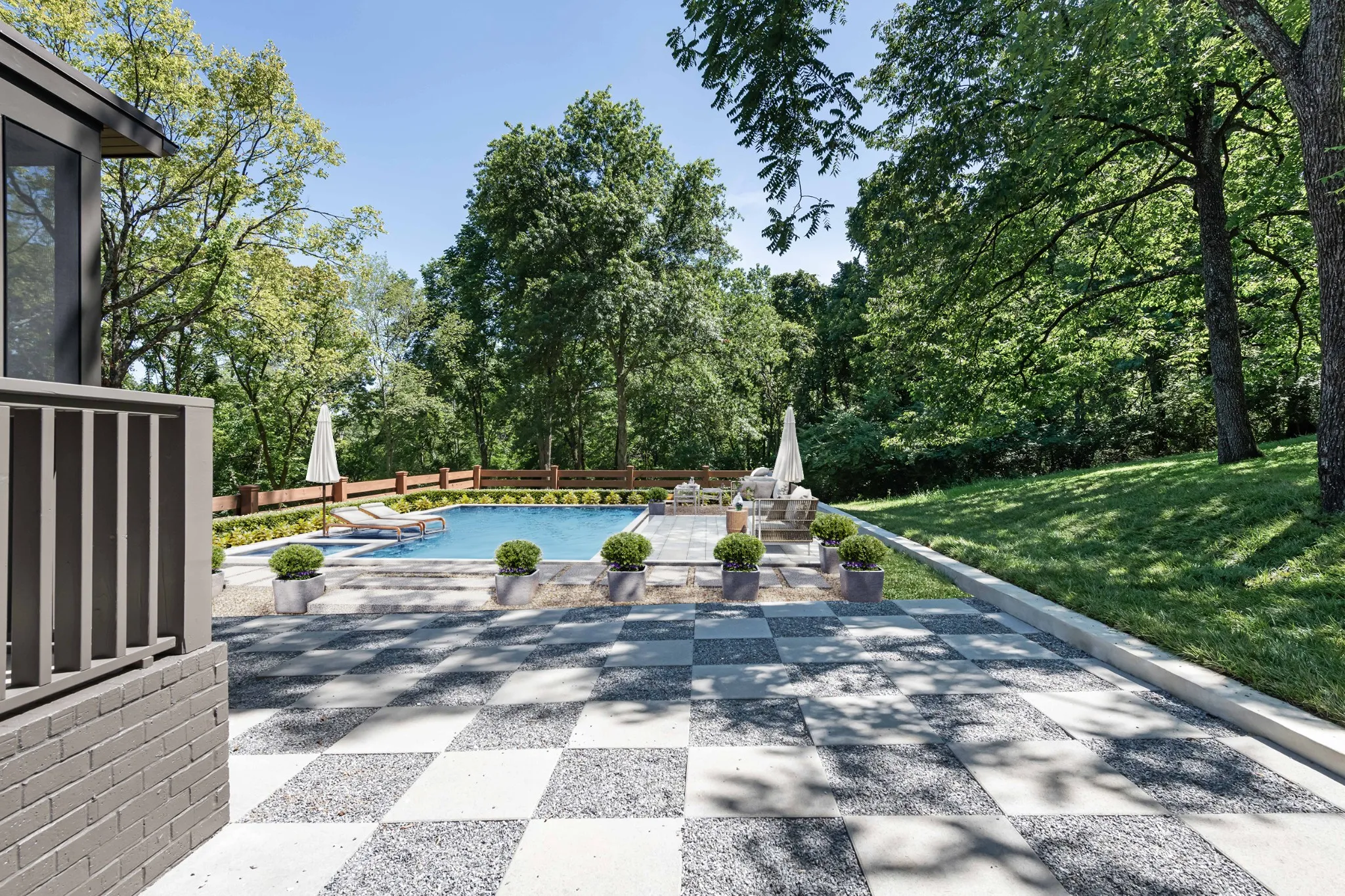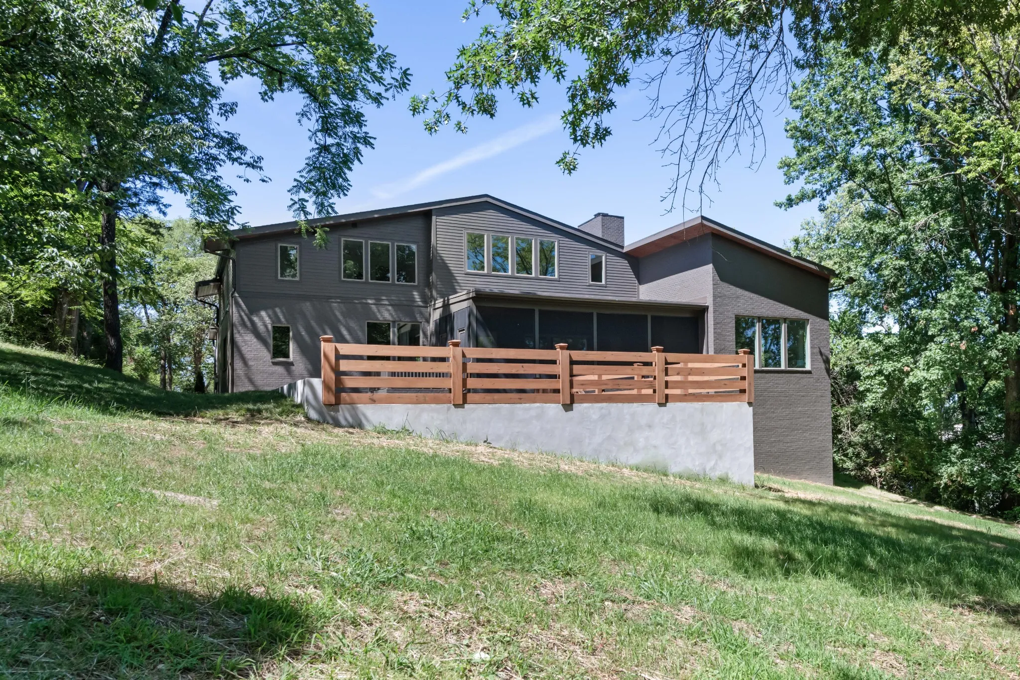 New Mid-century, P. Shea-designed stunner on a quiet Oak Hill Street near Radnor. This modern home boasts 6 bedrooms, 5 full/ 2 half baths and large bonus room with built-ins. Gorgeous finishes throughout including Thermador appliances and custom stained oak cabinets in kitchen and scullery. The oversized living room features a fireplace that can be wood-burning or gas and opens up to massive screened-in porch w/ gas fireplace. The back area also includes mature trees and a grilling terrace with possibility to install a pool. Pella windows, tons of storage, conditioned crawl and 2 car garage. Image featuring pool is a rendering and is not included.
