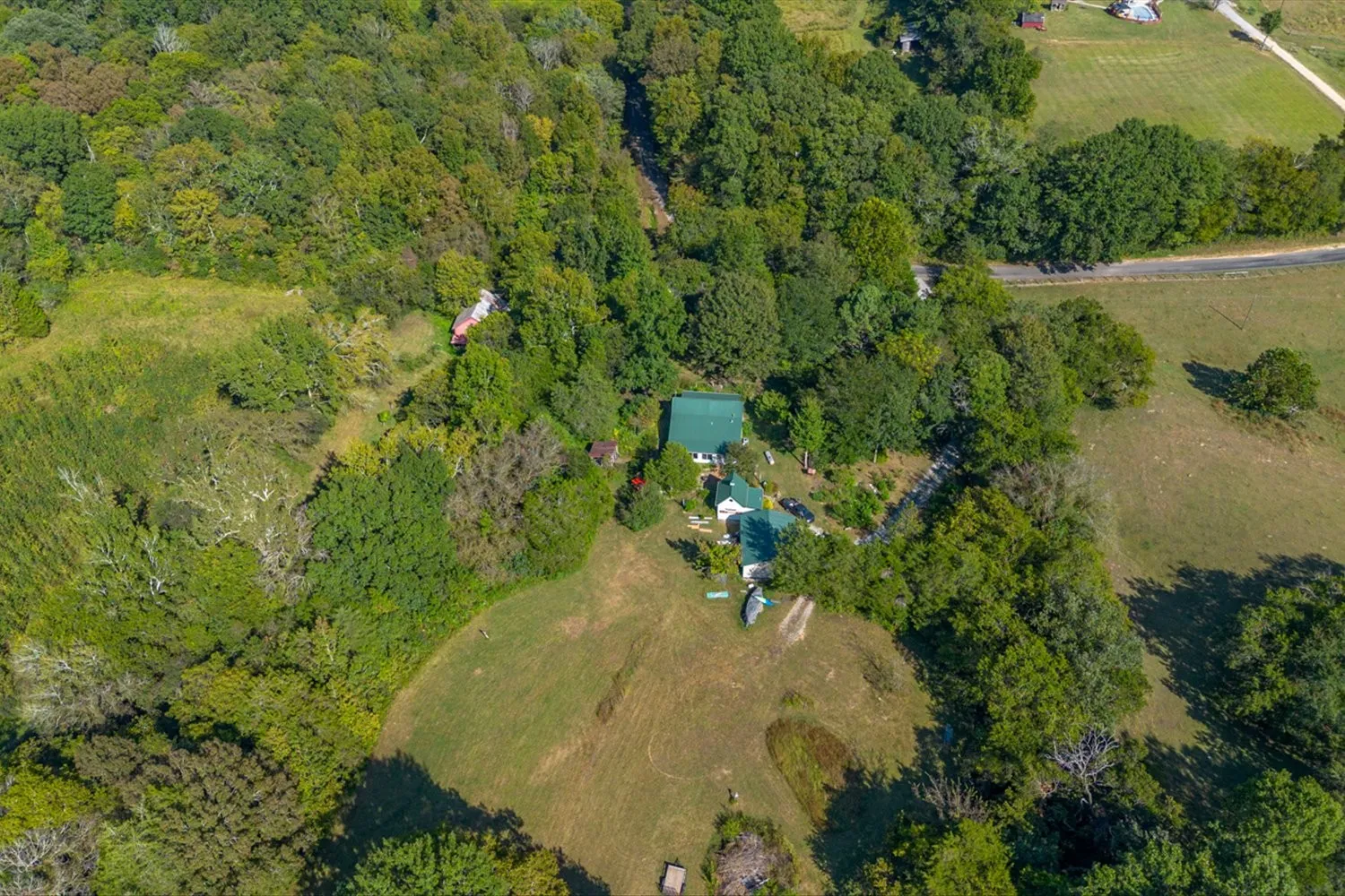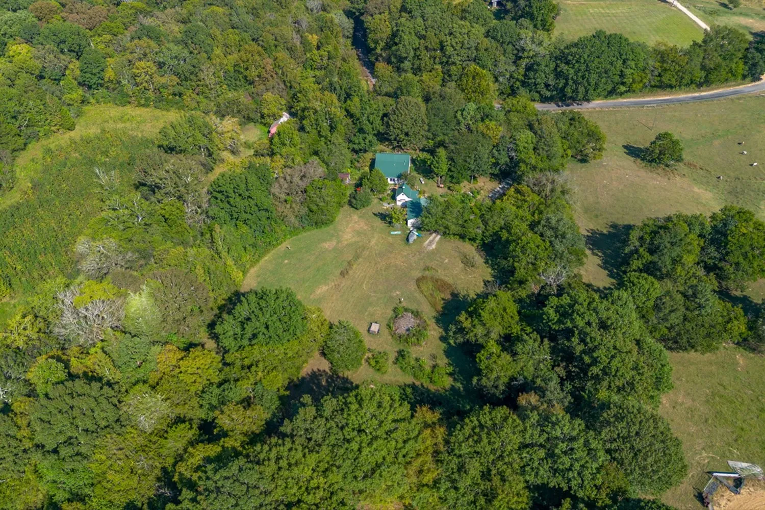 Looking for your own piece of paradise?! This 38.9 acres has everything you are looking for! 2 Ponds, riding/walking trails, open pasture for horses/cattle, lots of mature hardwoods, all with privacy and seclusion. Home renovations include: new metal roof, Hardie Board and Batten exterior, refinished hardwood floors, fresh paint throughout, new windows, tile in bath, crown throughout, list goes on and on. Also has a 1 BR 1 Bath cottage behind the main house with a 2 car detached garage.