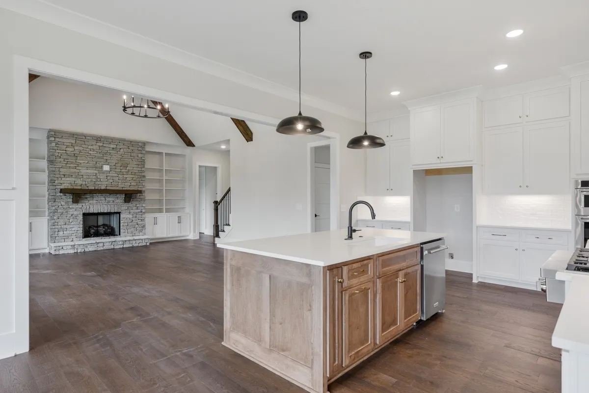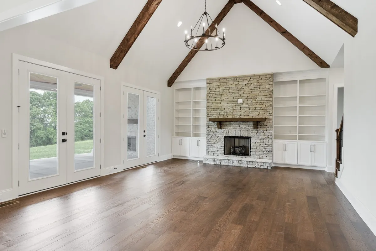 NEW Construction on 4 ACRES!!! 4 Bedrooms, 3 1/2 Baths*Open Floor plan with Vaulted Ceiling in Living Area w/Stained beams*Kitchen features large Island, Double Oven, Pantry, Tile backsplash*Stained beadboard ceiling in Dining Room*Hardwood Throughout Main Living Area*Quartz Countertops*Master Ba w/Walk in Shower, Free Standing Tub, Double Vanity* Mud Room*Spacious Bonus Room*Extra Closets*Expansive Covered Back Porch w/Gas Fireplace & Stained beadboard ceiling*Patio *Preferred Lender incentive! Builder pays Title!! HOME IS COMPLETE AND MOVE IN READY!!