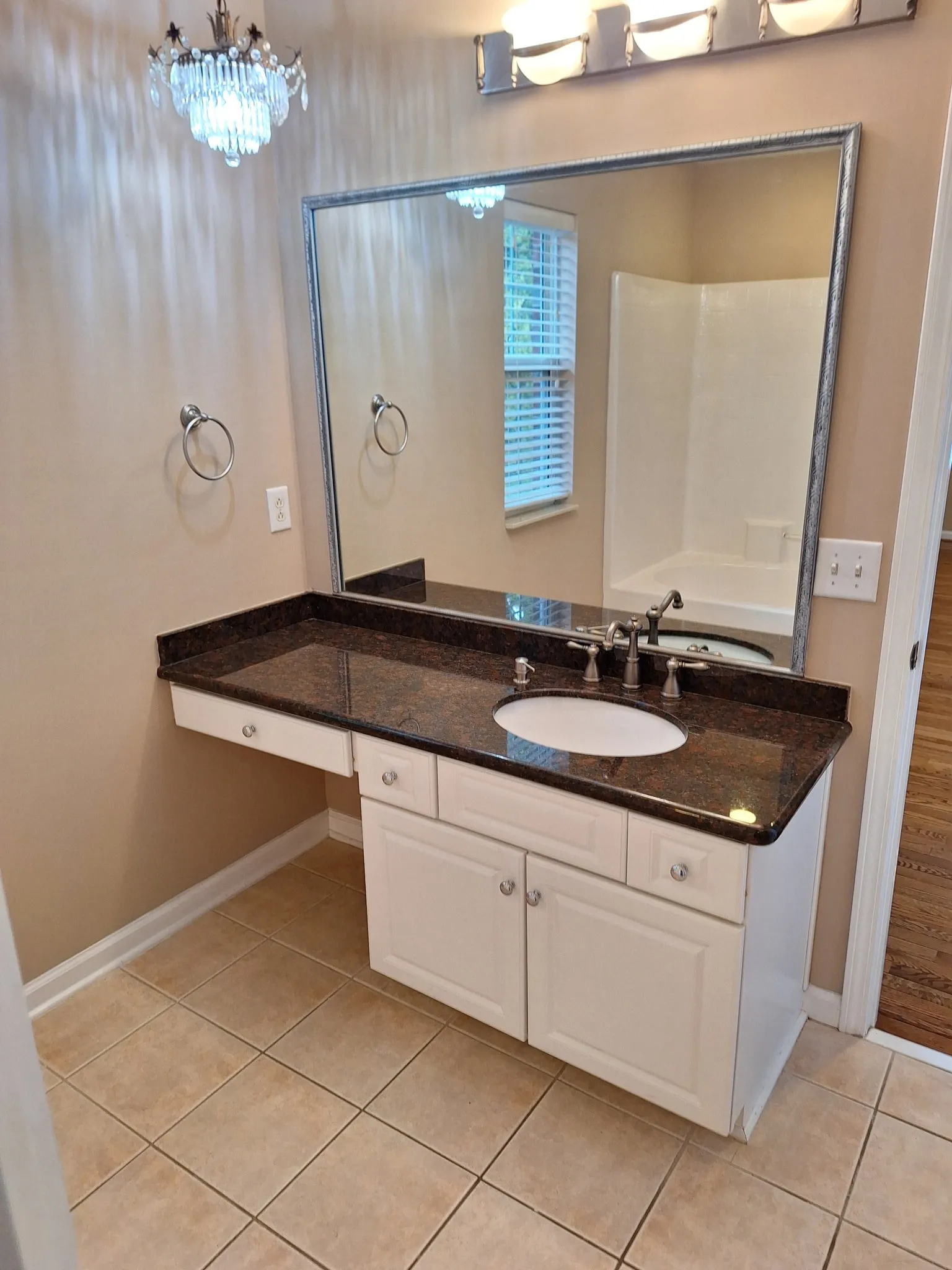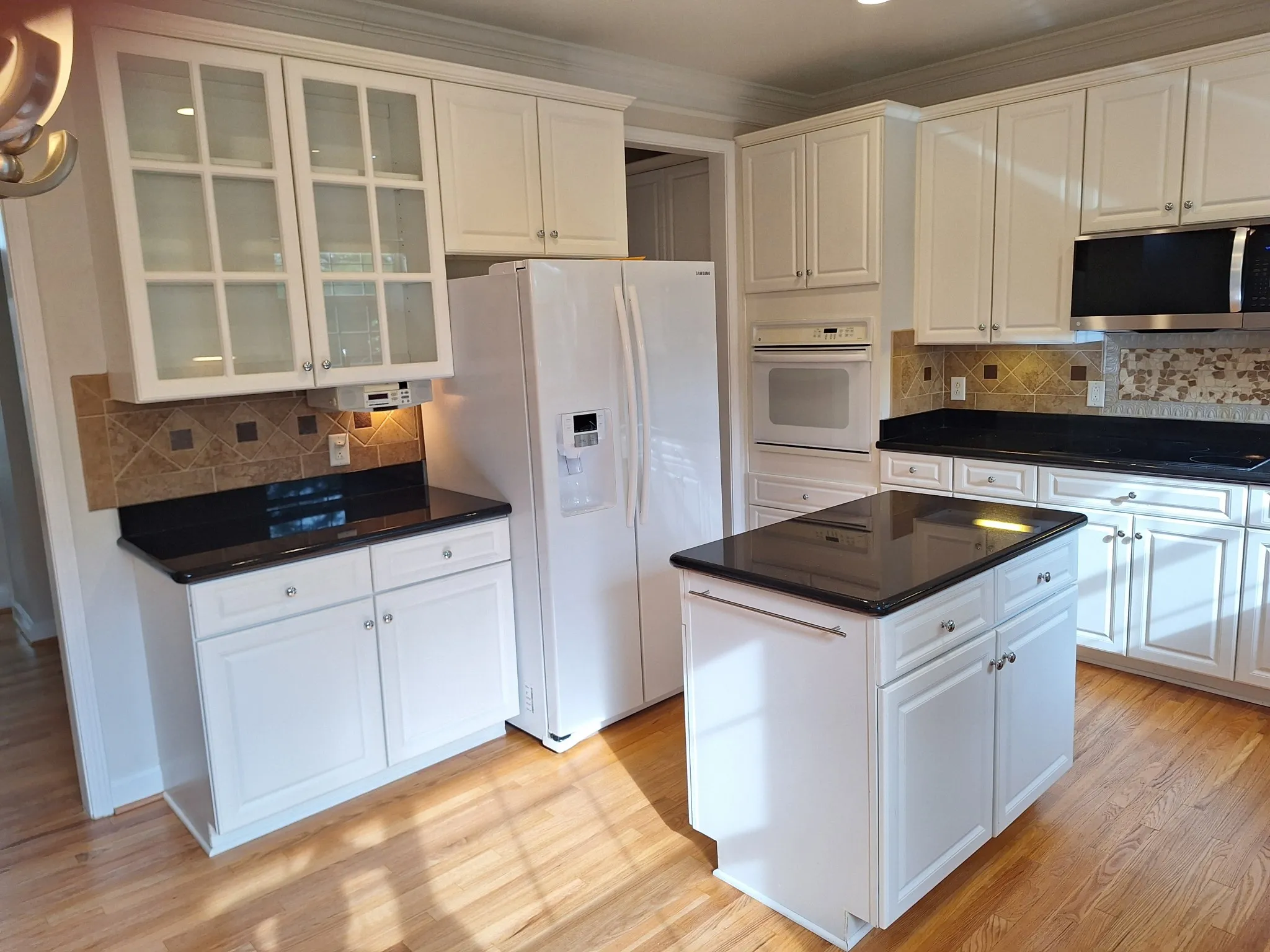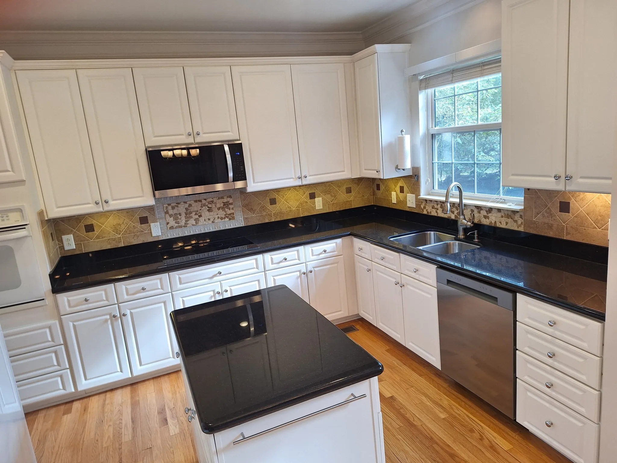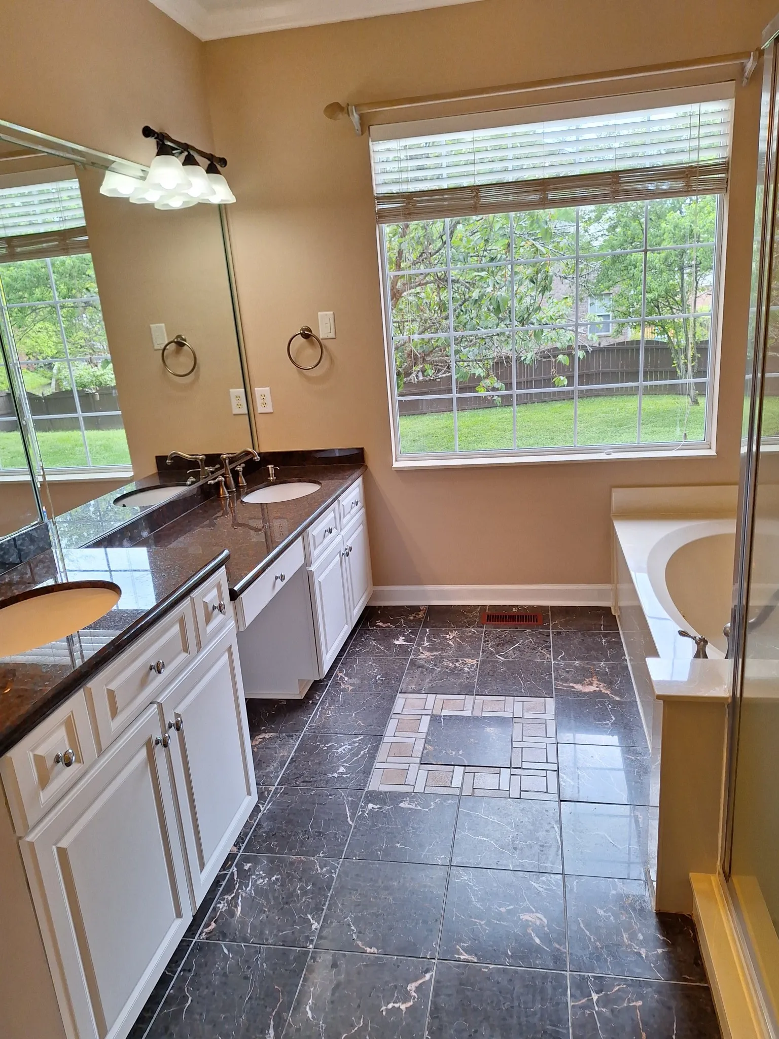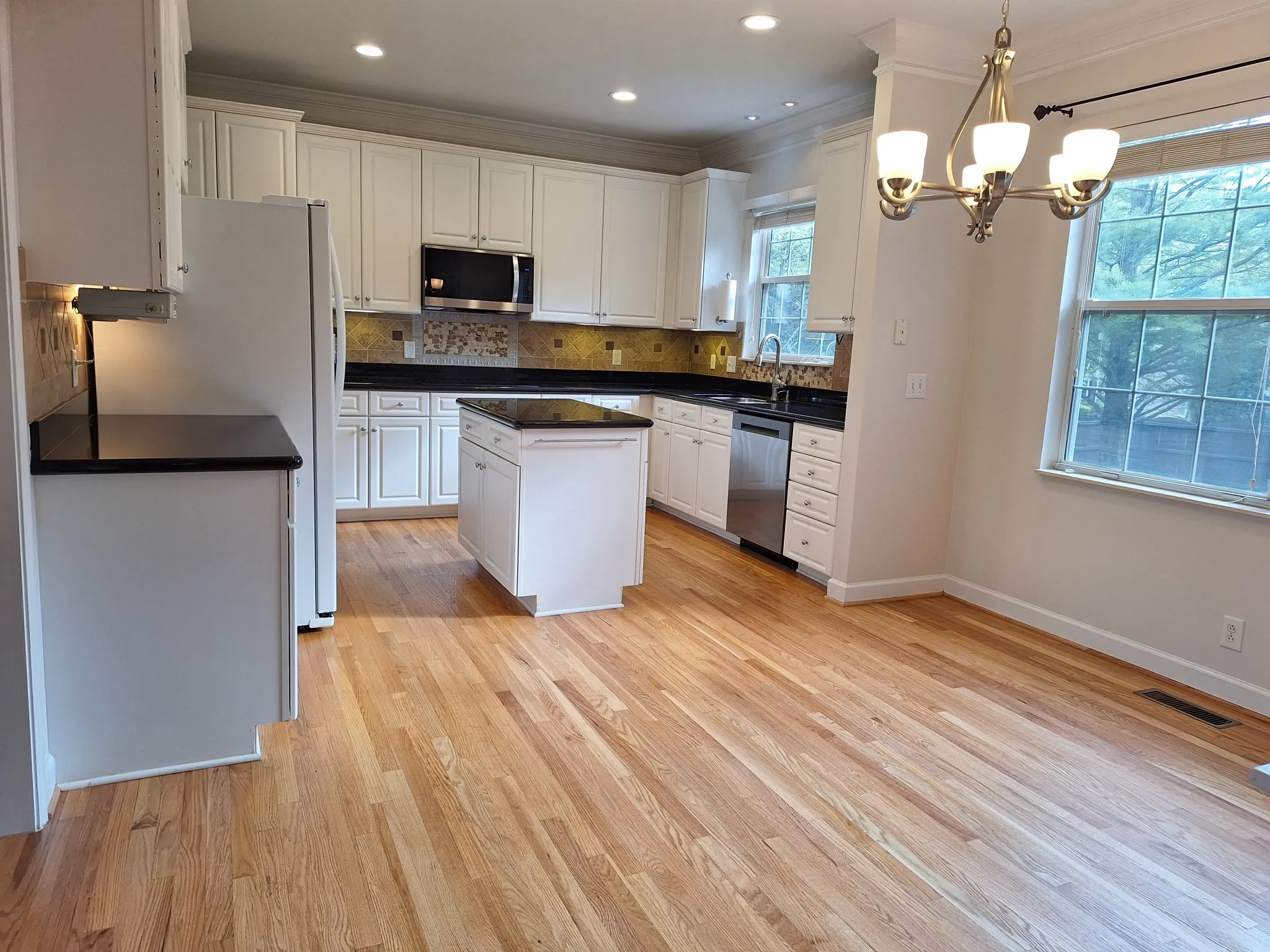 4 BR 3.5 BA 3 Car Garage / Master Up & Down / No Carpet All Hardwood/Marble/Tile, Granite in Kitchen and all Full Baths /min. 9ft Ceiling down / Jacuzzi Tub / All Appliances Included Except Washer/Dryer Fenced Back Yard, Large Attic Storage / Large Covered Deck mounted 50″TV stays / PATIO /Downstairs HVAC 11/30/2018 / Gas Water Heater 4/13/24 / Ceiling Fans all Bedrooms / mop sink in garage / lots of crown moulding and recessed lighting / remote controlled gas logs stay