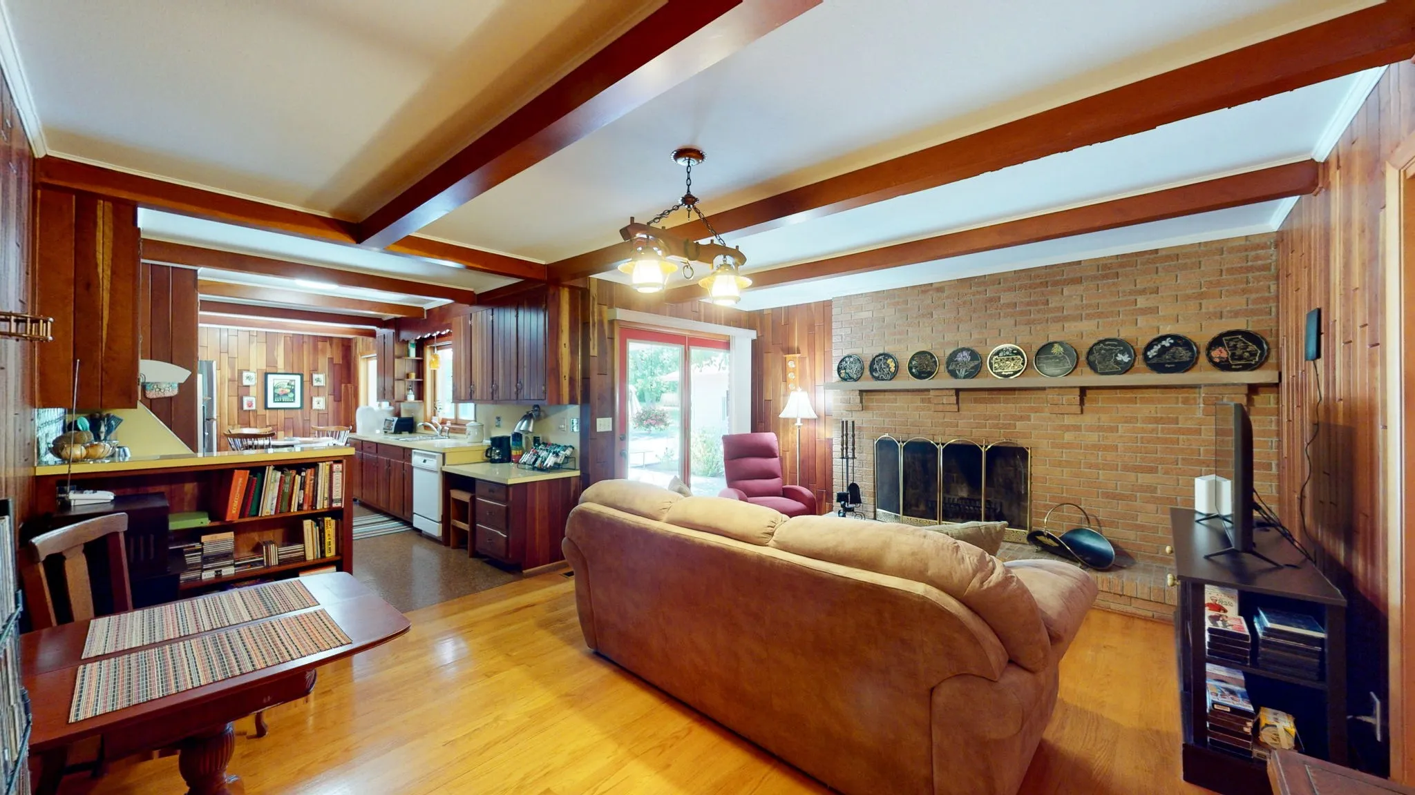 Welcome to this meticulously maintained all-brick home, built in 1960 and located in the desirable Bellwood subdivision. This home exudes an amazing vibe and feel, featuring lovely wall colors, a spacious living and dining room combination, and a cozy den adorned with beautiful paneled walls and a large brick wood-burning fireplace. With hardwood floors throughout, the one-level layout is flooded with natural light from numerous windows. Enjoy the convenience of an attached two-car garage and the added bonus of a detached two-car garage, perfect for a potential in-law apartment. Relax on the shaded covered patio area, overlooking a large yard with mature shade trees and lush landscaping. This home is conveniently located, offering both comfort and accessibility. Don’t miss the opportunity to make this charming home your own!