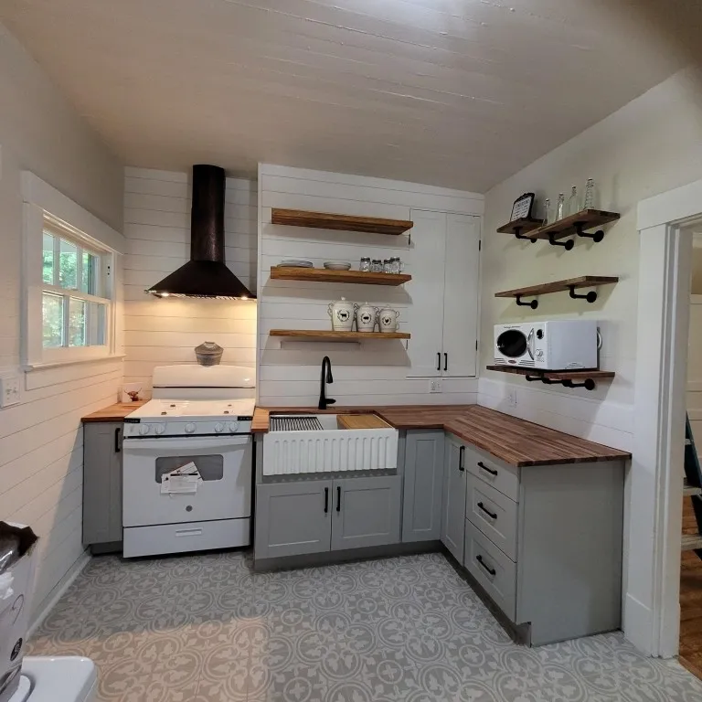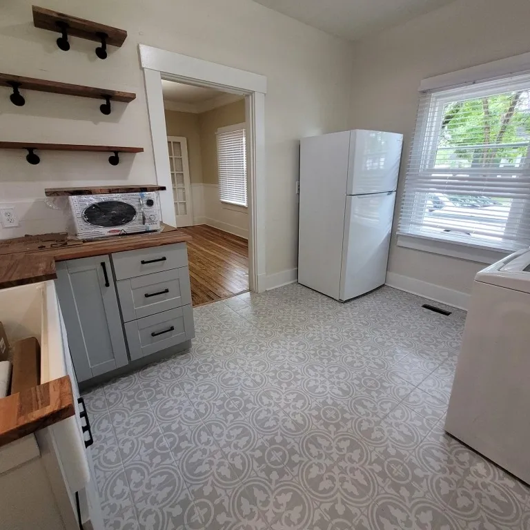 Come home to this charming two bedroom, one bath cottage farmhouse in downtown Murfreesboro. There’s nothing to do but just move in! Kitchen has been totally renovated with tile floors, new cabinets, and all new appliances. Most plumbing and all wiring updated 2 years ago. The HVAC unit is only 2 years old. Hardwood floors have been sanded and refinished. All new windows. Bathroom has clawfoot tub to match the farmhouse era. Vinyl siding and metal roof will last for years. It has a good size backyard and a storage shed at the end of driveway. Encased, dirt floor basement with current termite protection. Freshly painted throughout. All new 2″ wood faux blinds on windows. The front porch is ready for your favorite swing. Comes with washer and dryer (used). Perfect starter home or retirement.