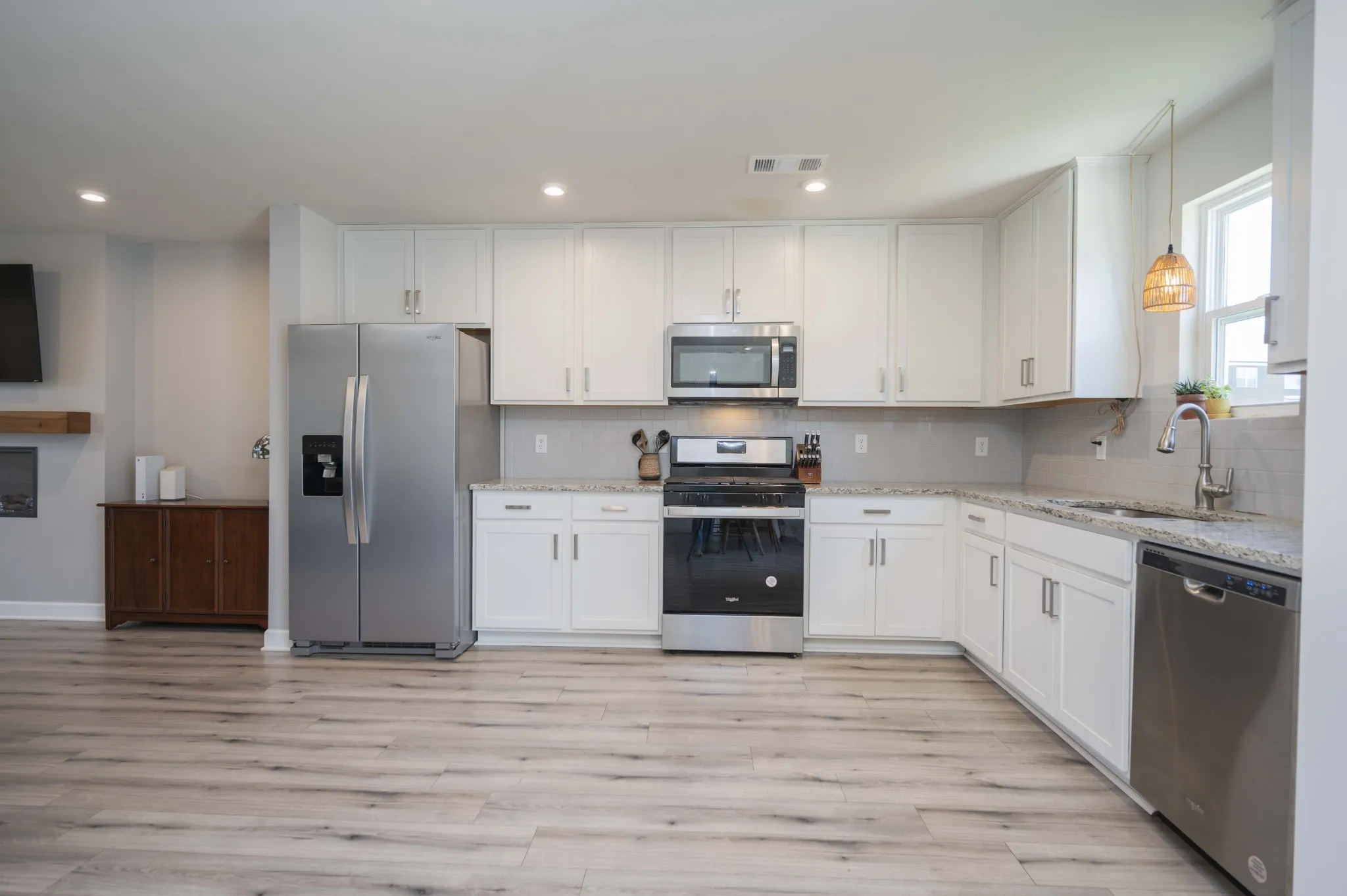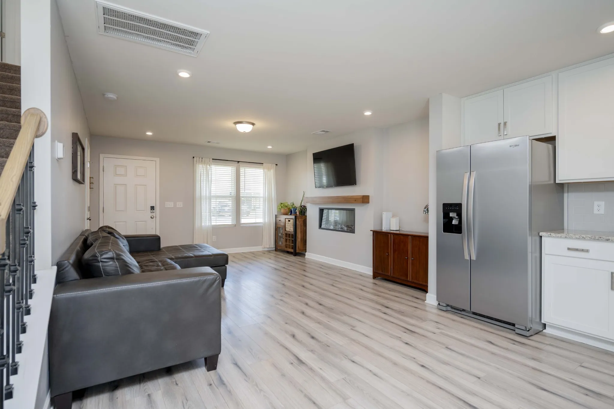 Less than 3 years old, this 3 bedroom / 2.5 bath plus bonus area features a super-open floorplan. Decor style throughout is a cozy neutral, which includes a gorgeous recessed electric fireplace with freefloating mantle. Kitchen includes granite counters, tile backsplash, and all major appliances remaining including gas range, dishwasher, microwave and refrigerator. All bedrooms feature walk-in closets. Owners have upgraded the backyard with sod and a privacy fence. Neighborhood is full of amenities such as a large community pool with cabana and restrooms, playground and walking trail. Fantastic location on the outskirts of Murfreesboro with I-24 just a short 5 or so miles away.