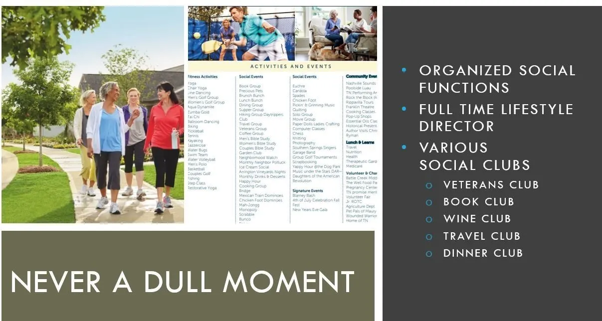 Are you a member of Del Webb Southern Harmony? Our 55+ community elevates living well to new heights. Nestled close to shopping, dining, and medical facilities, Southern Harmony seamlessly combines the tranquility of rural life with the vibrant “feel” of a strong community. Just a 25-minute drive from Nashville, you can invite guests to one of the country’s most sought-after cities. The upcoming Amenity Center will boast indoor and outdoor pools, a fitness center, a ballroom, meeting rooms, a social lawn with an entertainment stage, and much more! Once completed, the community will offer over 20 miles of walkable sidewalks. Ponds with fountains and a stocked fishing bank provide the perfect retreat. Discover why so many are proud to call Del Webb home. Call to arrange a tour.