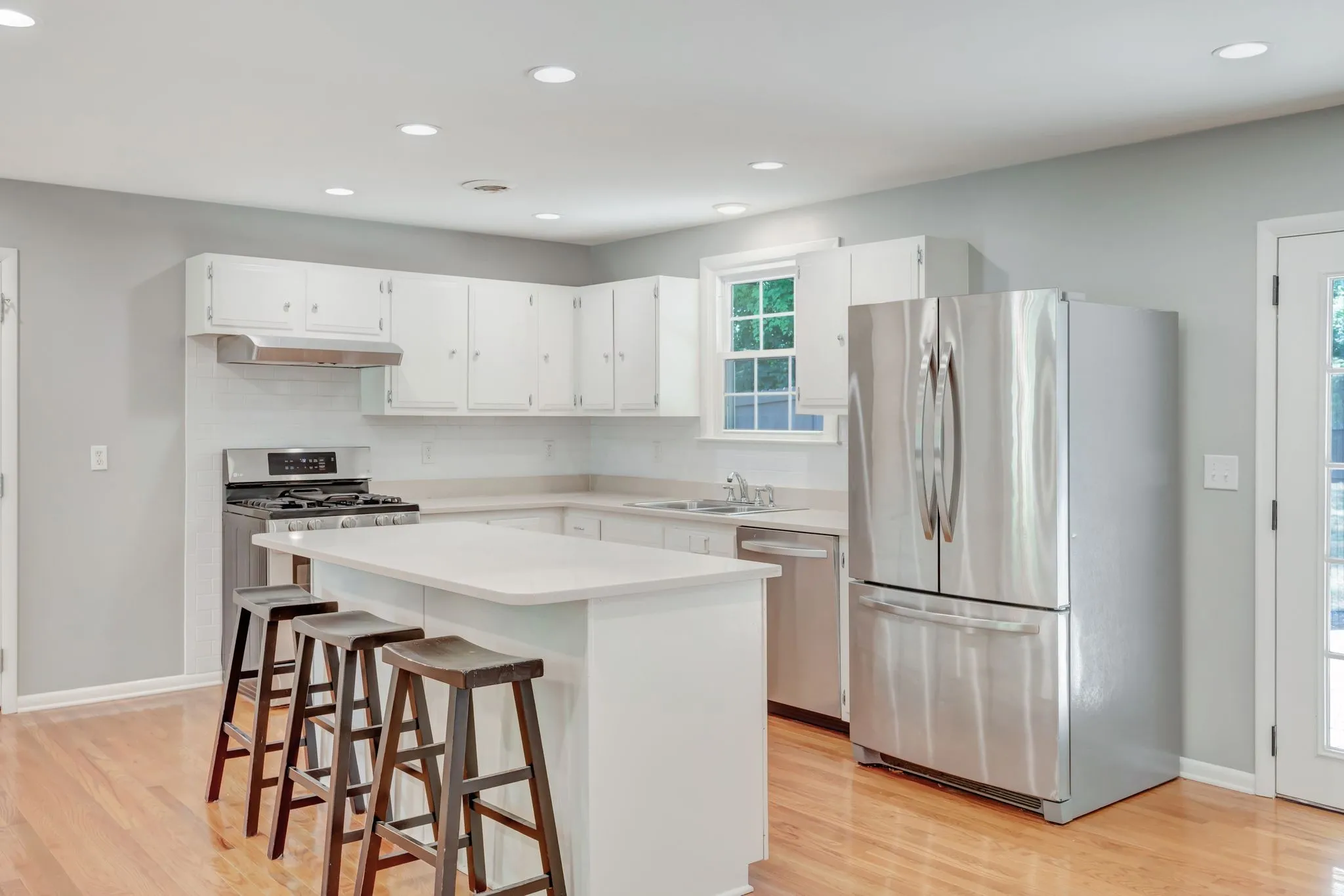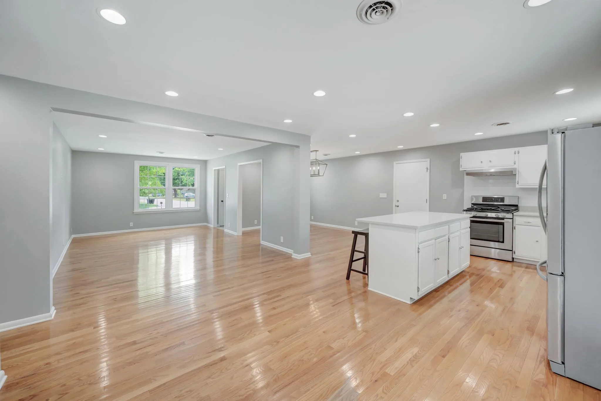 Beautifully renovated ranch. Open concept living, hardwoods throughout main living areas. New paint, marble & quartz countertops, gas stove, new SS appliances, and new energy efficient windows. Private fully fenced in yard with large patio / fire pit area. One car garage with driveway near the dead end street, plenty of parking. Washer and dryer included. Convenient to Downtown Franklin, Jim Warren and Pinkerton Parks, and schools. Renters insurance required, no pets, no smoking, $100 app fee.