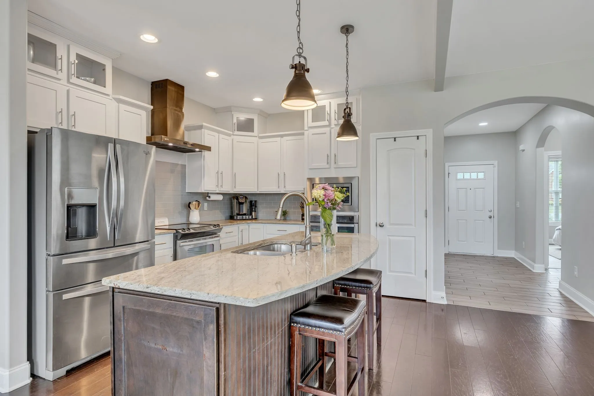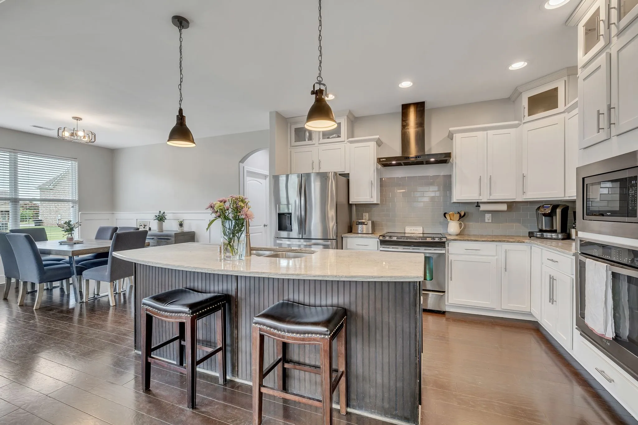 PRICE IMPROVEMENT!! Motivated Seller!!! Move In Ready w/5 BR’s & 3 BA’s open-floor plan w/arched doorways. Kitchen w/new hood, Lg island which seats 4, granite counters, subway tile backsplash & SS appliances to remain which include 2 ovens. Living rm area is designed to accept a built in FP w/chimney already installed. Office could be a 6th BR w/French doors & an adjacent full BA. LG Primary suite w/trey ceiling design. Primary BA w/garden tub, Lg double walkthrough tiled shower, 2 vanity areas & Lg WI CA closet. Off kitchen is 2nd pantry, drop zone & utility area w/washer & dryer to remain. Remodeled BA upstairs w/a farmhouse door, double vanity w/granite top, no fog mirrors, heated towel rack & beautiful tile work. 5th BR upstairs w/a full size Murphy bed w/storage & WIC plus an independent Mini split Heat Pump system. Bonus rm offers a pool table, t/tennis table, gaming machine, 4 media chairs to remain. WI storage area. Home freshly painted.