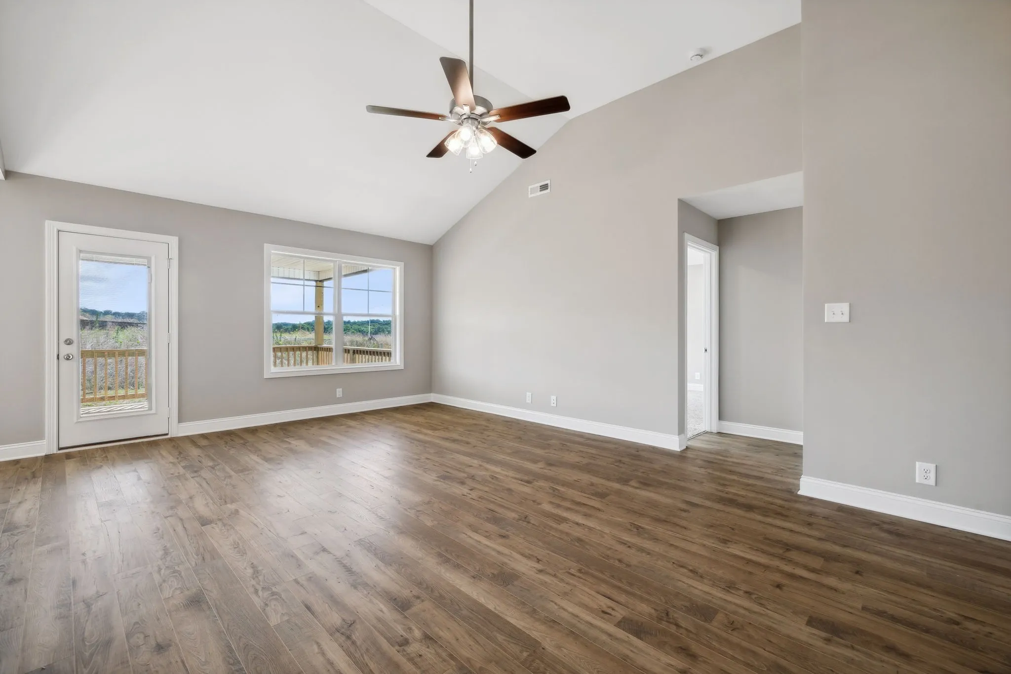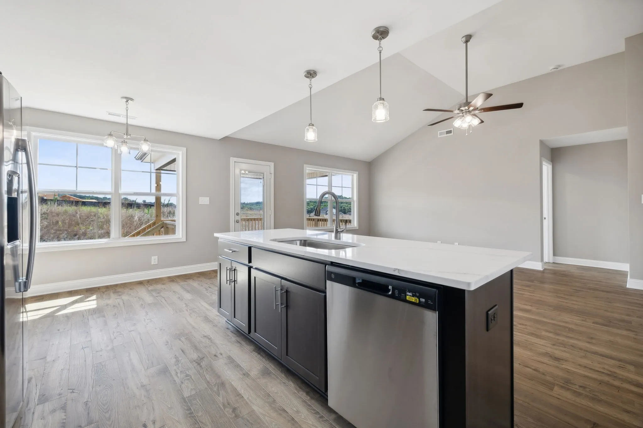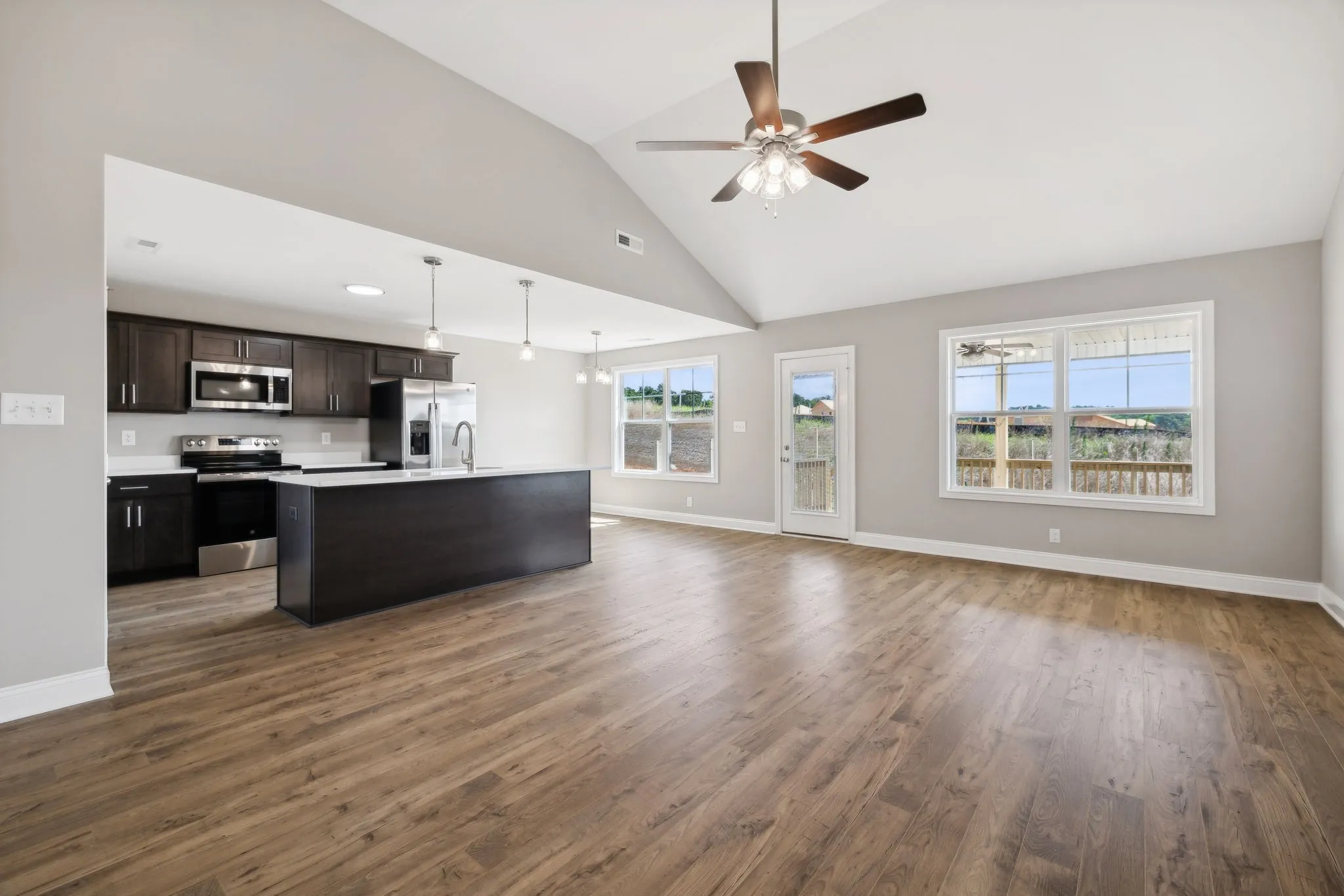 Welcome to this stunning new construction one-level home located in the desirable Cardinal Creek of Clarksville, TN. This 3-bedroom, 2-bathroom Ameila floor plan boasts a spacious open floor plan and is a perfect blend of comfort and style. As you step inside you’ll be greeted by the inviting interior featuring large bedrooms and modern finishes throughout. The kitchen is a chef’s dream with sleek granite countertops, island and pantry. The living areas are adorned with luxurious laminate flooring creating a warm and welcoming ambiance. Primary ensuite features walk in shower, dual vanity, tile flooring & walk in closet. Outside offers a beautifully sodded yard and a covered deck, providing the ideal setting for outdoor gatherings. The 2-car garage provides ample space for parking and storage. Conveniently situated in the Needmore Rd area with easy access to schools, shopping, entertainment & outdoor recreation. Seller is offering a generous $15,000 buyer credit to use anyway you want!