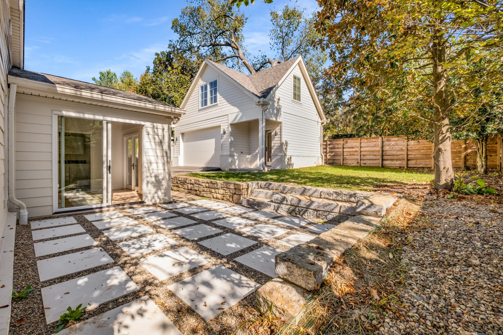 Easy, ‘loft-style’ living in this one-story home: skylit interiors, volume ceilings, finished wood floors. Sought-after Historic Whitland/West End Neighborhood with tree-shaded sidewalks and convenient to Elmington Park. Primary plus two bedrooms in the main structure with a new garage and studio with a full bath above, hardwood floors, and great views. New patio and small private garden spot in back. Second level sq . ft. is finished guest suite/studio above garage. Owner/agent.