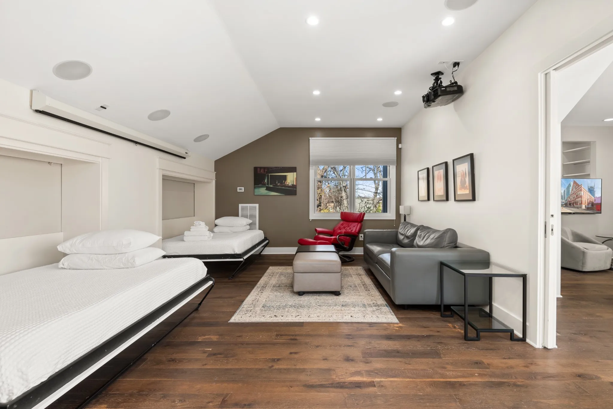 Welcome to where the possibilities of historic charm meets modern luxury in the heart of Nashville’s vibrant Germantown! This gem, one of Germantown’s few freestanding single family homes, having been totally overhauled by the current owner, showcases timeless elegance on the exterior and contemporary comforts on the interior. The split level living areas are fun and inviting, complemented by high ceilings and hardwood floors. The living space upstairs can function as an extra sleeping space with double Queen Murphy beds. Enjoy the chef’s kitchen which feature a hibachi grill on the island, among a set of premium appliances with sleek finishes, including a pair of dishwashers. Among the home’s showstopping features are multiple outdoor spaces, including a rooftop terrace, deck, and covered dining area. Experience the best of urban living with nearby shops, restaurants, and parks. Your historic dream home awaits! Qualified for NOO-STR.