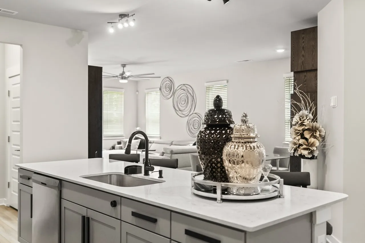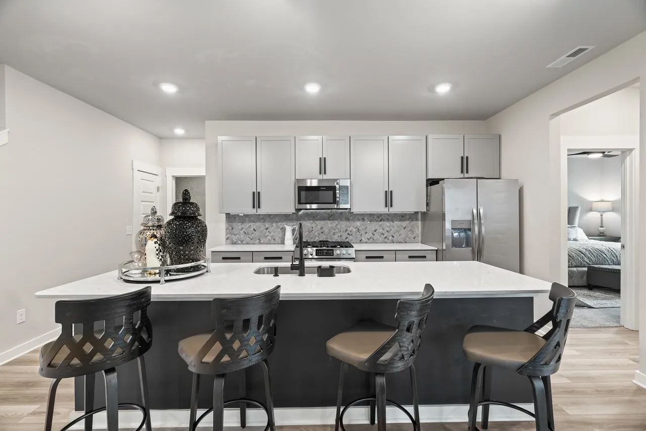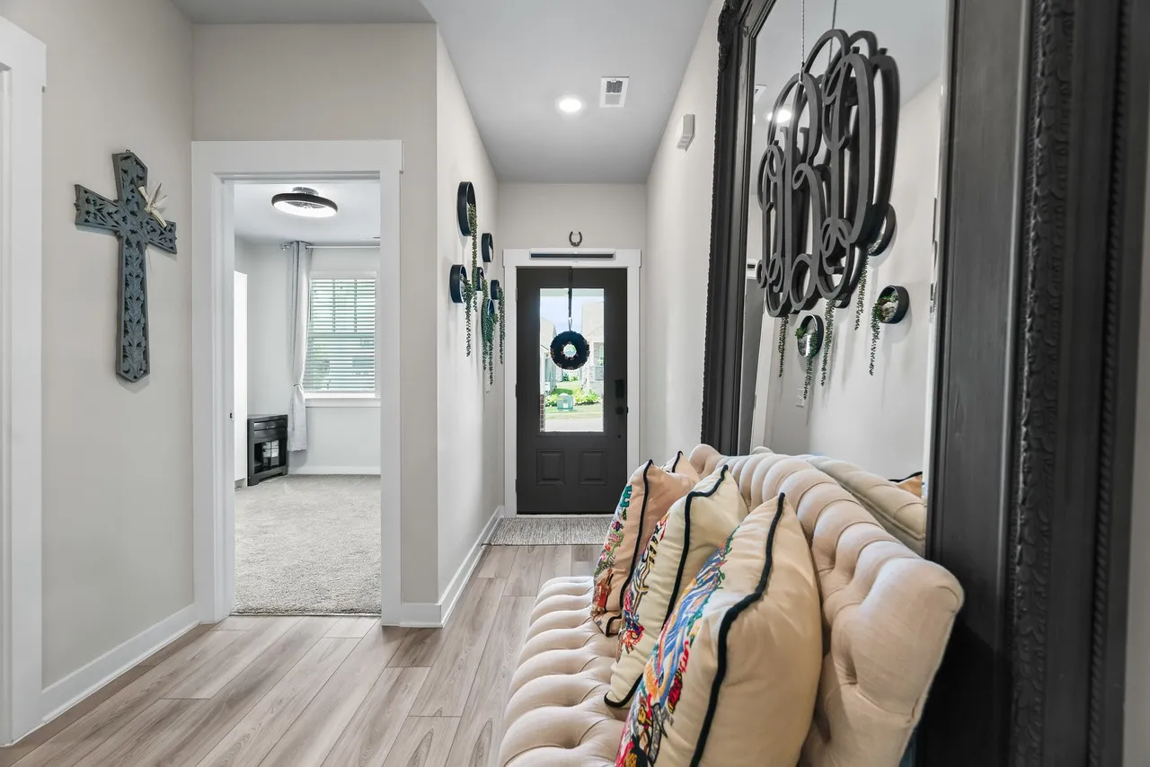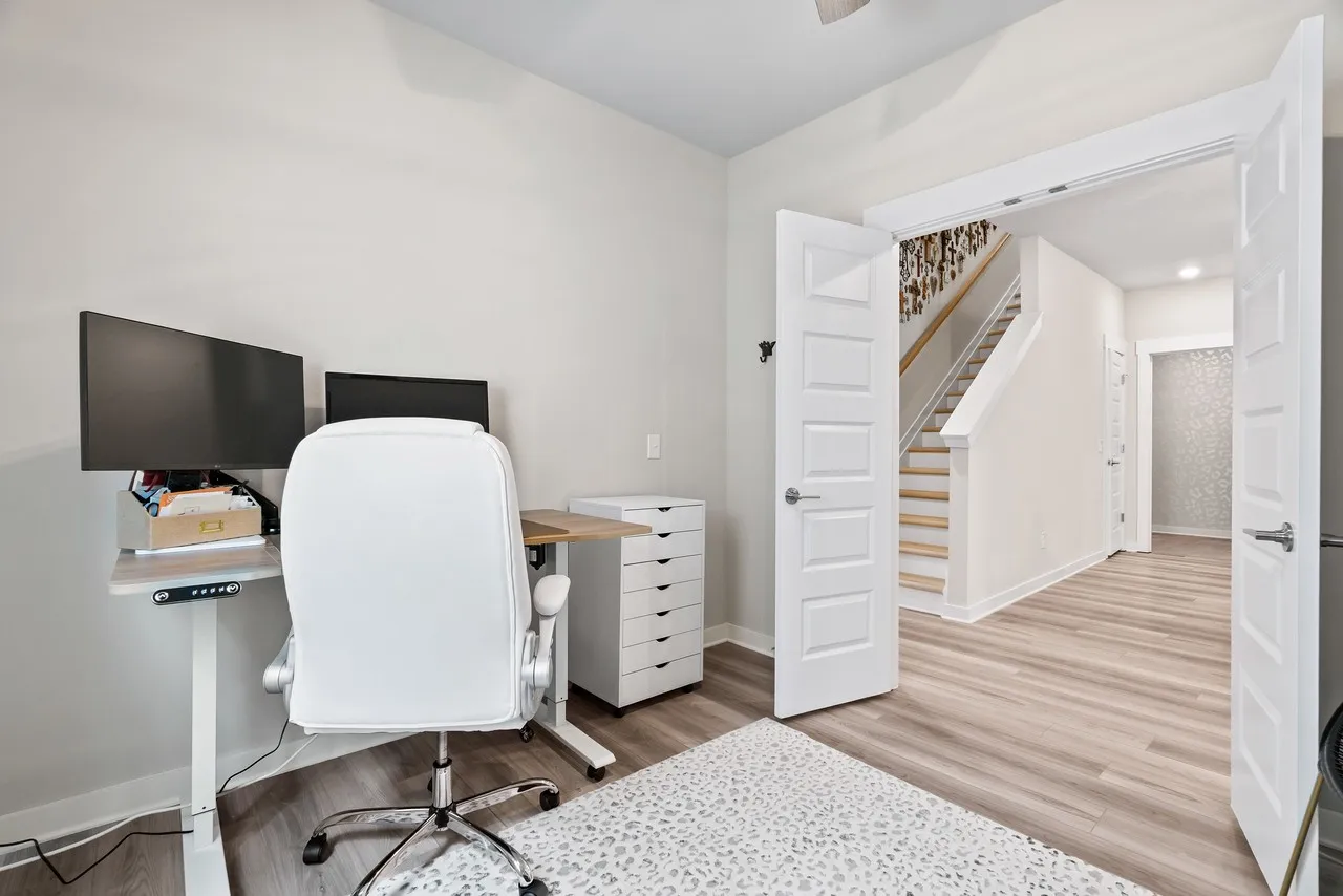 This home is absolutely stunning with added touches in every room!! Large kitchen Island with quartz countertops, tile backsplash and even a glass rinser!! Wonderful, large pantry and an additional pantry under the stairs. Very expansive laundry room with tile flooring. 2 bedrooms downstairs with the primary having a large closet and ensuite bathroom with a tile walk-in shower. The secondary bedroom has a king Murphy bed that will remain. Working from home? Fabulous office with French doors is just perfect for you! And that’s not all, upstairs has a nice size bonus/bedroom/office/hang room (whatever you’d like to make it) with a half bath and a nice size closet not to mention a walk in attic storage area. The best news, you have all the amenities to enjoy in Durham Farms while someone else takes care of all the lawn maintenance! Come tour this beautiful home!
