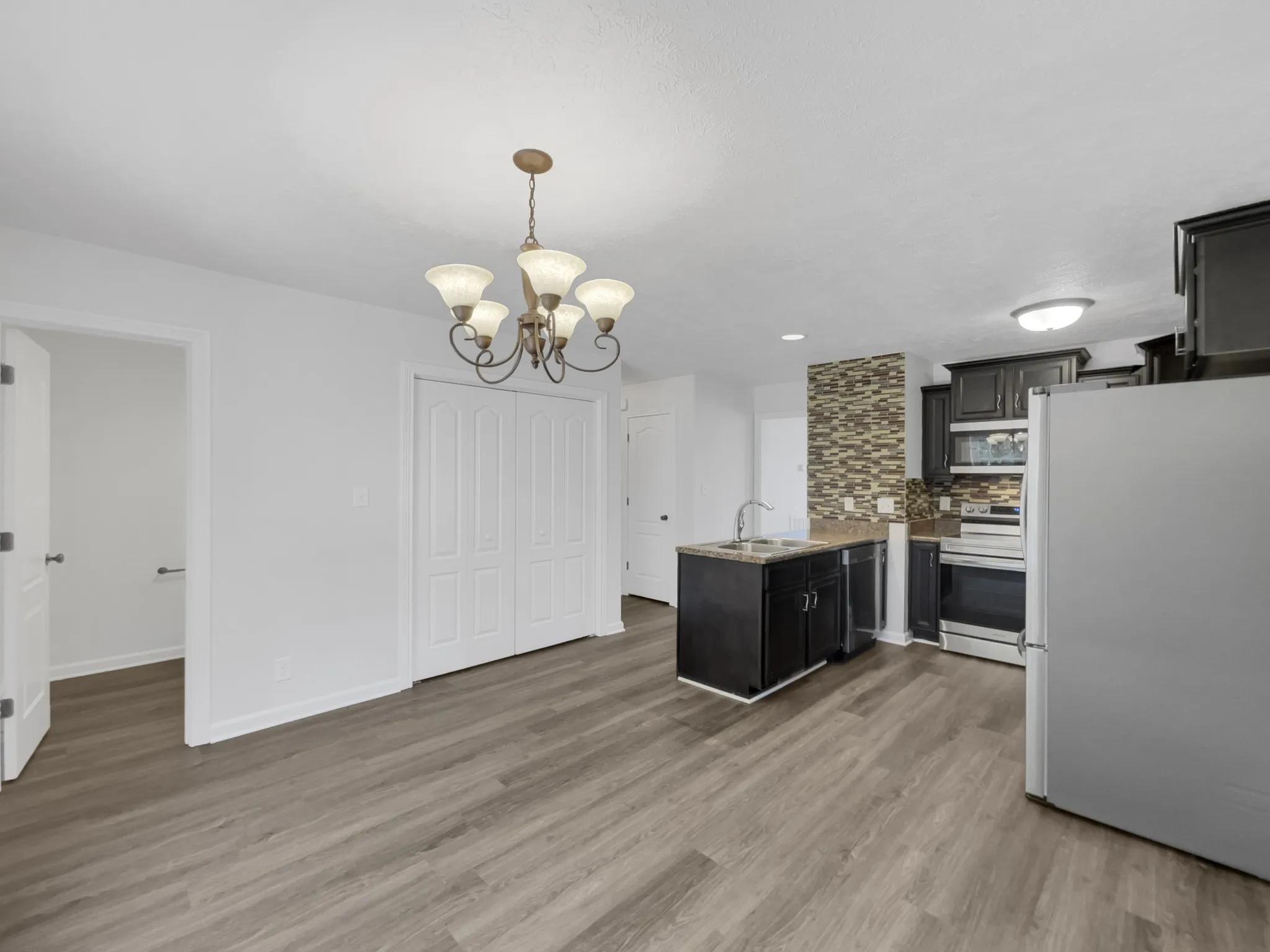 Step into this beautifully updated home, As you enter, you’re greeted by a welcoming neutral color palette that adds charm and elegance. the kitchen, a stunning accent backsplash adds a touch of glamour to your culinary space. Enjoy the convenience of a complete set of stainless steel appliances, which bring a sleek, modern feel to the kitchen. The primary bathroom offers ample space with double sinks, ensuring ease and comfort during morning routines. A well-planned exterior expands your living area with a deck, ideal for weekend barbecues or relaxing afternoons. The fenced-in backyard provides privacy and a secure space to create your oasis. Freshly painted interiors throughout the home give it a like-new appearance. New flooring adds a cohesive, contemporary appeal that complements any décor style.This home has been virtually staged to illustrate its potential. Seller may consider buyer concessions if made in an offer.