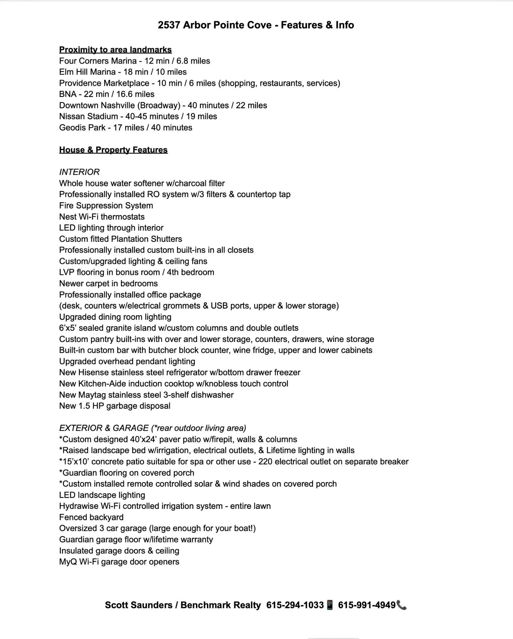 Beautiful “forever” home overflowing with custom upgrades & outdoor living oasis in a secluded neighborhood near Percy Priest lake! Open living, chef’s kitchen, plush main floor bedroom & bath retreat w/walk-in closet, PRIVATE BONUS/4TH BEDROOM with ½ bath & closet, 3 car garage. House & grounds elevated to luxury level living with over $120k in improvements. INTERIOR: huge granite island, upgraded appliances, giant walk-in pantry & wine storage; RO water filter system/whole house water softener, butcher block bar/wine fridge; upgraded LED lighting, custom built-ins in ALL closets, LVP flooring, wood plantation shutters; board & batten, beadboard & tile accents; office max’d out w/storage, desk & counter space, electric & USB ports; NEST Wifi thermostats. EXTERIOR: $35k lighted & landscaped open patio design; remote controlled covered patio shades, insulated garage doors w/Wifi, Guardian garage floor; Wifi Hydrawise irrigation. SEE ATTACHED DETAILED FEATURE SHEET & LINK OR REQUEST IT!