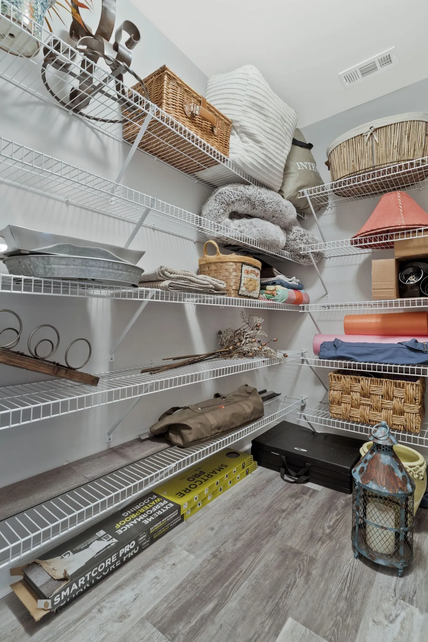 Interior Features Walk-In Closet(s), Primary Bedroom Main Floor, High Ceilings, Pantry, Smart Thermostat, Storage, Ceiling Fan(s), Extra Closets, Entry Foyer, Water Filter