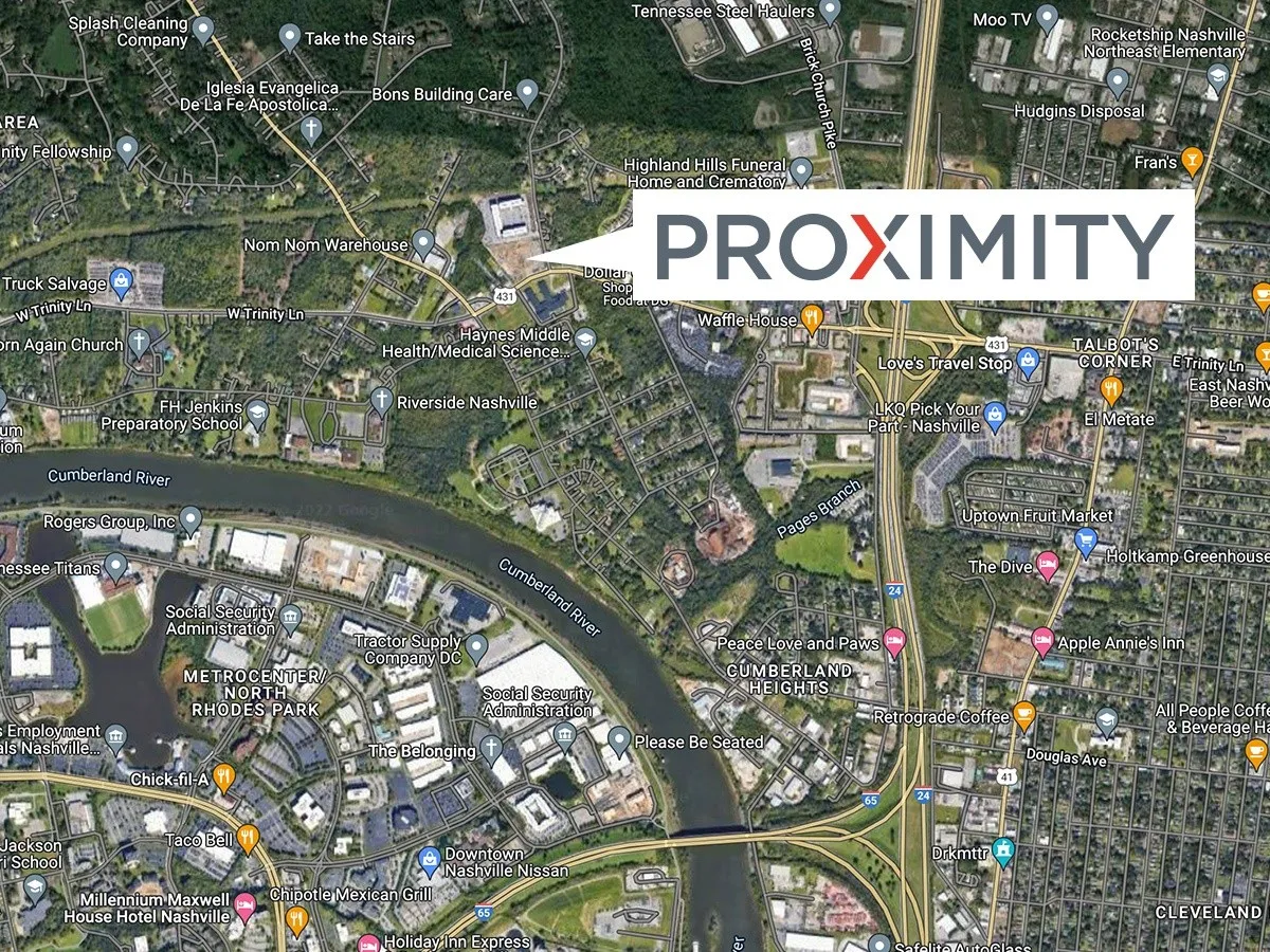 - Directions: From I-65 N to US-431 N/W Trinity Ln. Take exit 87 from I-65 N--Follow US-431 N/W Trinity Ln to Old Matthews Rd on the Right. Proximity Townhomes on the corner of Old Matthews Rd and West Trinity Ln.