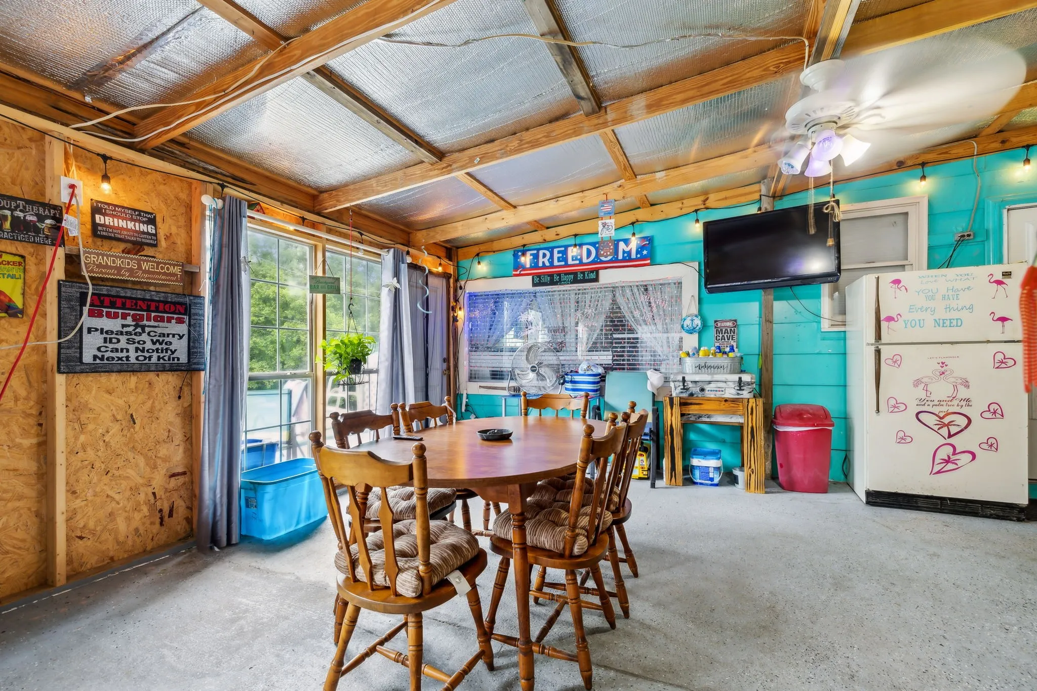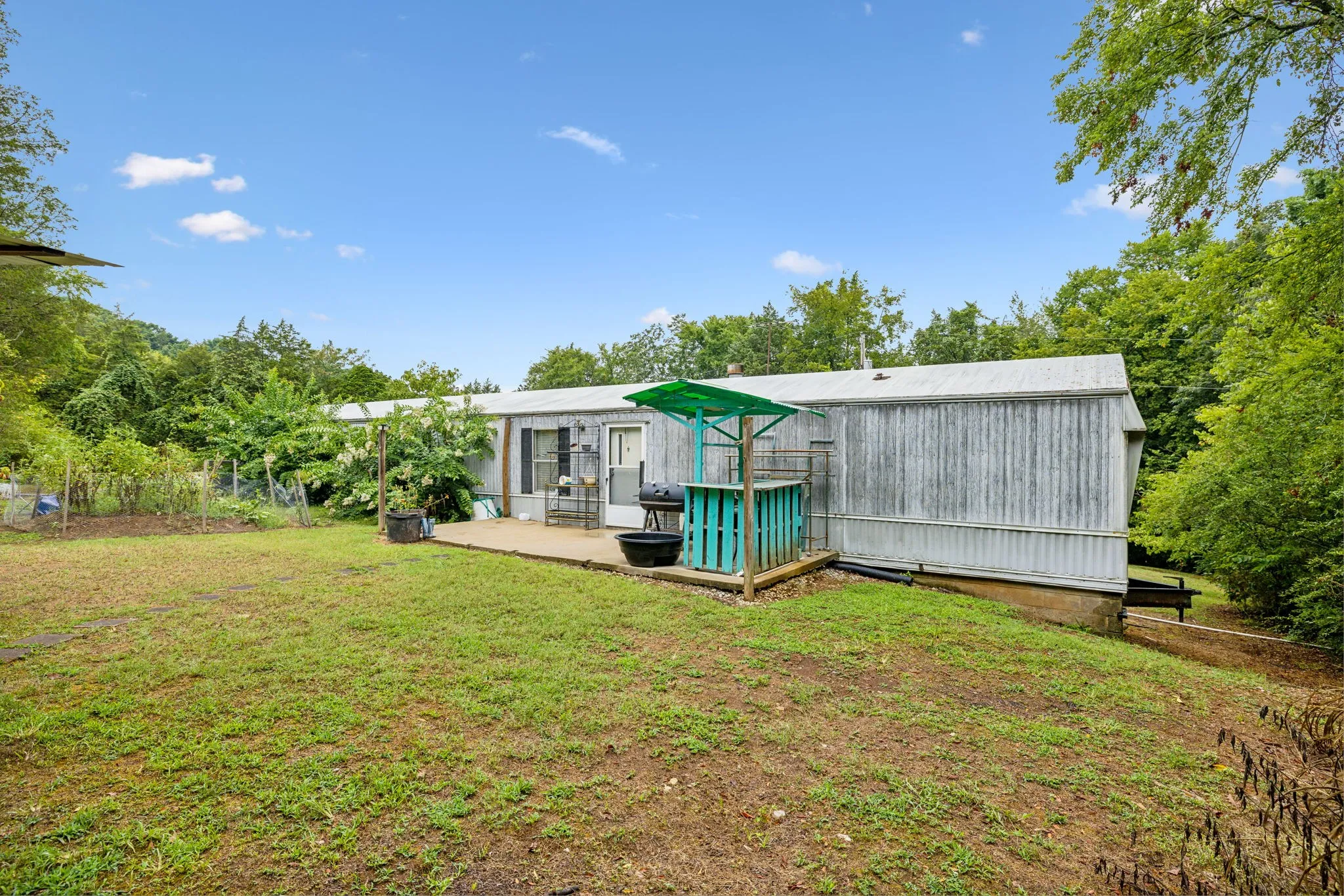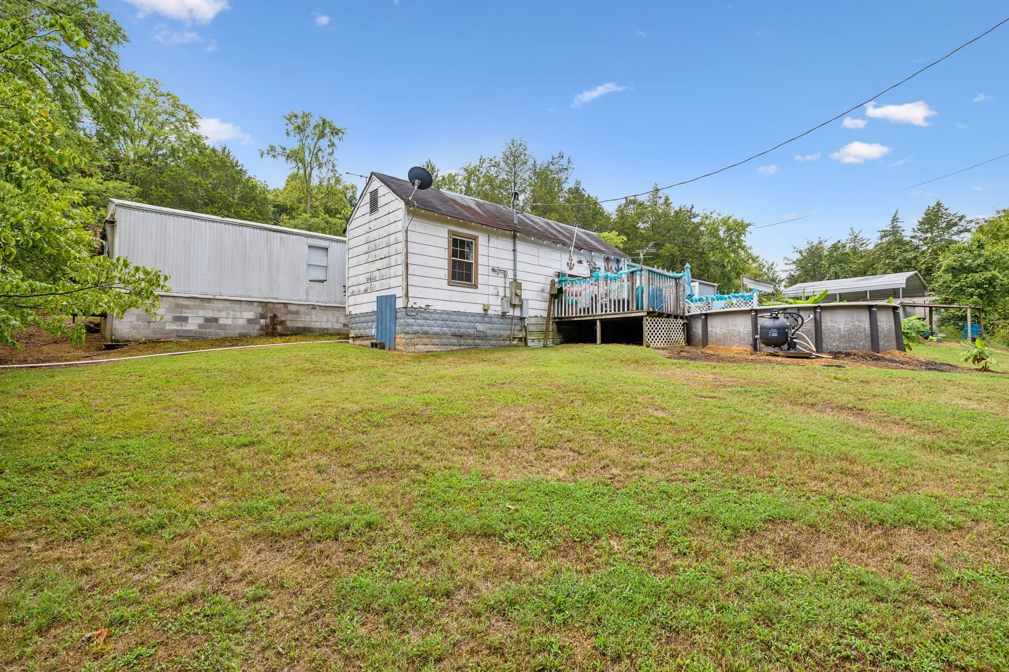 One-of-a-kind escape to your own private compound/oasis! Nestled smack dab in the middle of 9.5 mostly-wooded acres rests 1764 square feet of fun-in-the-sun with your own pool and pool room. Built in 1900, this unique property has been expanded to include a manufactured home (1 bedroom, 3 flex rooms and 2.5 baths). Site-built, turn-of-the-century original home includes a cozy bedroom next to a half bath, which opens back into a family/rec room with hardwood flooring & a woodburning stove. Up short steps to a large open kitchen and huge breakfast room with fireplace, wind back to flex room #1 and #2 separated by a full bath. Utility room off the kitchen and primary flex suite #3 with full bath sits privately at opposite side of the house. Separate secure shop with power, 2-car carport and a garden shed convey. Super convenient to the bypass.