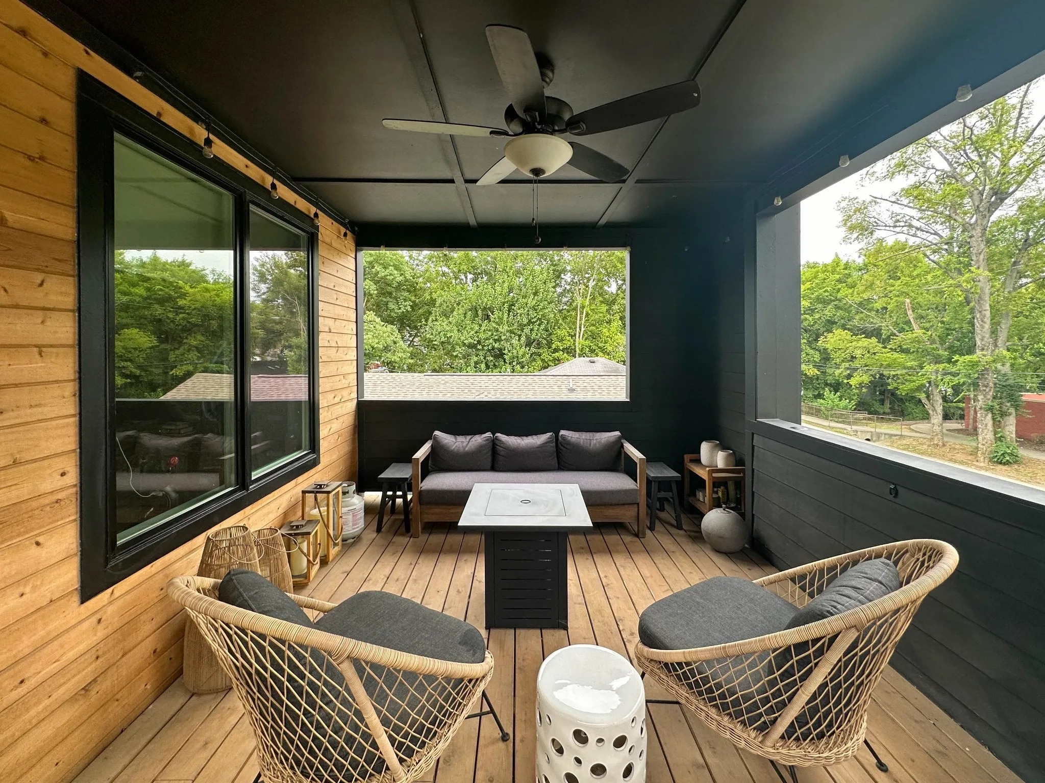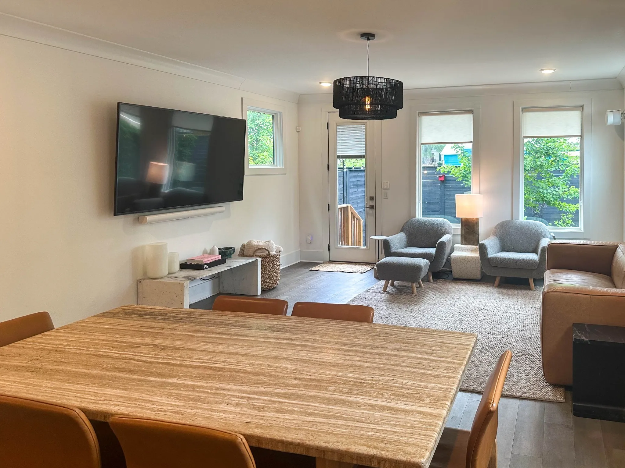 Welcome to 217 Eastmoreland St: 4 beds (2 owner suites), 3 baths, 2205 SqFt, high ceilings, huge second-floor covered deck, natural light in Cleveland Park. 5 mins from Downtown, Nissan Stadium, Oracle HQ, Top Golf. Outside, enjoy a private patio, covered deck with privacy shades, 8-foot privacy fenced yard w/ artificial maintenance-free pet-proof artificial synthetic turf, ring alarm system with smart doorbells. Quartz countertops, HW floors, recessed lighting, main floor guest room, tankless water heater, gas stove, built-in shelving, crown moldings, keyless entry, custom shades, and a chef’s dream kitchen. Short-term rental Opportunity! Live for free by purchasing Unit A- rented at $4,000/month until Dec. Negotiable designer furniture. STR permit; rents for $595/night. Close to downtown and Nashville attractions.