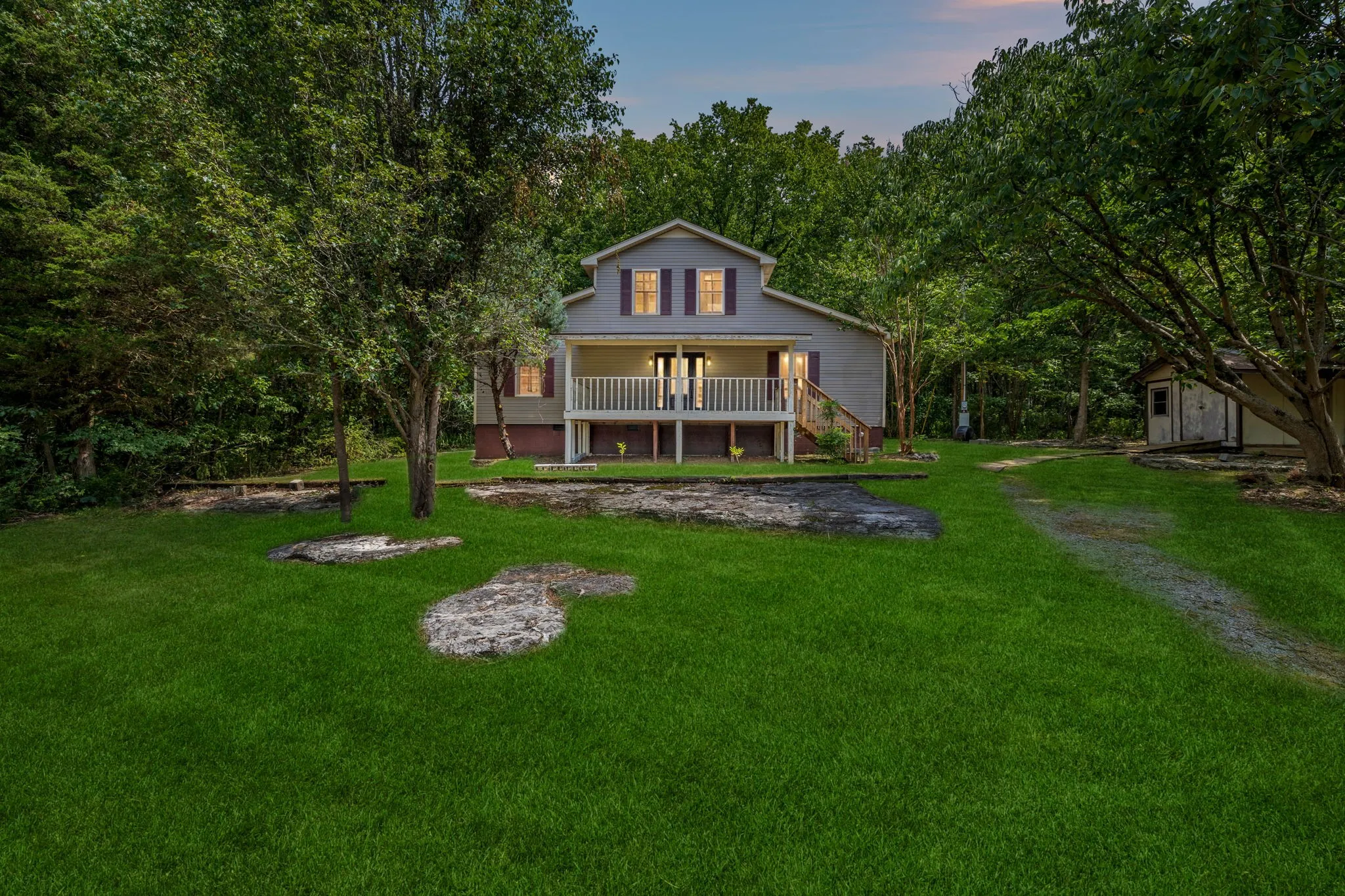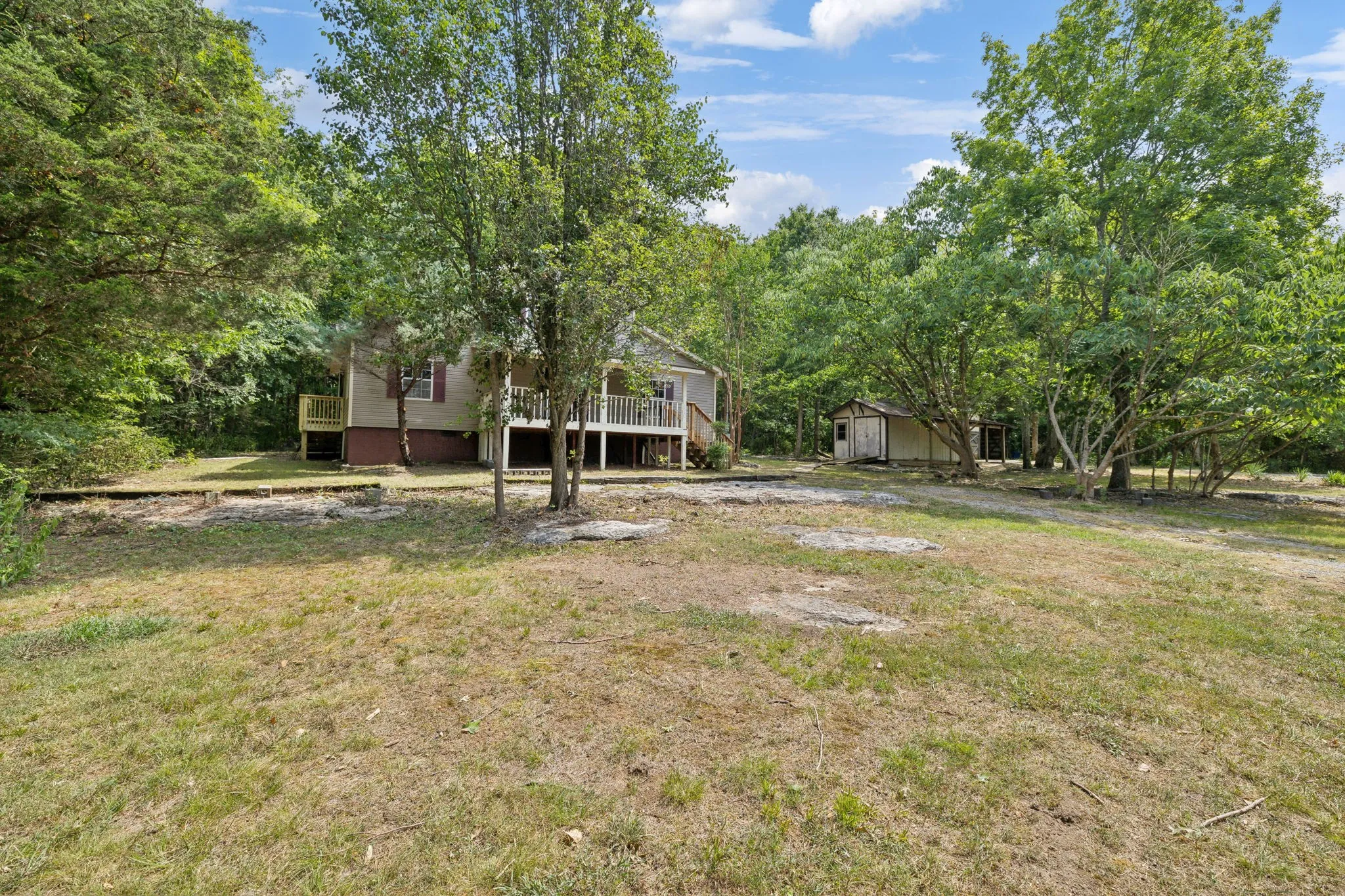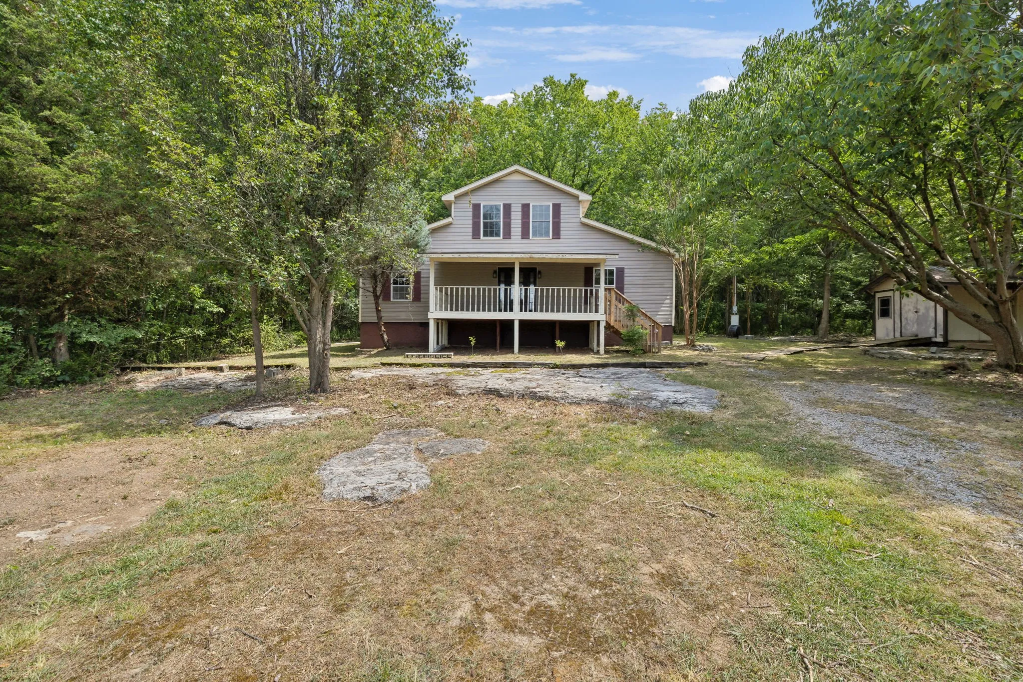 PUBLIC AUCTION on Aug 10 @ 10:00am – Don’t miss this incredible opportunity to own a beautifully relocated 2,100± sq ft home nestled on a picturesque 6.7± acre wooded tract. This charming property boasts 3 bedrooms, 2.5 baths, on a 2-bedroom septic system, ensuring comfort and convenience. Features include: • Spacious living areas with modern finishes • Large barn with loft for extra storage or hobby space • Additional storage building for all your needs • Scenic trails perfect for outdoor enthusiasts • Adjacent to Barfield Park for endless recreational activities • Easy access to I-24 for convenient commuting Whether you are looking for a short term rental, hosting events, private getaway, or your next home, this unique property combines tranquility and accessibility, making it the perfect retreat. Join us at the auction and seize this rare chance to own a piece of paradise!