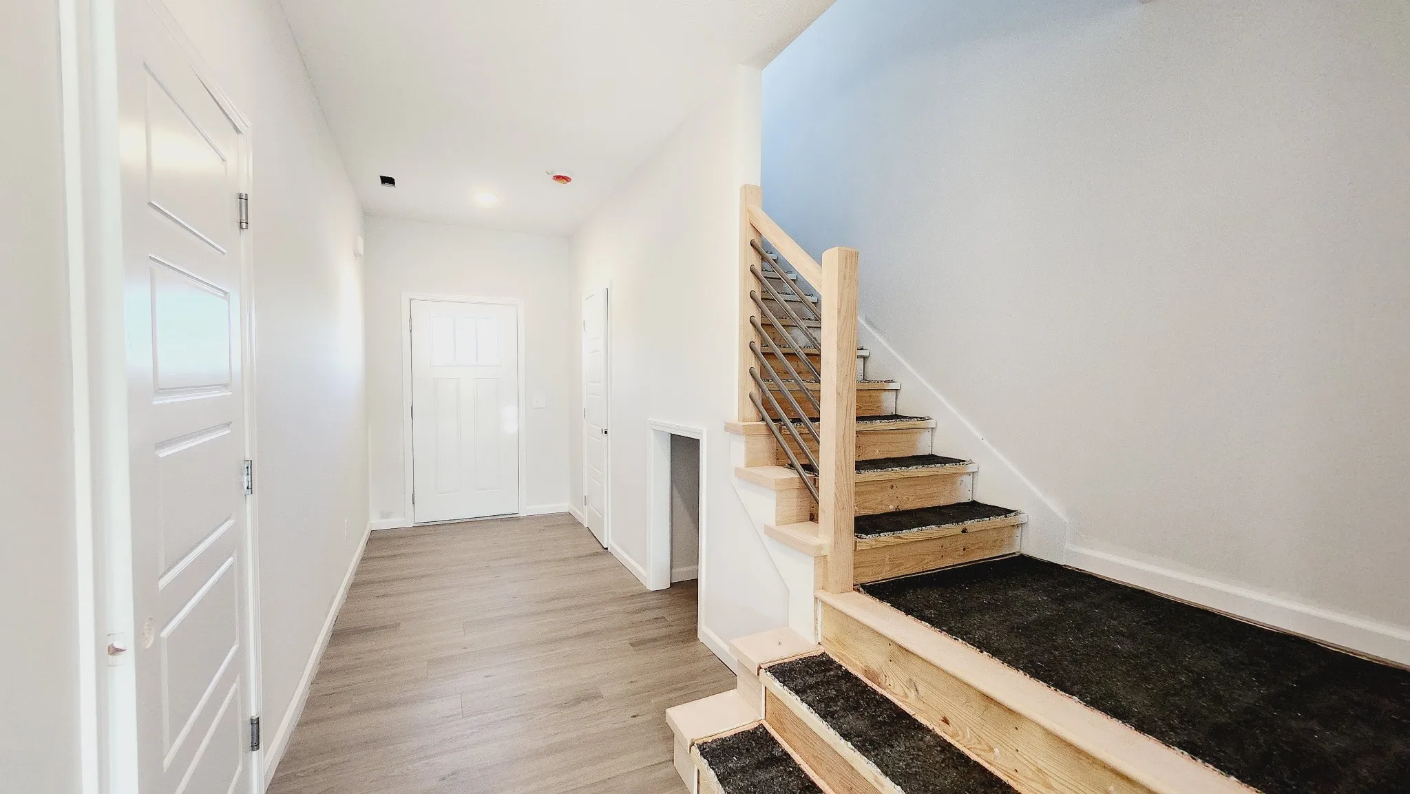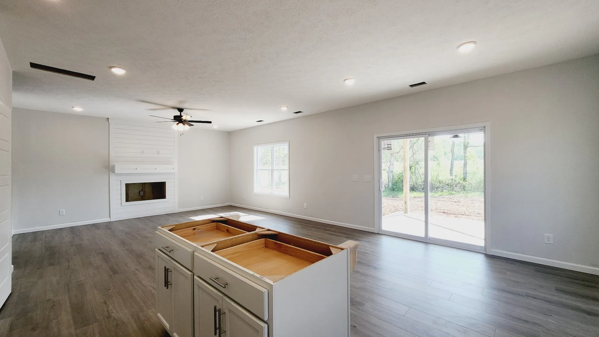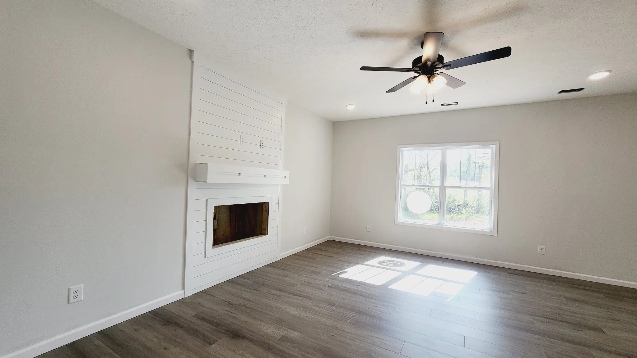 Que selfie with the caption “New crib, who dis?” Explore the sought-after open-concept floor plan that presents a shiplap LED fireplace as the centerpiece, seamlessly blending the kitchen and living room space into a cozy fusion. The open-island kitchen boasts granite countertops, a stylish backsplash, and sleek stainless steel appliances, creating the perfect setting for entertaining. Sperate from your common space, the bedrooms are located upstairs. On the upper floor, three bedrooms are conveniently located around the dedicated laundry space, making chores a walk in the park! The private primary retreat features a walk-in dressing room and a spacious full bathroom with a beautifully tiled shower, offering a tranquil space to unwind. Enjoy your backyard-covered space! With its ideal location in the Sango area, near schools, bustling shopping centers, and swift access to the interstate, this home offers easy access and convenience for your daily commute to Nashville or Ft Campbell.