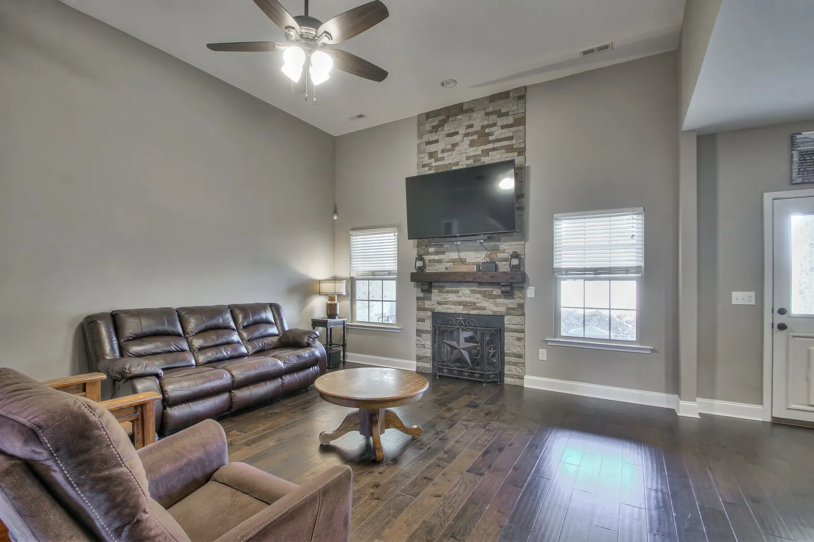 Awesome location close to I-24, shopping, etc. All Brick home featuring granite counter tops, Floor to Ceiling stone fireplace, covered back patio, a privacy fence and more! All bedrooms are on the main level, with an open floor plan. Large Bonus / rec room over the garage.