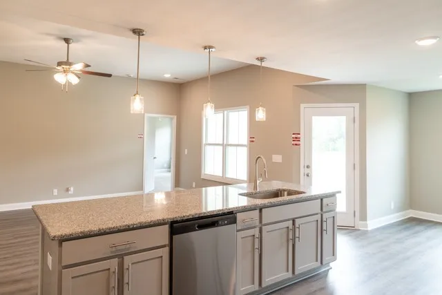 1 level ranch with 3 bedrooms. 9 Ft. ceilings in the main living area. Large Kitchen island overlooks the great room Covered deck. Split bedroom layout. Master suite w/ walk in closet and tiled shower. This is the roxy copyrighted floor plan of Hawkins Homes. Seller is paying up to $15,000 towards buyer closing costs! Pics/Videos are of previous build – colors, upgrades, features, etc may vary!