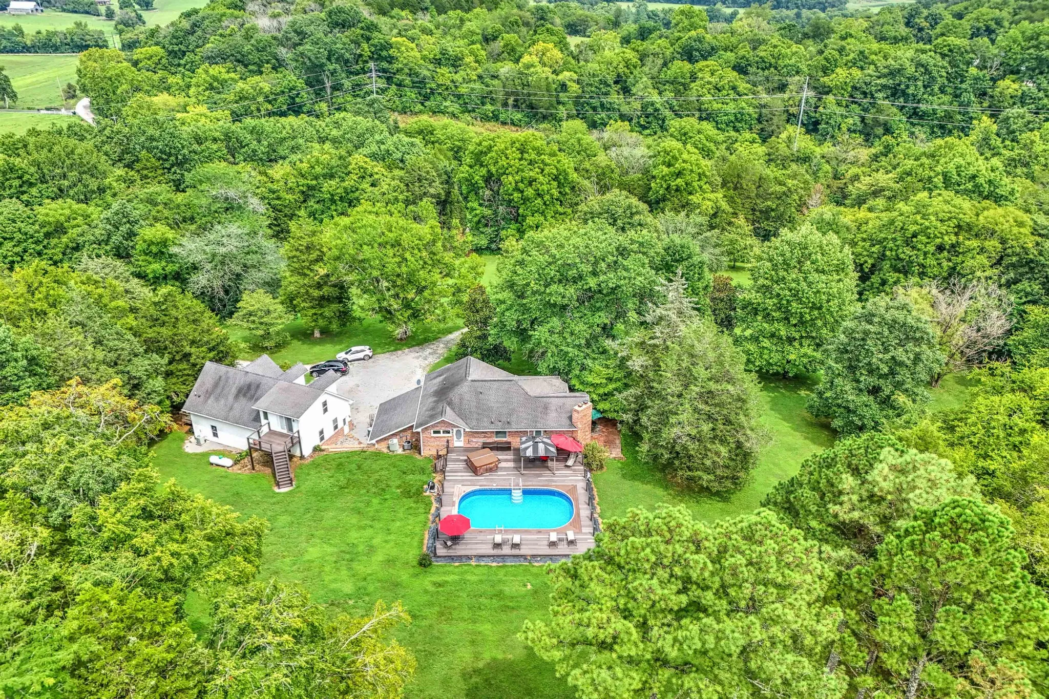 +"PublicRemarks": "If you are an agent, please do not contact. Still under active contract with agent. In-law apartment / home office space - This 12-acre home features hardwood floors & stainless steel appliances, 2 pantries, 22’x16’ utility room, 2 wood burning fireplaces, media room wired for surround sound, spacious primary w/door that opens to pool area & primary bath w/lg walk-in shower, tub, marble counters & travertine floors. Detached 1057 sf apartment (currently used as office space - sf included in total sq ft) w/loft bedroom, large liv room, full bath, kitchenette & extra large attic space. Backyard w/oval pool, lg composite bamboo deck, 10’x10’ gazebo, & 7 person hot-tub - perfect for entertaining. Large front porch, stamped concrete walks, 16'x24' storage bldg & lg fenced garden w/water. Tankless water heater. Renovations 2009 & 2020. Creek w/bridge, beautiful landscaping, 7 usable acres - some used as a lavender farm. Very peaceful & private location. 1 year home warranty being offered!"