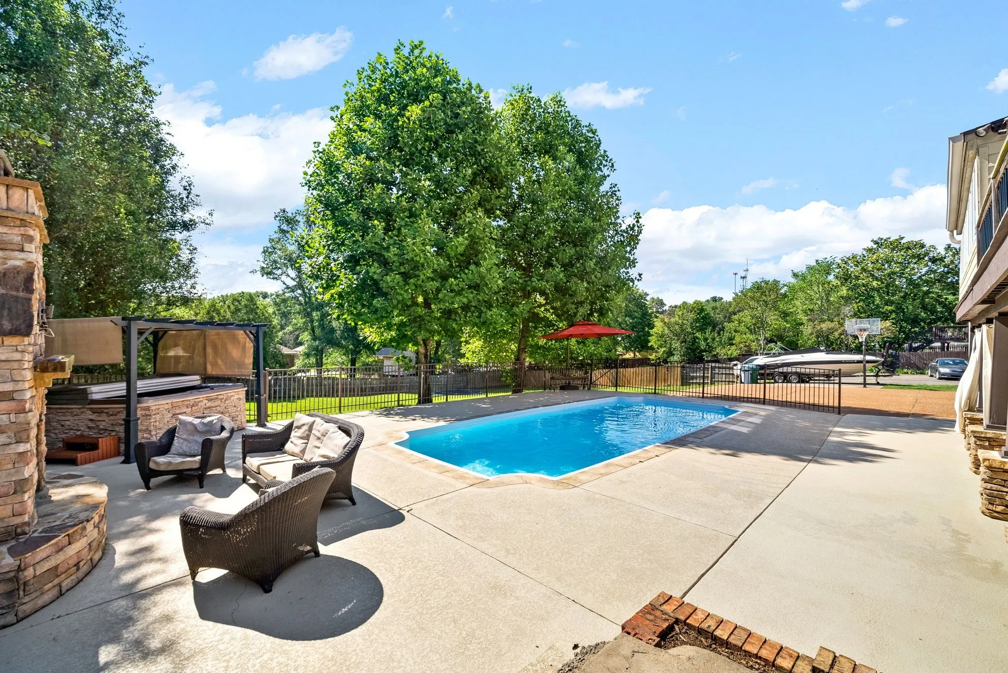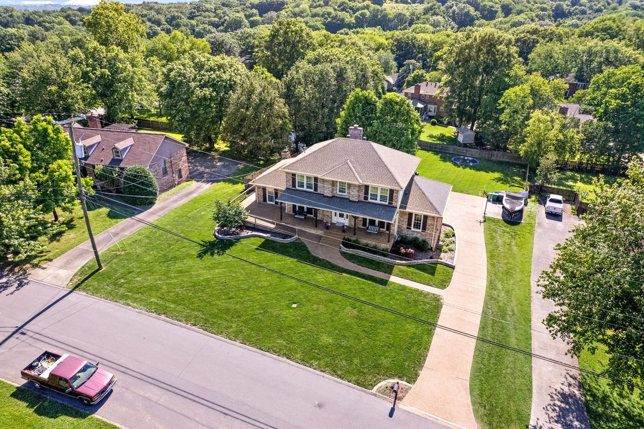 Welcome home to this absolutely stunning all brick home in one of the most highly desirable areas in Hendersonville! Entertain your guests in your very own private oasis as this property boasts a beautiful fiber glass heated in-ground pool that is fenced with a detached fire place that is wired for a TV, a hot tub lounge area, a covered patio for relaxing, and a in-ground trampoline all on a large fenced in park like back yard! This luxury 4 bed 2 and 2 half bath home boasts finished hardwood floors, a heated/cooled florida room, formal dining, den that could be used as an office, master suite on main level, jr suite upstairs with its own bathroom, granite counters, plenty of cabinet space, kitchen island, oversized eat-in area, huge finished basement that could be used as 5th bedroom, over sized 2 car garage, wrap around deck, and more!! The roof is new and the house has a tankless water heater! Schedule your showing today and lets get a deal done!!