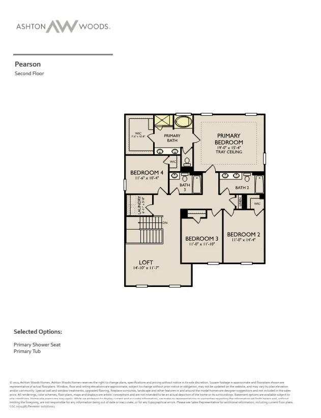 $10K towards closing costs/rate buydown through our participating lender! No other promotions or incentives apply. The Pearson features a study with glass French doors off the foyer, a gourmet kitchen adjacent to the breakfast area, and a versatile loft on the second floor. The kitchen flows seamlessly into the living room, and features a quartz-topped island, pendant lights, large walk-in pantry, double-wall oven, and 42″ upper cabinets. Located off the living room, a guest bedroom and a full bathroom. A rear covered patio offers additional space for dining outdoors. Four bedrooms are located on the second floor, including the primary suite with a spa-like bathroom, with a tiled walk-in shower with bench seat, soaking tub, dual vanity, and oversized walk-in closet. The laundry room is conveniently located near the secondary bedrooms. This home is complete with a three-car garage.