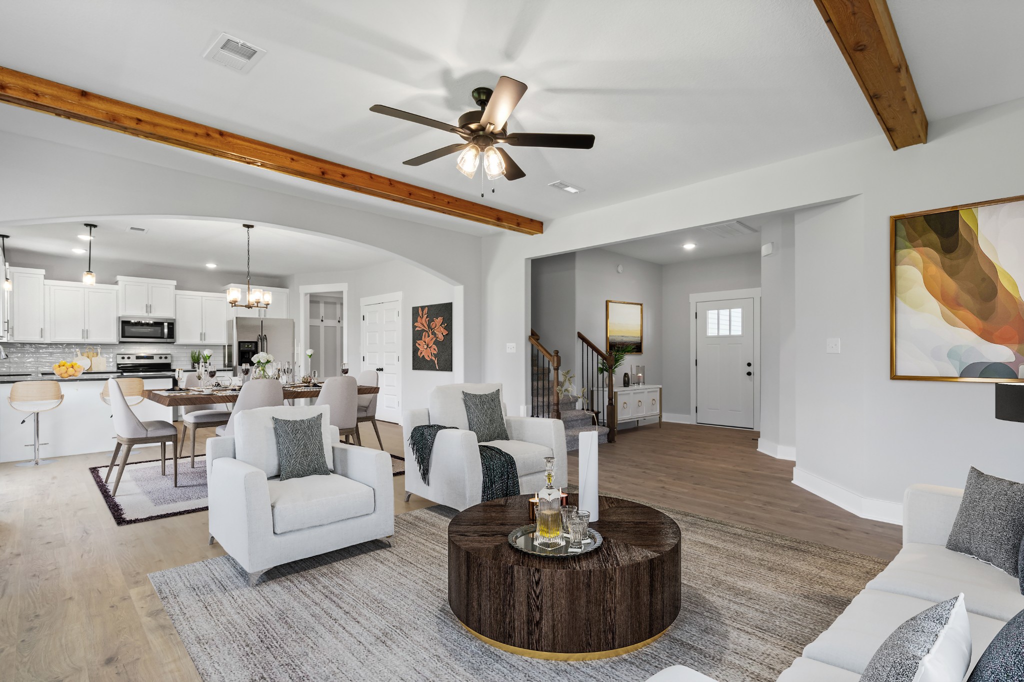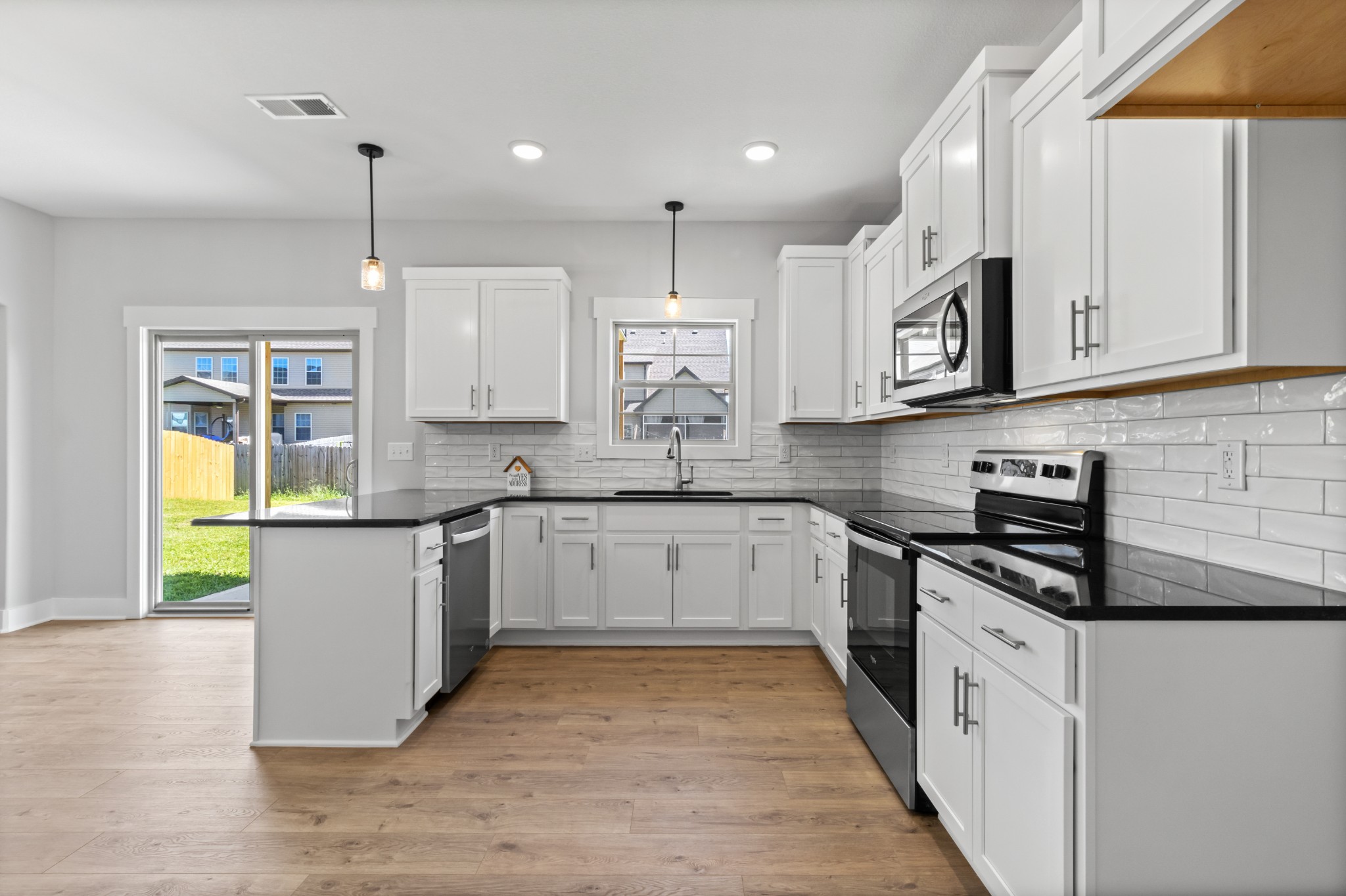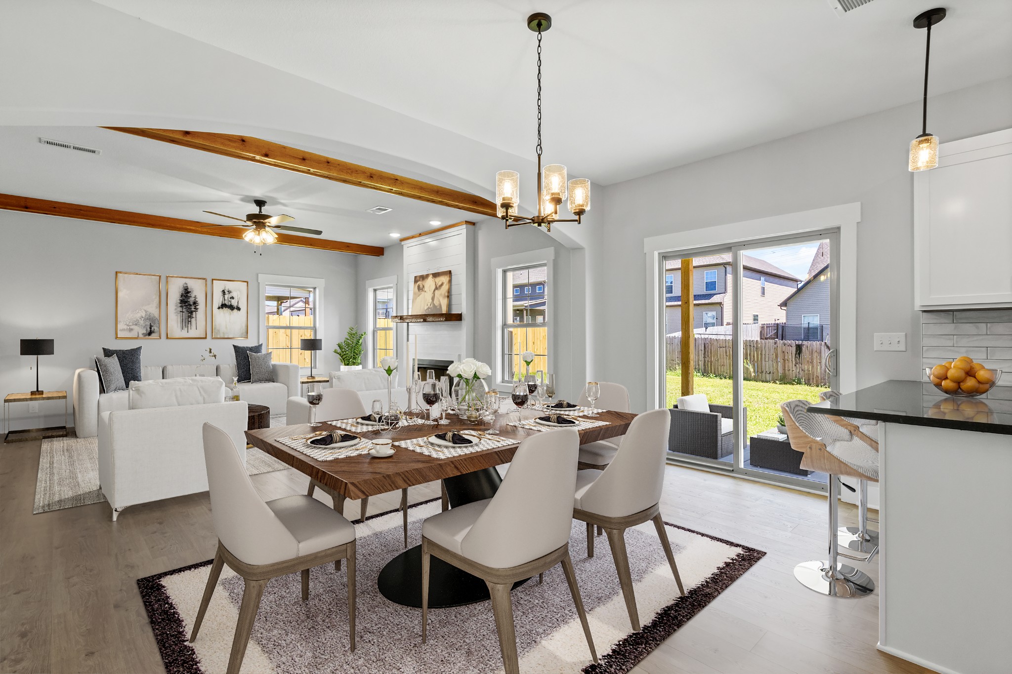 Private Backyard! The view out of the windows on the back of the home are such a bonus for city living! Approx a 5-minute walk to Oakland Elementary School, Fabulous Open Floor Plan! Level 2 dedicated EV (Electric Vehicle) plug in the Garage, Large Entry Foyer with Coat Closet, Hardwood on the main floor, Fireplace with Ship Lap and Cedar Mantel, Cedar Faux Beams in the Great Room, Flat Trim, Kitchen with Pantry, Lots of Cabinets, Granite Countertops in the Kitchen an Bathrooms, Stainless Steel Appliances, Drop Zone coming in from the Garage, Tray Ceiling in the Primary Bedroom, Large Primary Bathroom with Vaulted Ceiling, Tiled Shower with seat, Double Vanities and Large Linen Closet, Take note of the large Bedroom sizes, Covered Front Porch and Covered Back Patio.