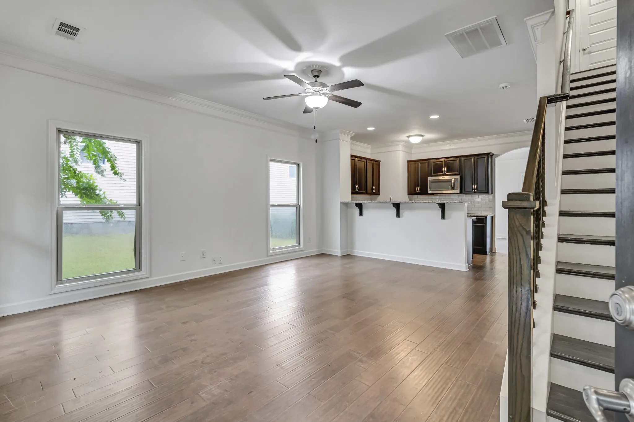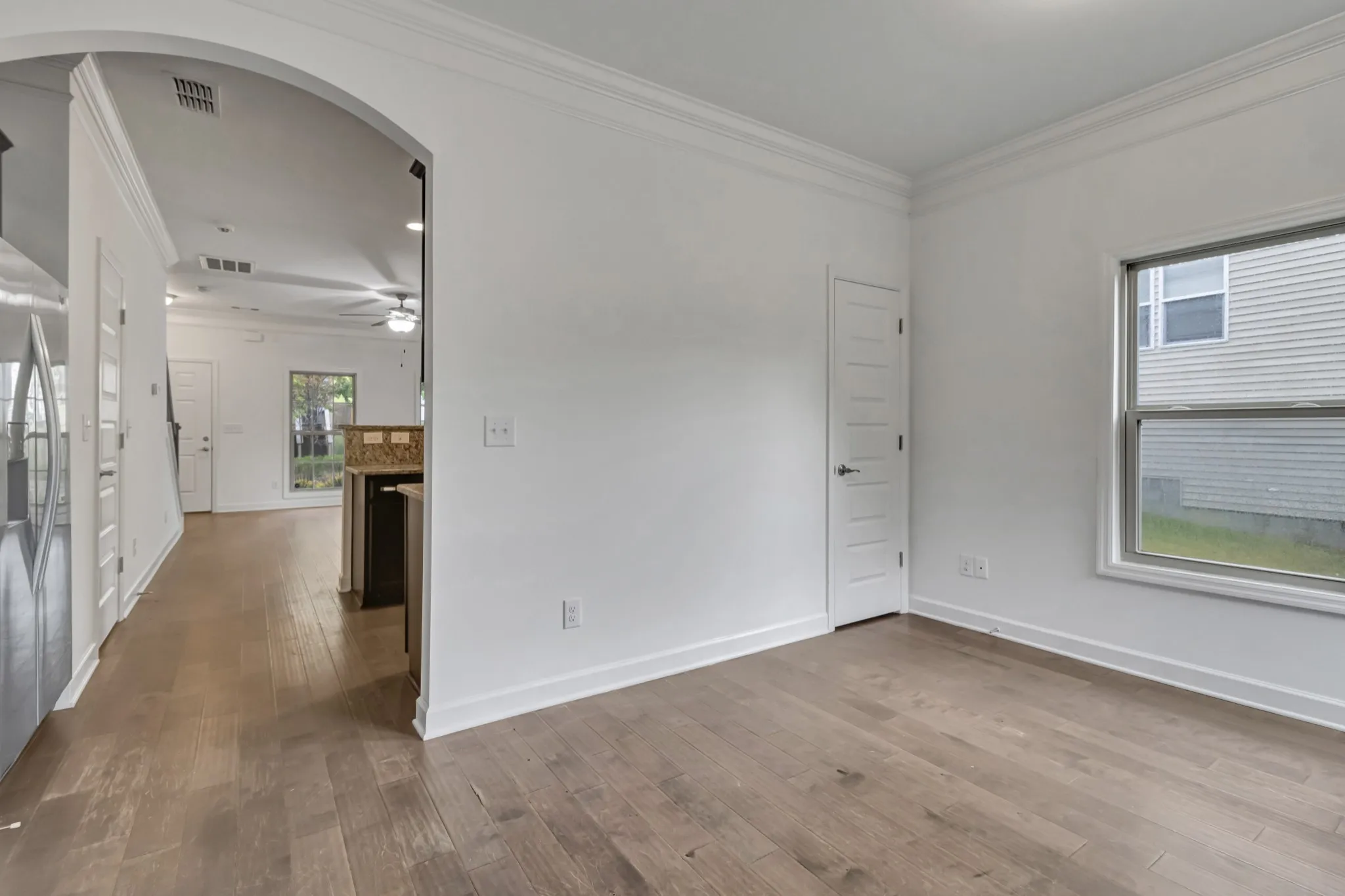 Calling all investors and first time home buyers! Premier townhome on an extra-large corner lot with a spacious side yard and back deck, plus two-car parking. This townhome features 2 bedrooms and 2.5 bathrooms. There is a bonus room on the main floor that could be used as a third bedroom. Features a Colonial elevation, granite countertops in the kitchen, stainless steel appliances including a fridge, hardwood stairs, and flooring throughout the lower level. The second level is carpeted.