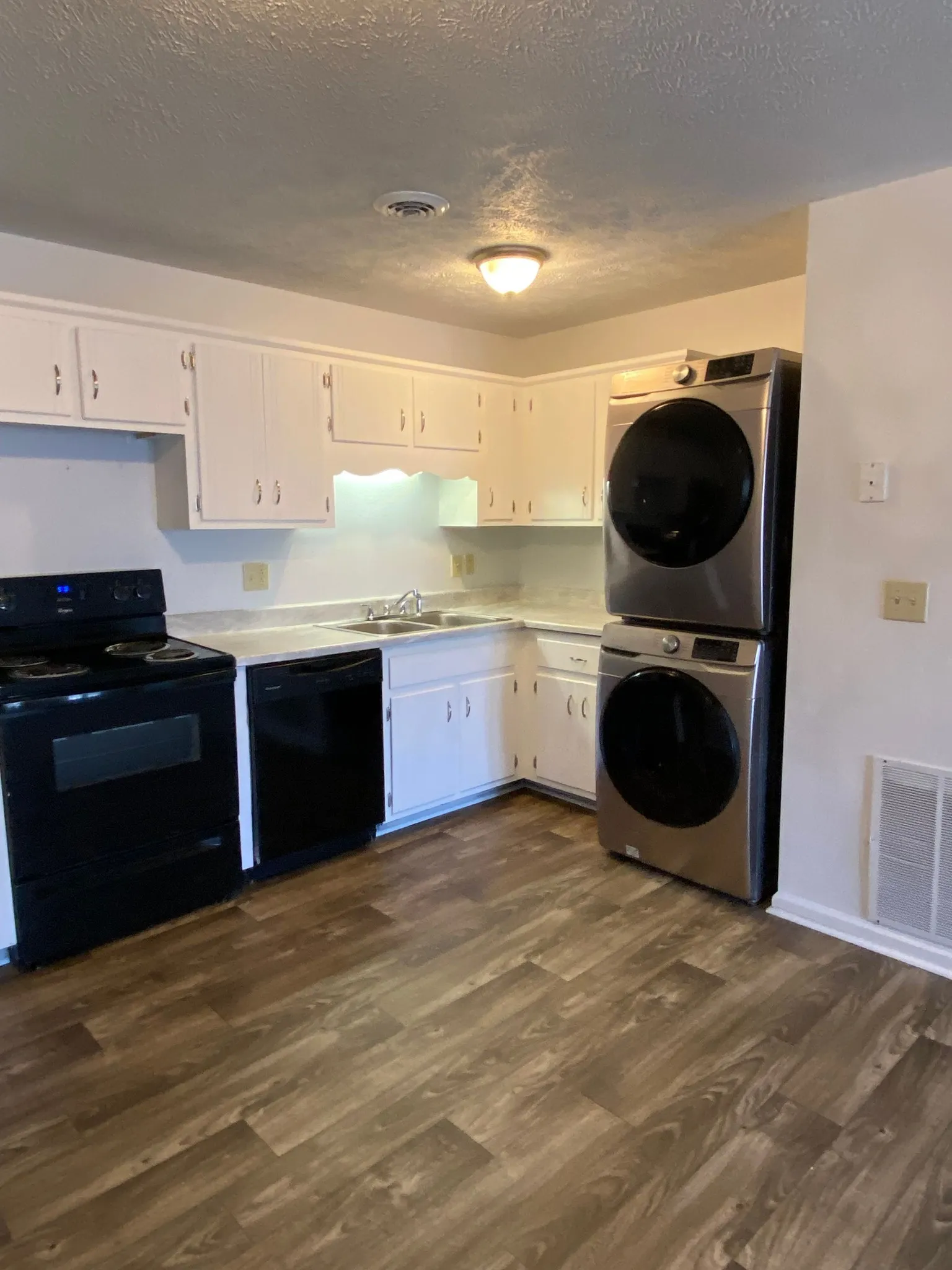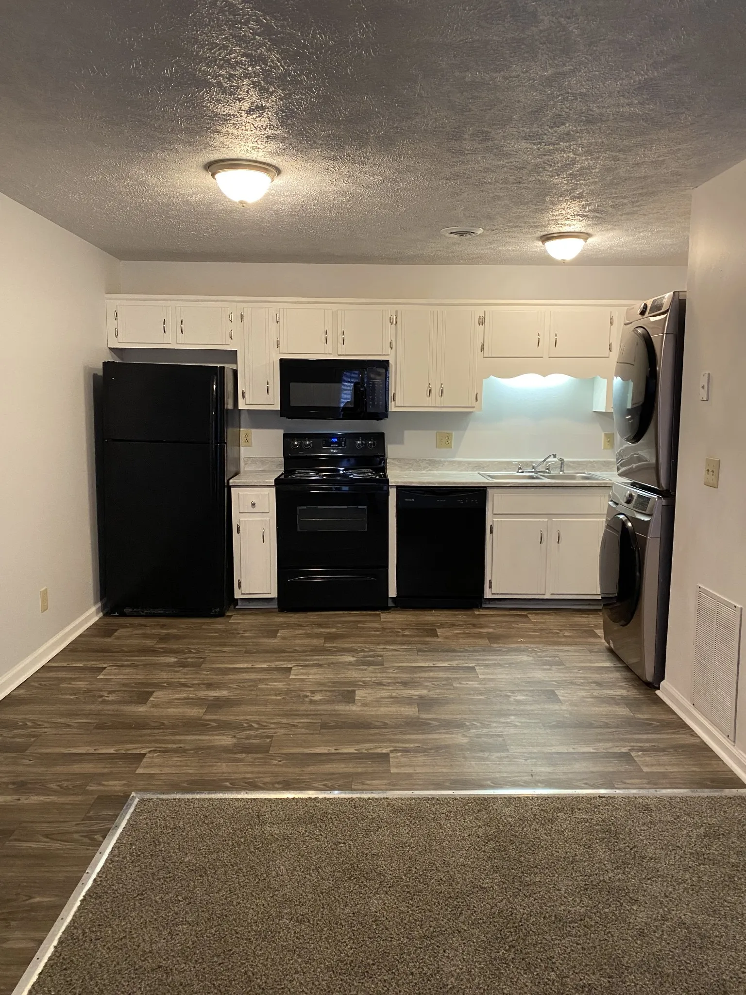 This cozy 2-bedroom apartment is located at the end of a cul-de-sac. New flooring throughout. Fresh paint. Updated cabinets. Trash and lawn care included. Pets welcome. Standard breed restrictions apply. Pet deposit $400.