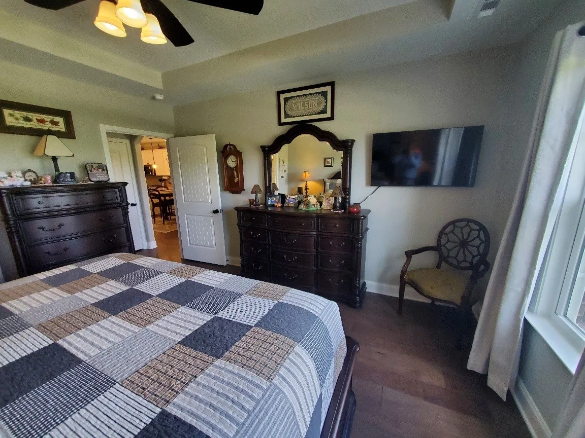 2 BR/2 BA with large enough bonus room for 3rd bedroom – Open floorplan with huge kitchen and pantry! Large eat on bar, Covered front porch, fenced in courtyard, 2 car garage. Hardwood flooring throughout main living areas including stairs Upgraded cabinets, granite countertops, tile backsplash, and upgraded electric stove in kitchen. Owner suite has trey ceiling. Amenities: pool, splash pad, fitness center, & more! Over $11,000.00 0f closet upgrades and shelving!