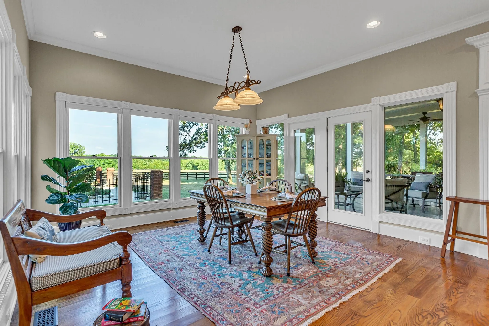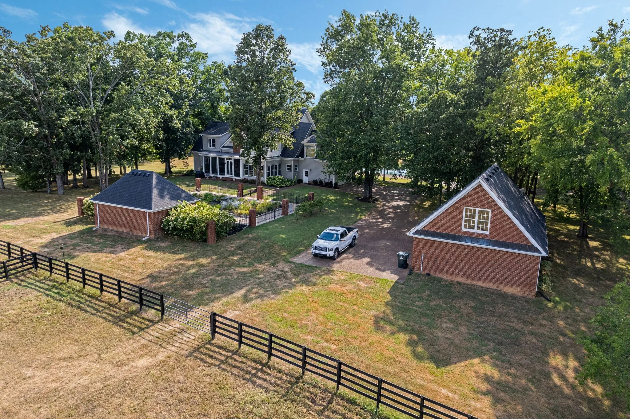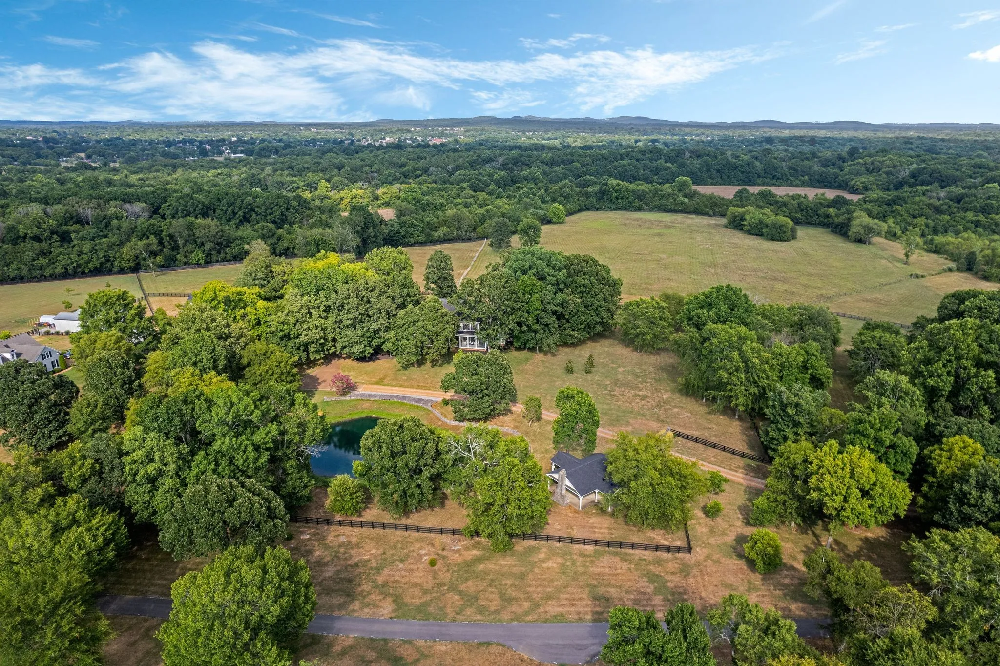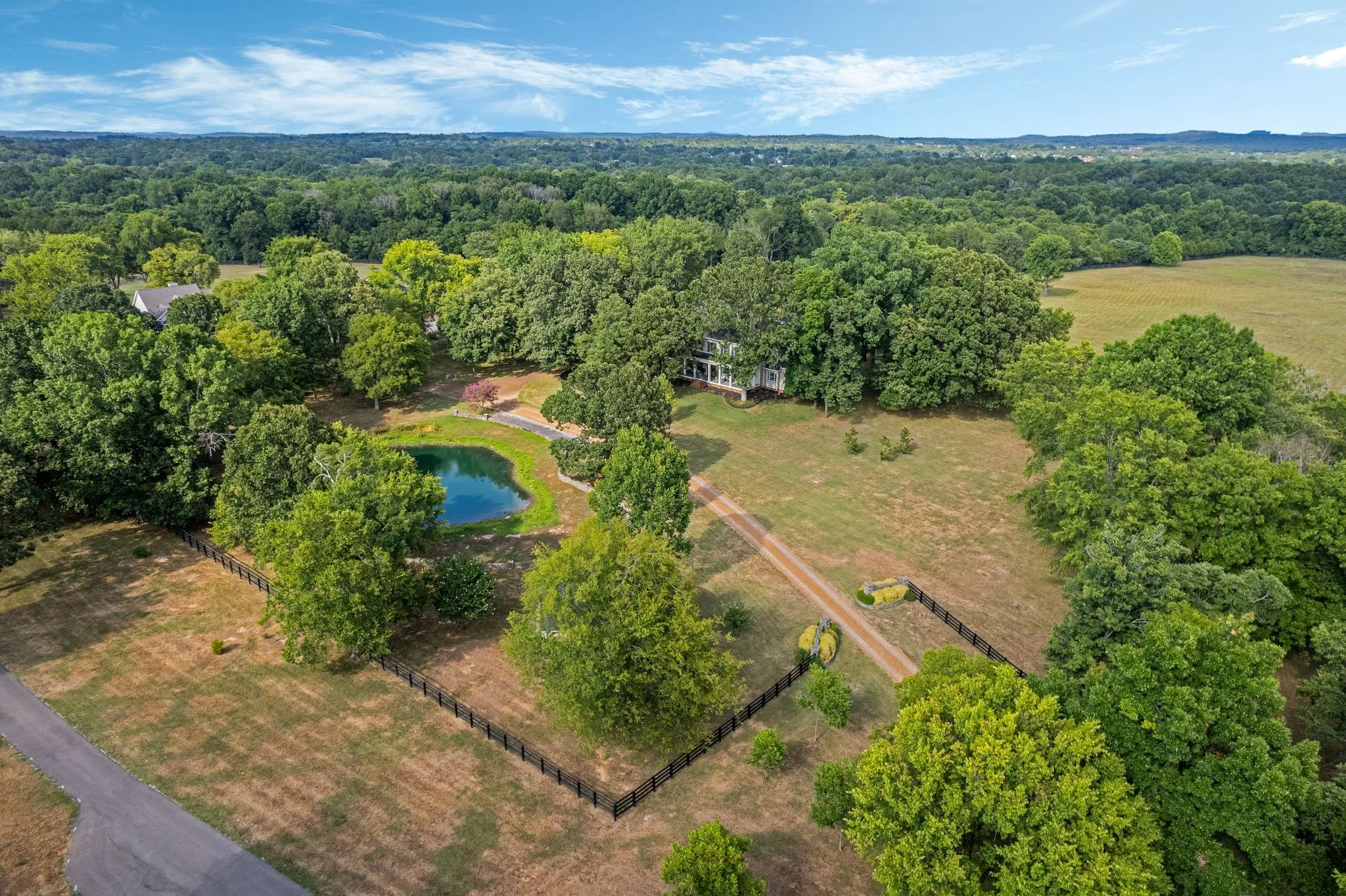 Beautiful home on park-like setting. Watch breath taking sunsets from the front porch as fish jump from the pond Next to pond is a pavilion with fpl & has elect. Enter the home through mahogany double door welcomed by the warmth of red oak floors throughout main living. Dining & office/living rm leads into den and lg kit and sunroom. Primary with bath & 2 lg walk-in closets. Additional bdrms upstairs with hobby rm,bonus & an additional room. (see floorplan) Bdrms 3 & 4 have J n J bath. Bdrm 2 has balcony. Screened porch to view gorgeous sunrises. 20×40 perennial garden where pool used to be w/poolhouse that is plumbed, has elect & is waiting to be completed. Barn has 3 stalls w/2 additional buildout potential. Tack room/well room & hayloft. Detached 3 car gar has full upstairs used for storage. Available are 2 8 ac tracts w/perk sites backs up to the CORP Property. Address 4286 behind listed prop and 4284 to the right. Corp prop has appr 25 miles of riding trails to enjoy