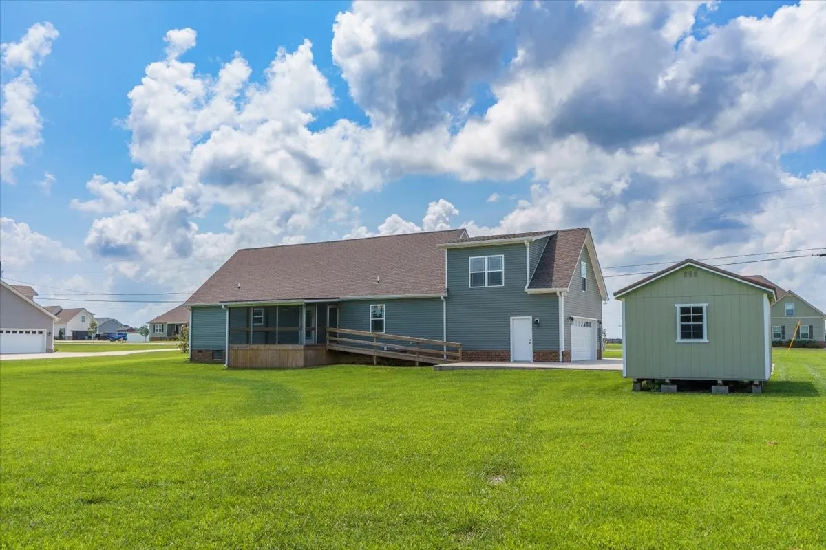 This beautiful 3 bed 2 bath home with a bonus room and attached two car garage has some added features!! These features include custom blinds in all windows, custom shelving in the garage, mini barn at the end of the driveway, and the screened in back patio with wheelchair accessibility. All of these upgrades convey with the property. This home also sits on one of the rare lots that does not have another house in its backyard. This home backs up to a thick tree line with beautiful farmland on the other side!! It is rare that a house on this side becomes available!! You can sit inside your screened back porch year round and enjoy the peace of quite!!