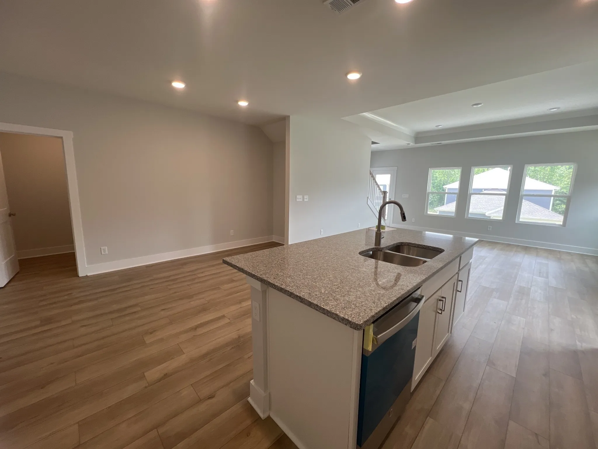 Enter into a welcoming foyer, that opens to your own home office or study. As you continue, you will notice that the Kitchen is the true heart of this home and offers a large center island, built in appliances, and a gas stovetop. The kitchen flows seamlessly into the dining area and the oversized family room. Just off the family room you can walk outside to the the extended covered patio- the perfect spot for hosting summer cookouts with your loved ones. The Primary bedroom, with two closets, and a walk in shower, can be found downstairs at the rear of the home. Upstairs you will find 3 additional bedrooms and a secondary living space. Enjoy a community pool and amenity center within walking distance – this is a must see home.