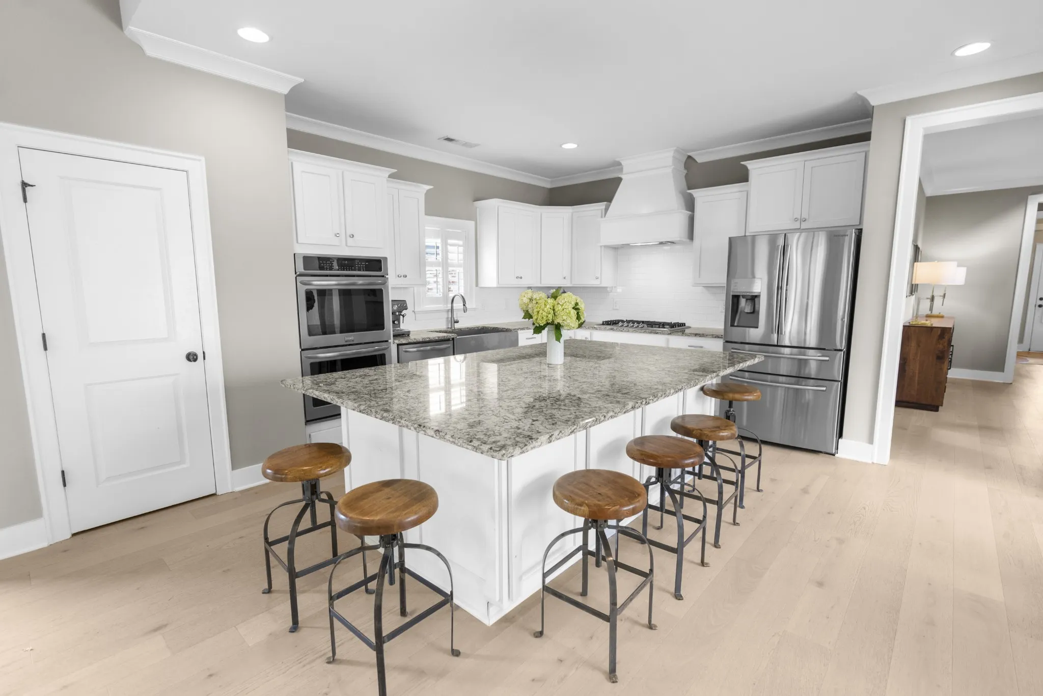 Welcome home to this exquisite property with an inviting open foyer! This floor plan generously allows for a large dining table surrounded by a wall of windows. A dreamy kitchen includes top of the line double oven, gas range, and an oversized island for everyone to gather around. Two bedrooms occupy the first floor and 4 large bedrooms are upstairs which gives maximum privacy from one floor to another. This well thought out and beautifully designed home allows owners to enjoy large get togethers or cozy movie nights.This home offers ample storage and natural sunlight throughout. Brand new flooring on main level, new white oak stairs and brand new carpet throughout second level have been redone, along with repainting the entire exterior, to give this a home a beautiful timeless look. Nestled in a family friendly neighborhood with the privacy offered through mature trees and landscaping. Close to downtown Franklin and cool springs, definitely a must see!