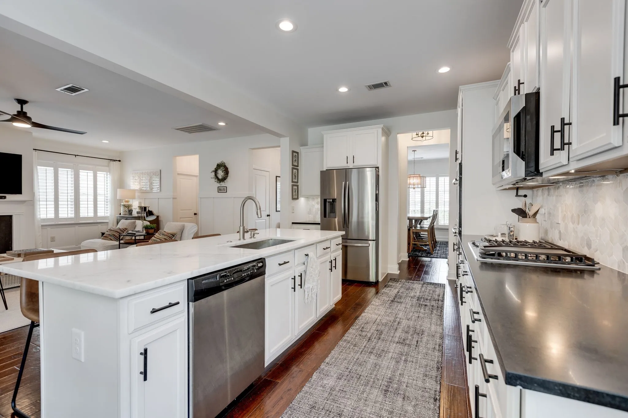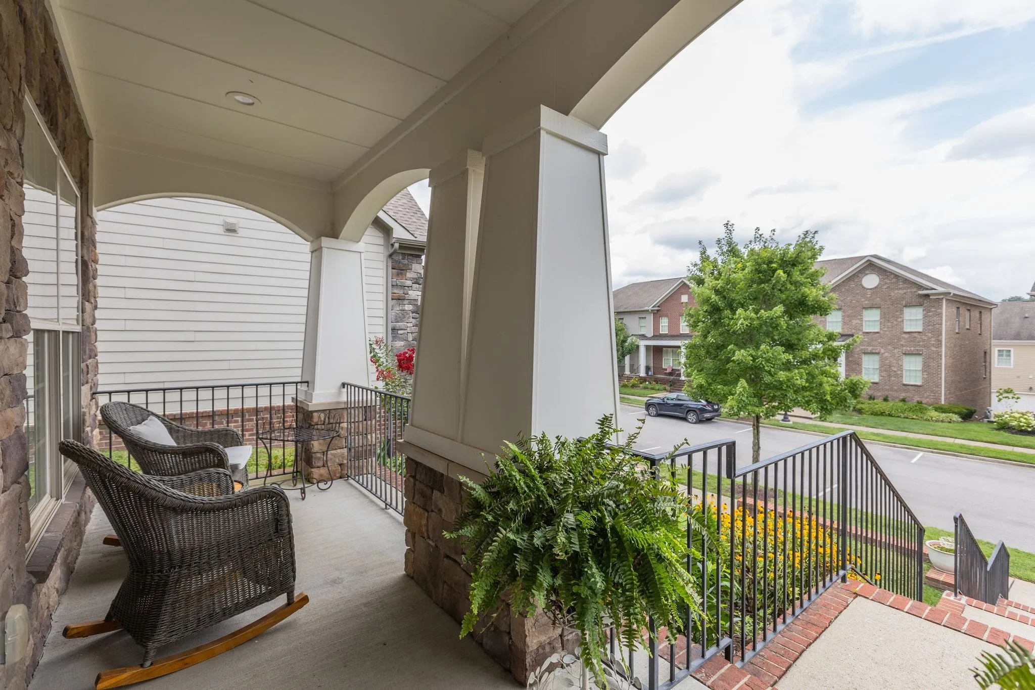 Rare opportunity! This is a must-see single family home in the walkable community of Gateway Village. Tree-lined streets, sidewalks, restaurants, and more. One mile from the interstate, one mile from Cool Springs and just minutes to Downtown Franklin & Brentwood. Open concept, large kitchen with walk-in and butlers pantry, marble and granite counter tops, Recently renovated primary bathroom. New lighting and other updates all within 2.5 years. Backs to green space combining privacy and beauty with location/ walkability! Rear garage with no steps into the home.