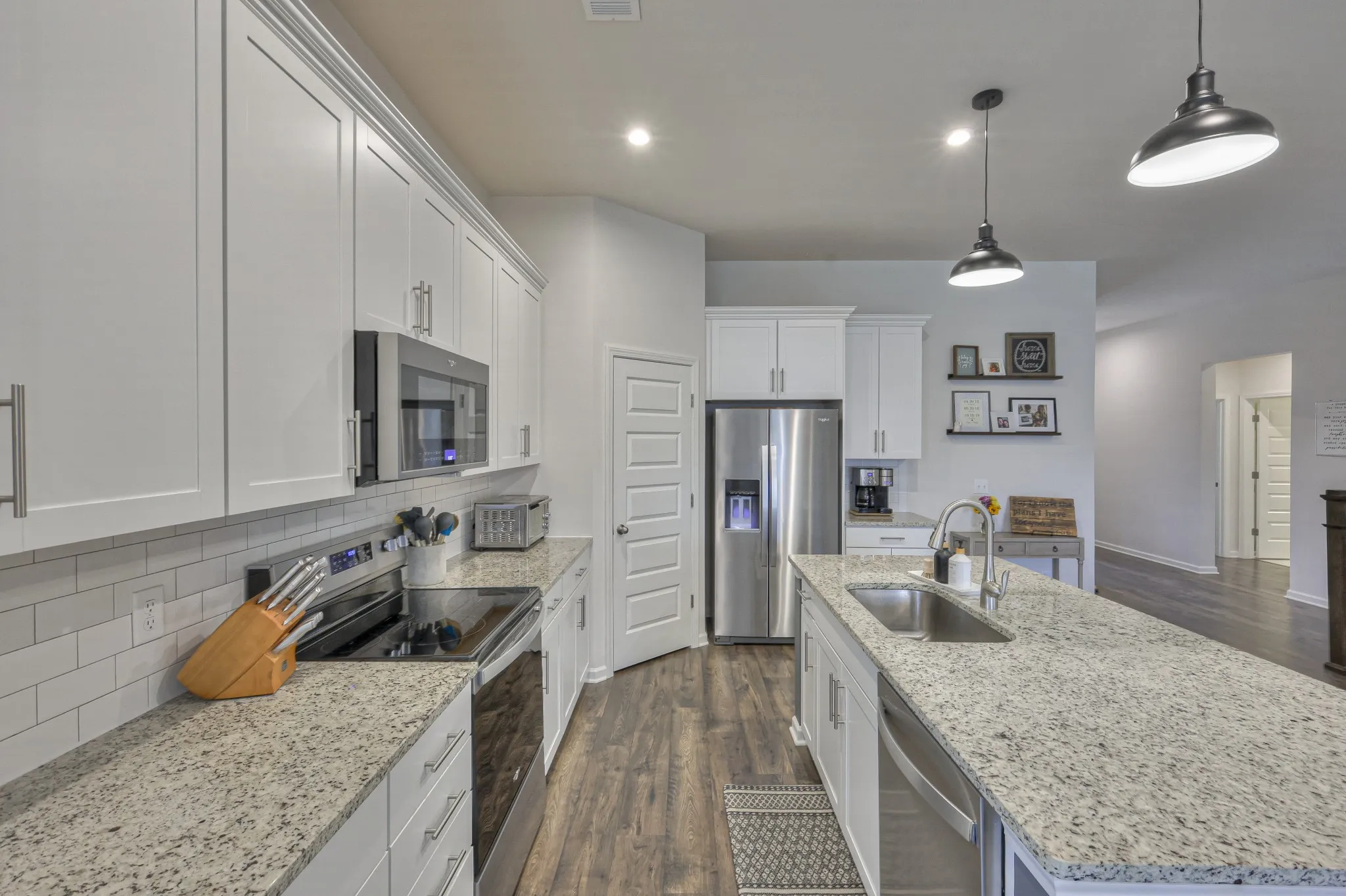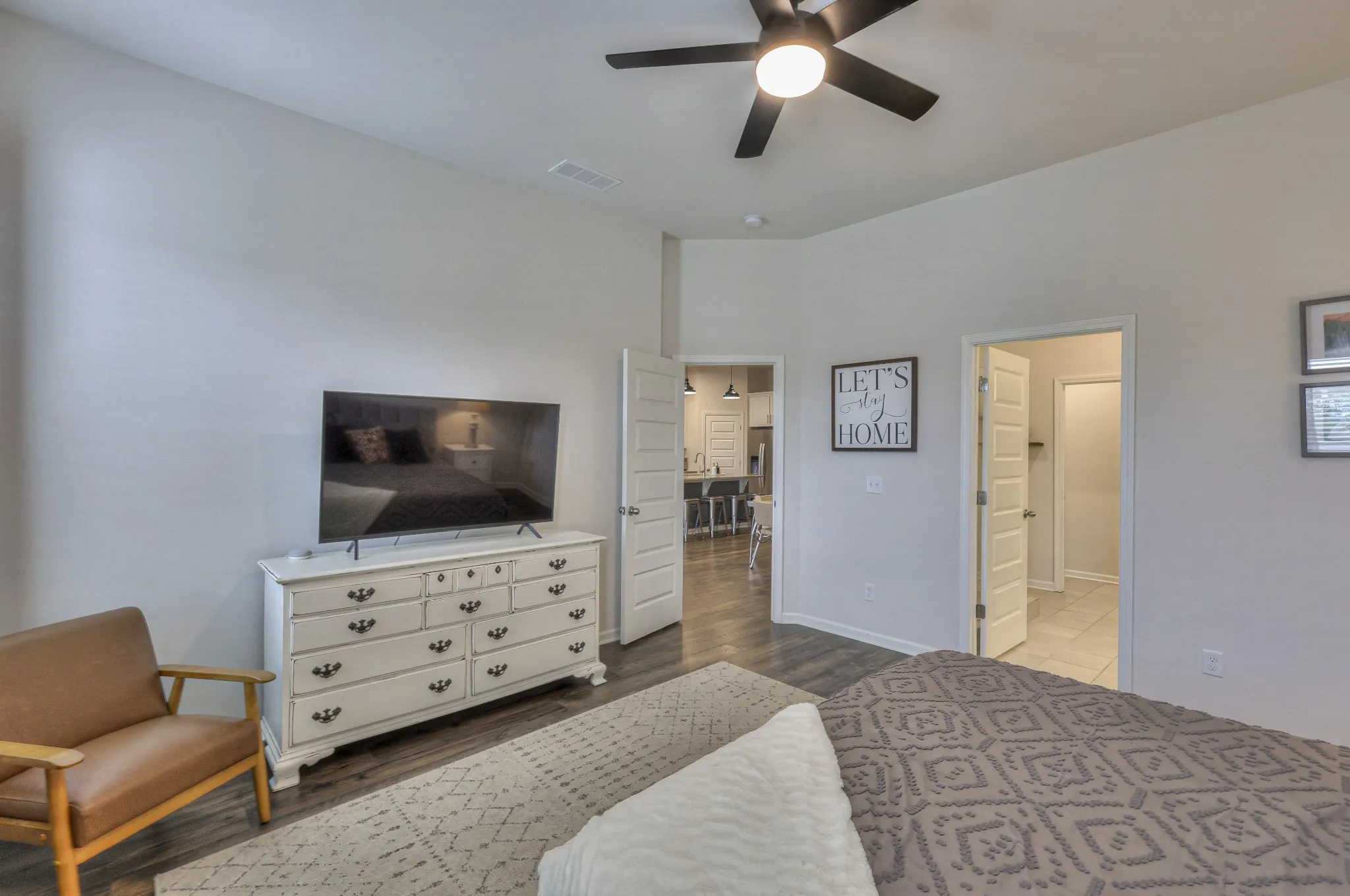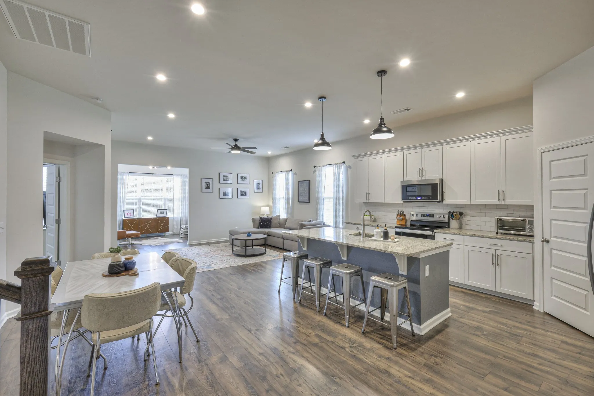 Beautiful home in Mount Juliet with 3 bedrooms and 3 bathrooms. The stunning open living space is flooded with natural light and seamlessly transitions from living and dining to the kitchen. The modern kitchen features white cabinets with a large island with seating. 2 bedrooms on the main level including the primary suite with a full en-suite bathroom including a shower and spacious walk-in closet. Additional upstairs guest quarters – with a bedroom and full bath. The Florida Room offers great views of open space behind you. The community offers residents wonderful amenities including a gym, pool, playground, and recreational area. HOA covers lawn and water irrigation.