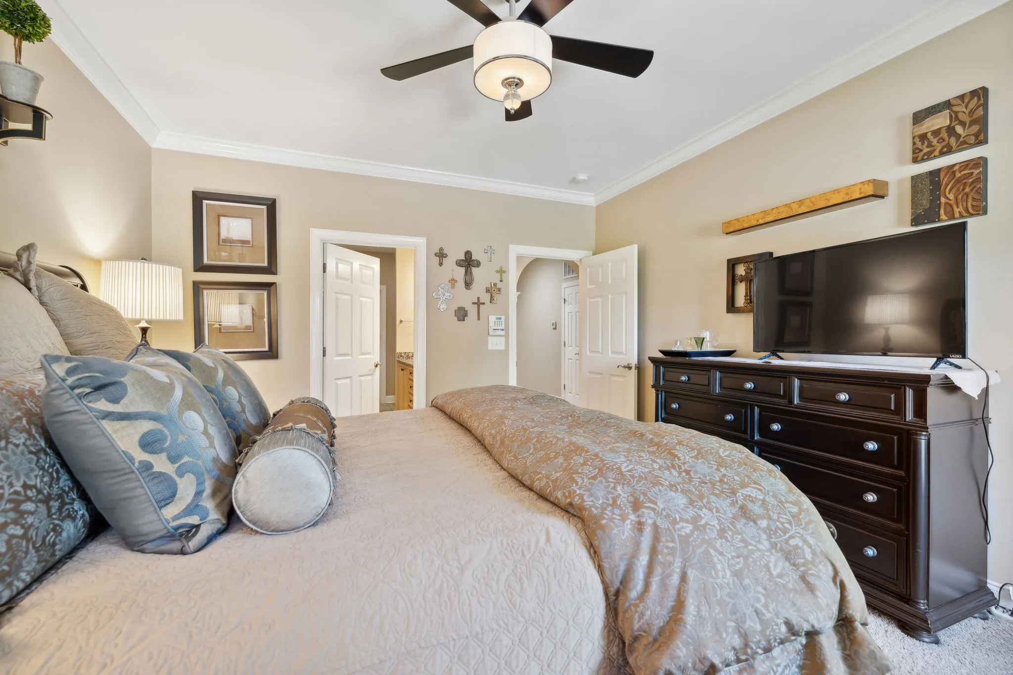 Interior Features Walk-In Closet(s), Primary Bedroom Main Floor, High Ceilings, Pantry, High Speed Internet, Storage, Ceiling Fan(s), Extra Closets, Entry Foyer